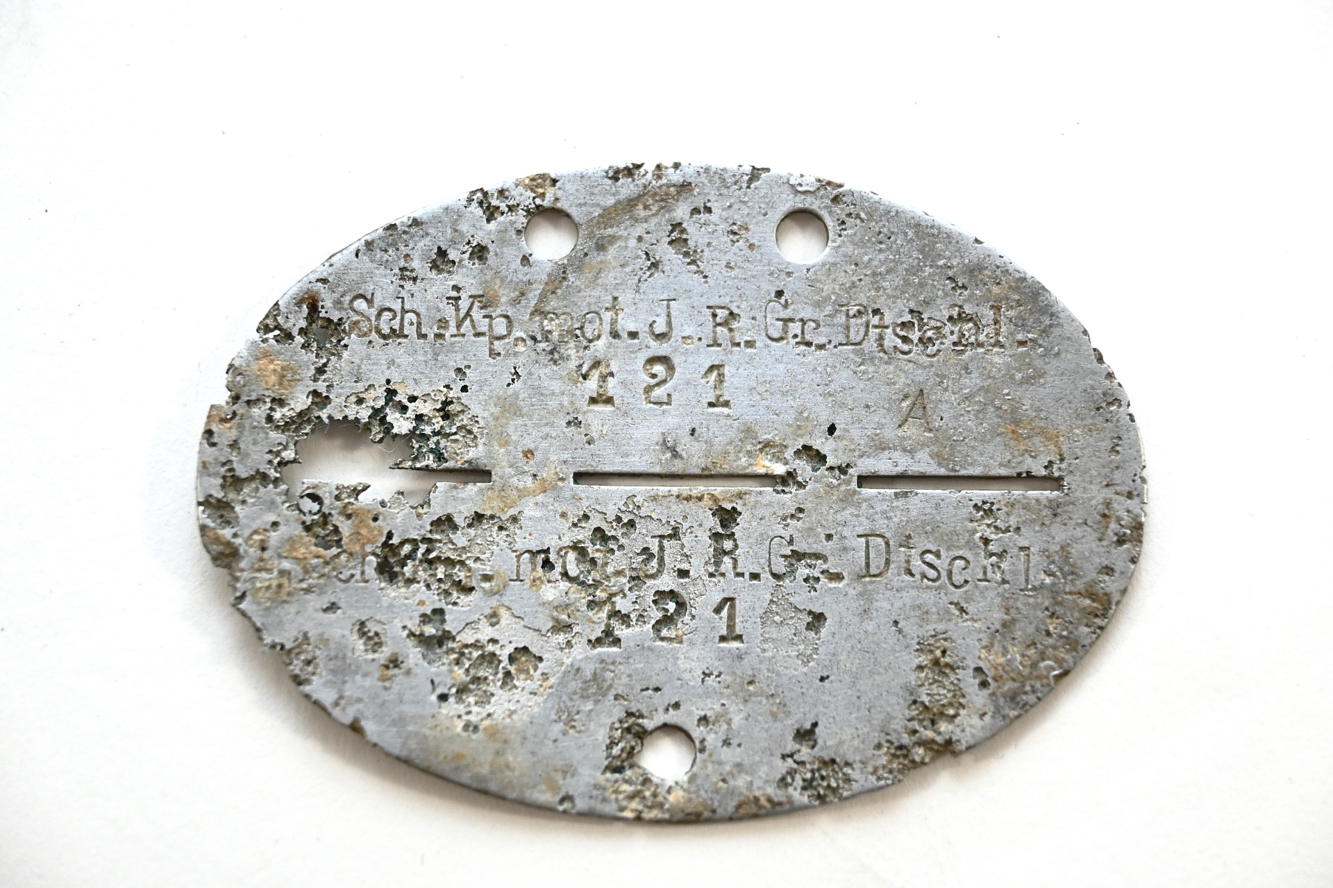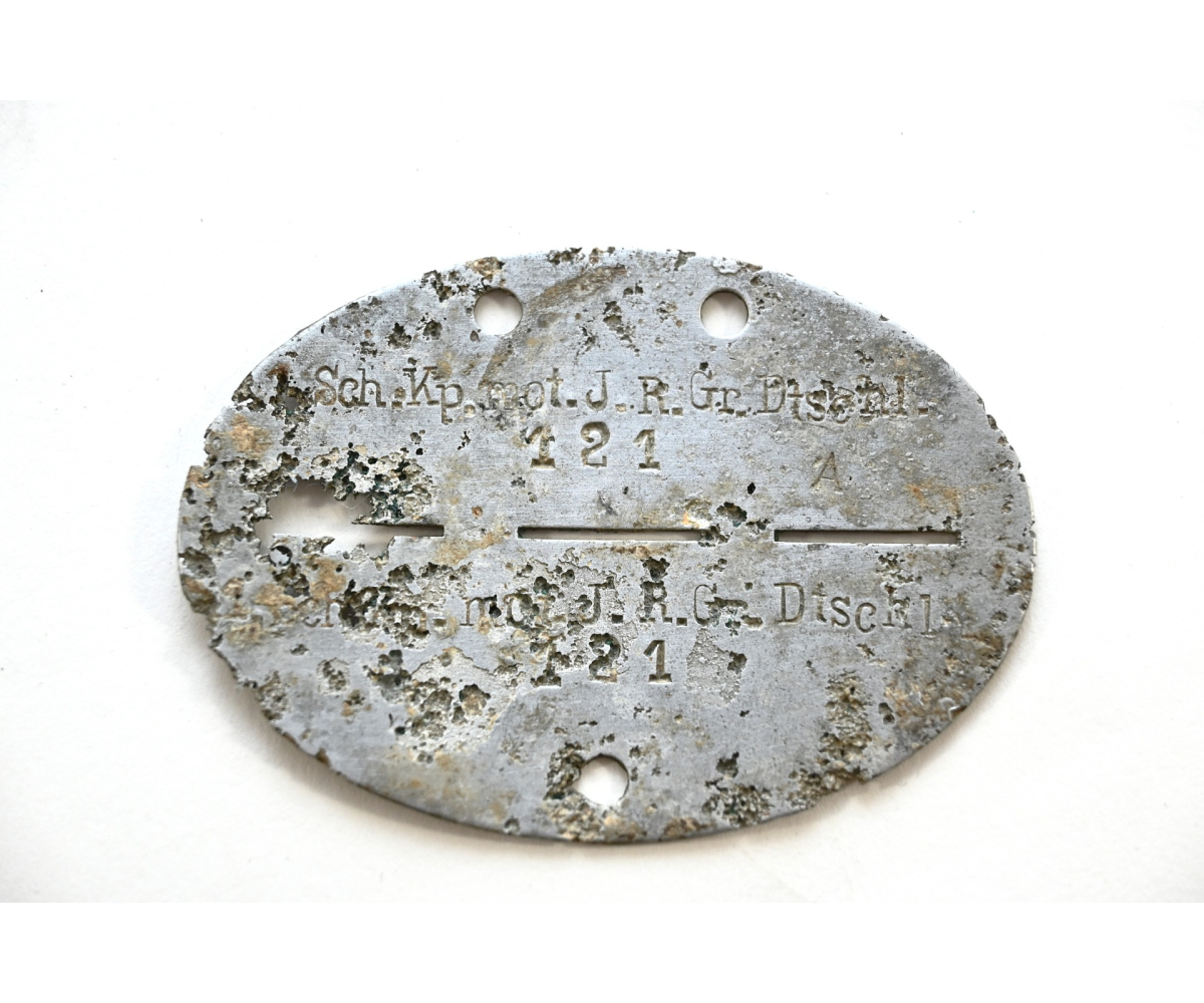 The tag or 'Erkennungsmarke' is a solid ground find. It belonged to a soldier who served in the 1.Schützenkompanie Infanterie Regiment GrossDeutschland. This regiment was formed in late June 1939 from Wach-Bataillon Berlin.