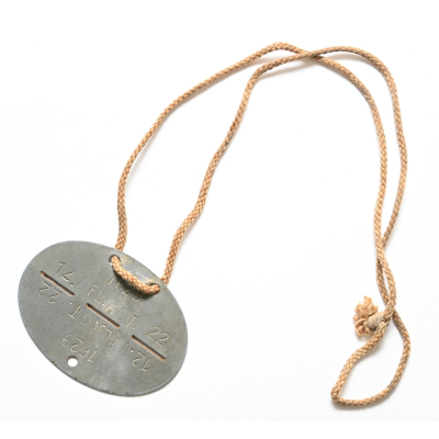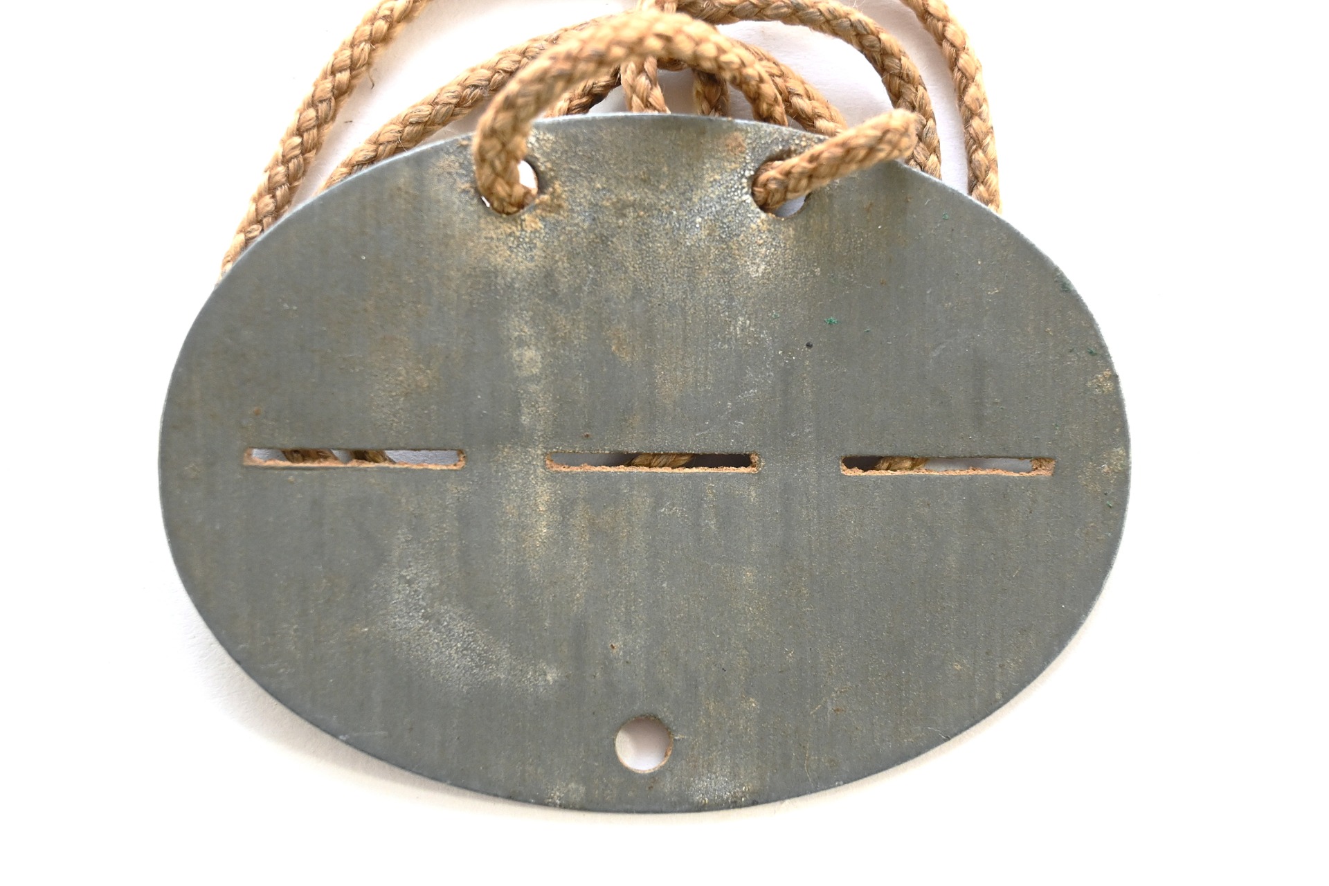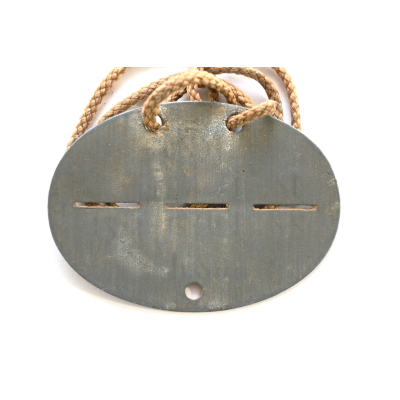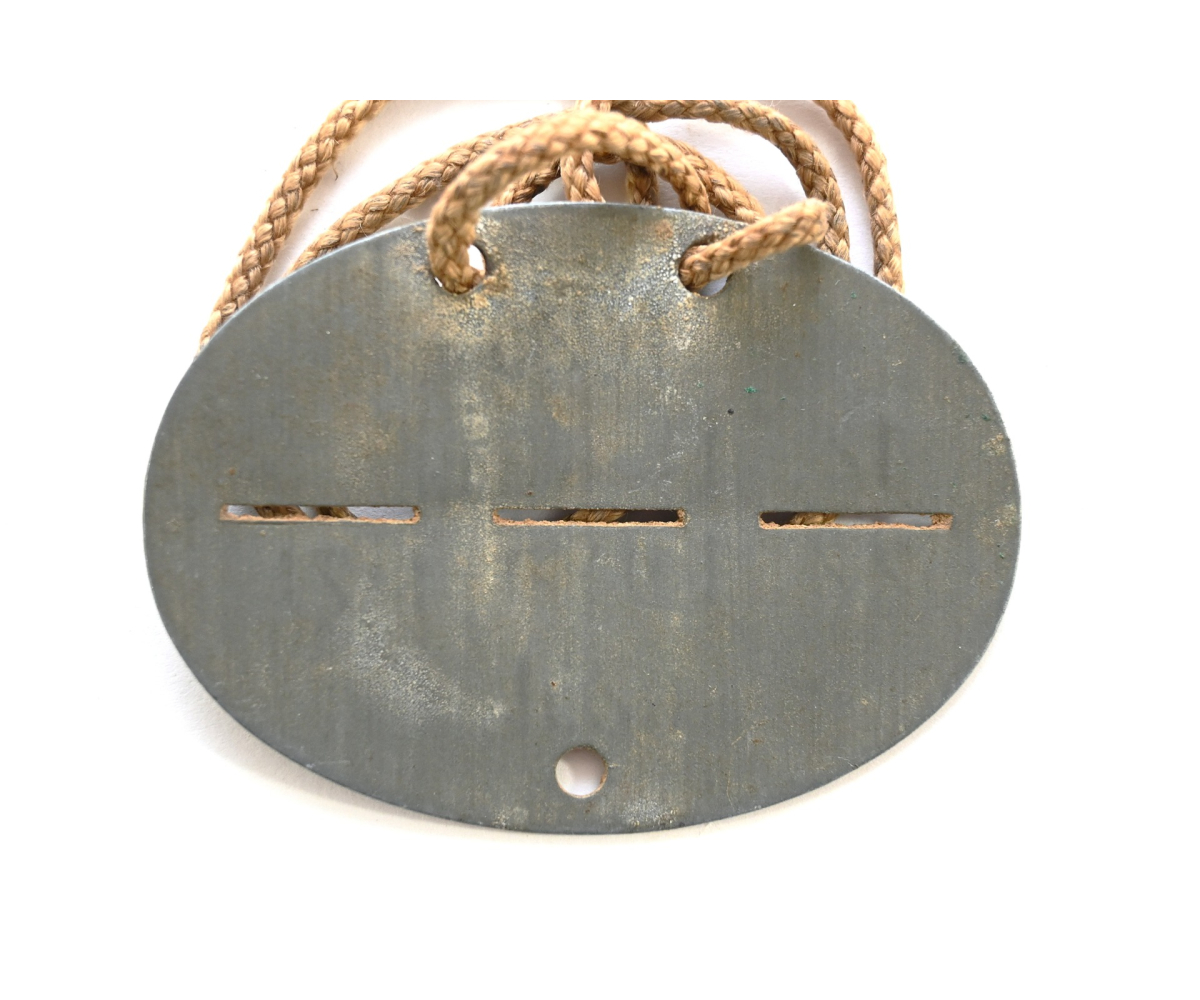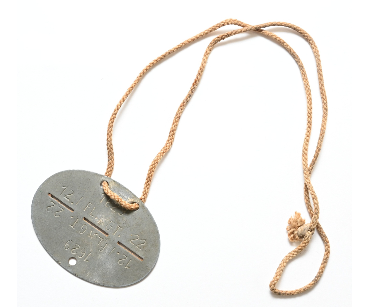 The tag or 'Erkennungsmarke' shows overall normal signs of wear. It belonged to a soldier who served/was drafted in the 12.kompanie Flieger Regiment 22. This regiment was formed in April 1939. In November 1940 it moved to Warschau and in April 1941 to Gent, Belgium. In August 1942 it was renamed into Flieger Regiment 22 and in June 1944 it was renamed into Luftgau-Feld-Regiment Belgien-Nordfrankreich (mot. ) 22. The regiment was disbanned in September 1944 and the remnants where absorbed by the 3. or 5.Fallschirm-Division.