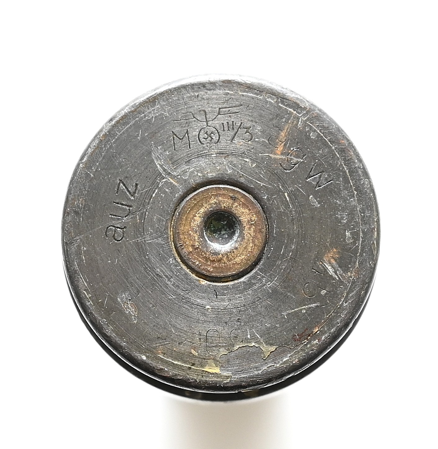 Very nice and hard to find late war steel Kriegsmarine marked 2cm Flak casing in used, but excellent condition.