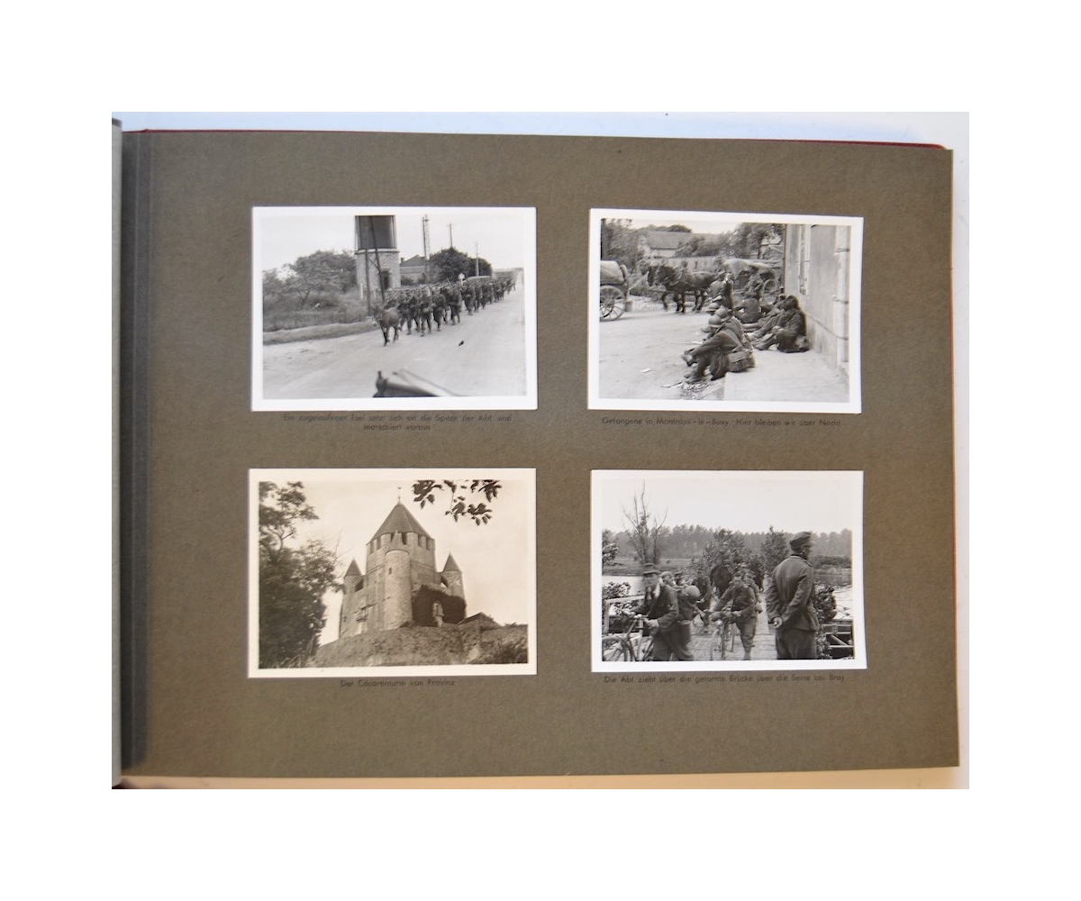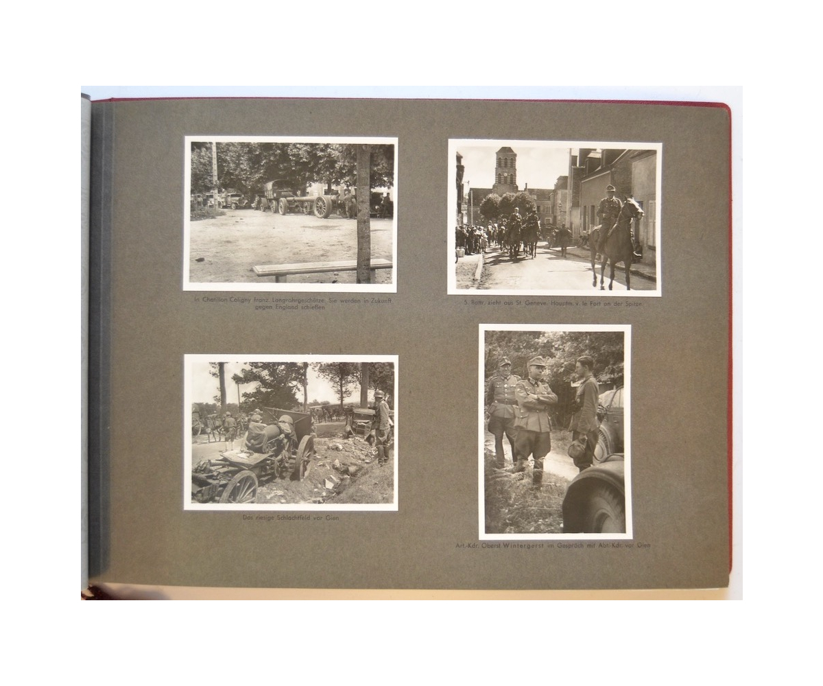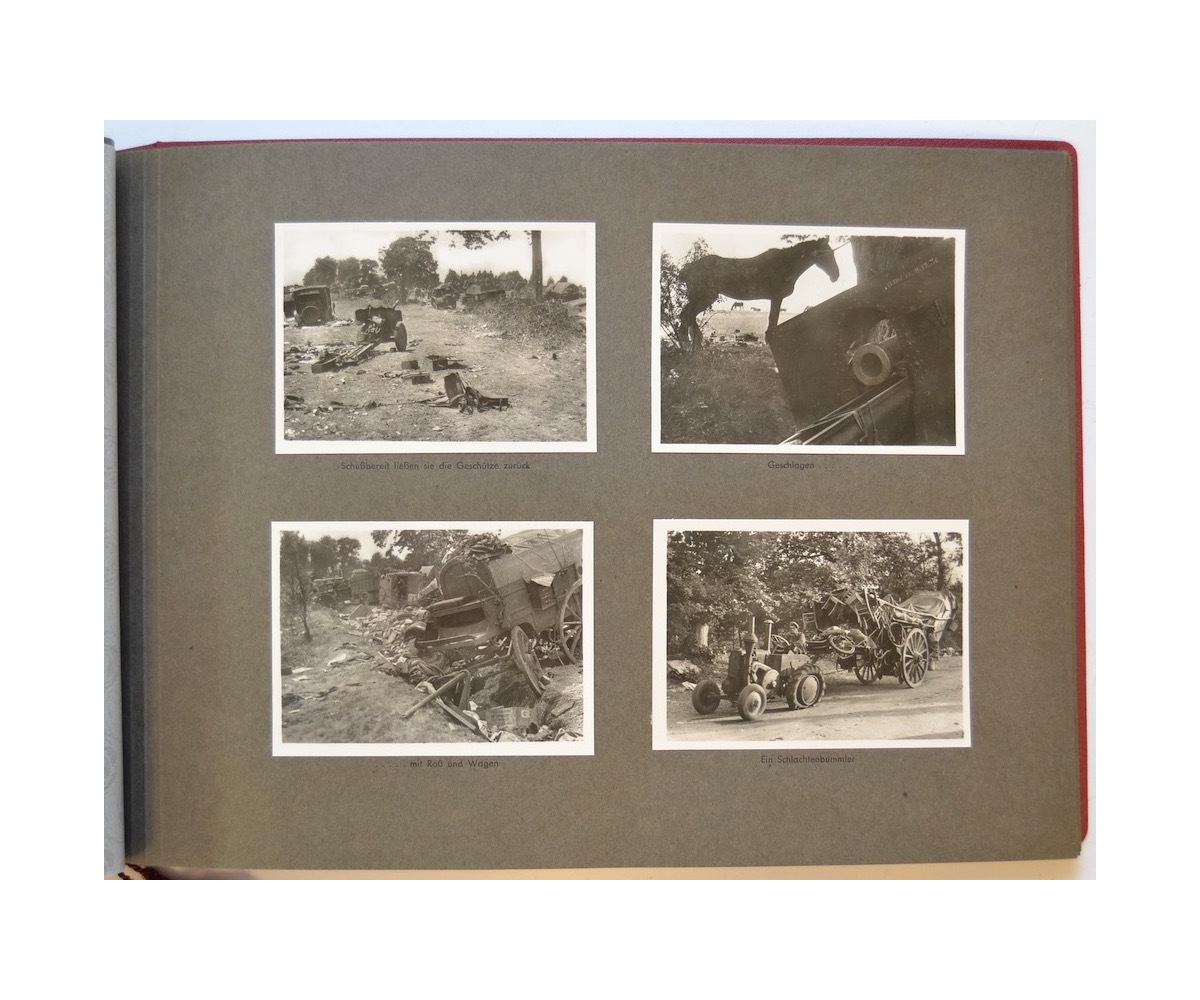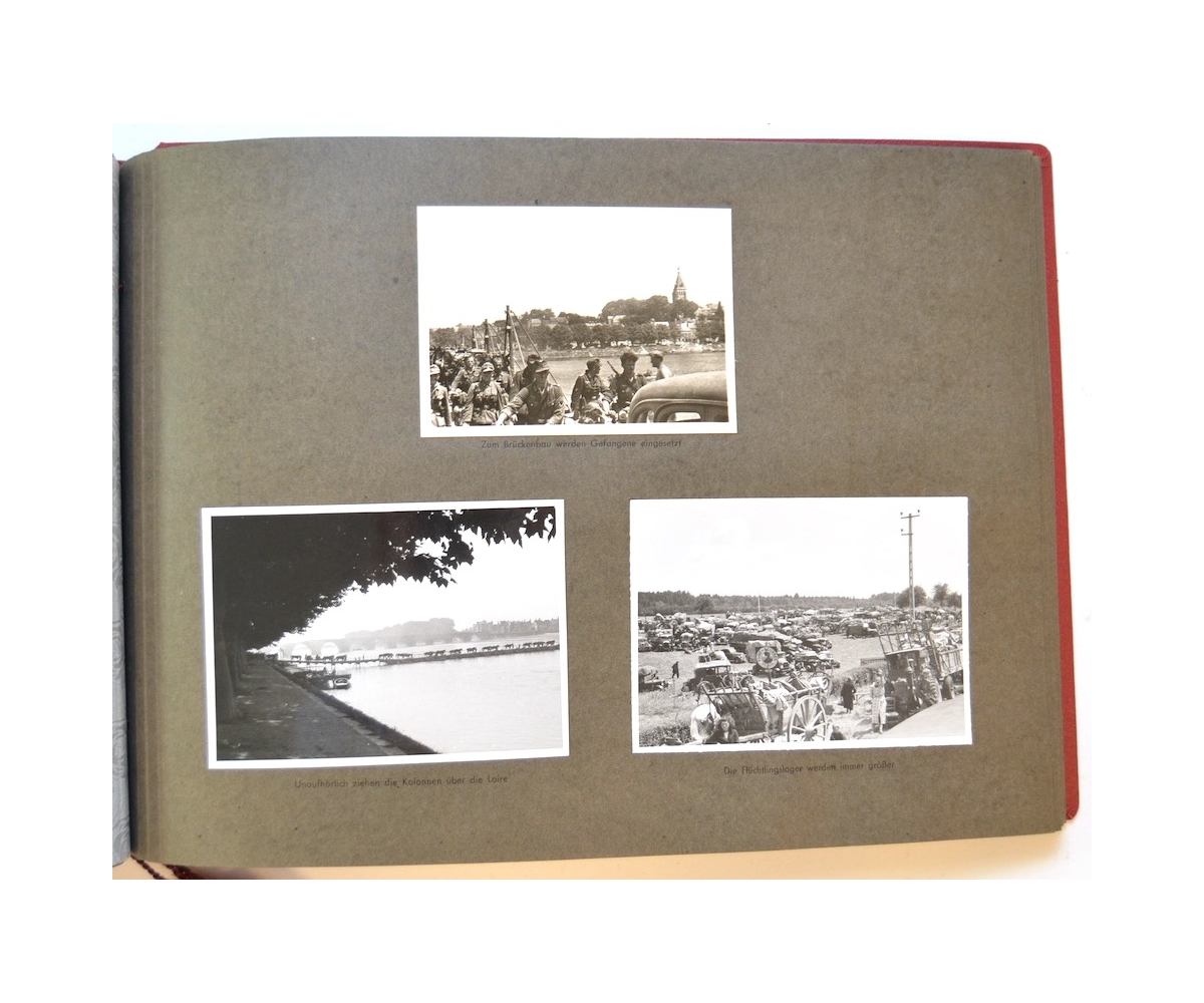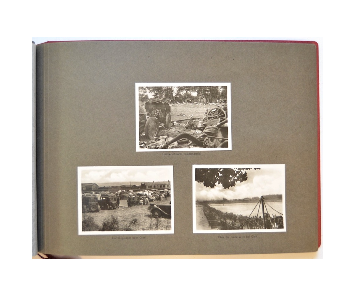 The album shows overall normal signs of wear. It's solid and complete with all pages. The album contains a total of 90 'Bilder' or pictures. Each picture has it's own description. The pictures are taken from the second kompanie of Gebirgs-artillerie Regiment 79 during the 'feldzug' (campaign) against France from May 9, 1940 until (and during) the occupation circa December 15, 1940.