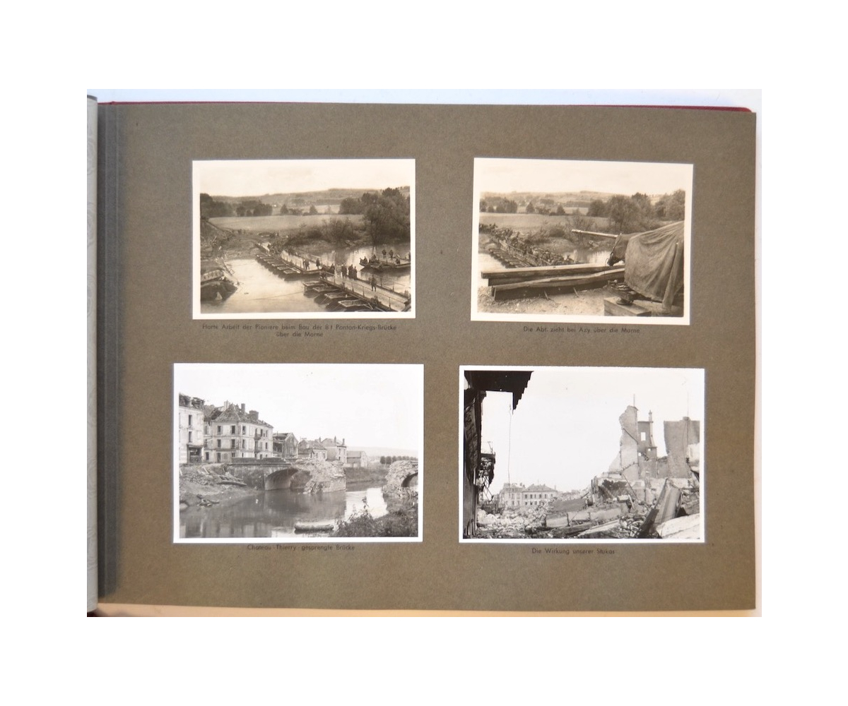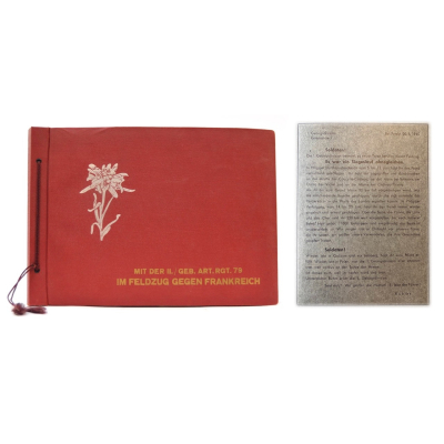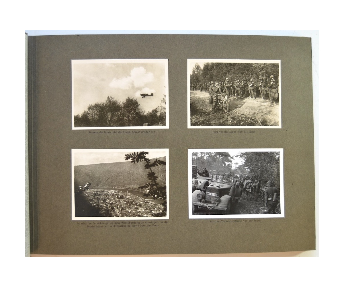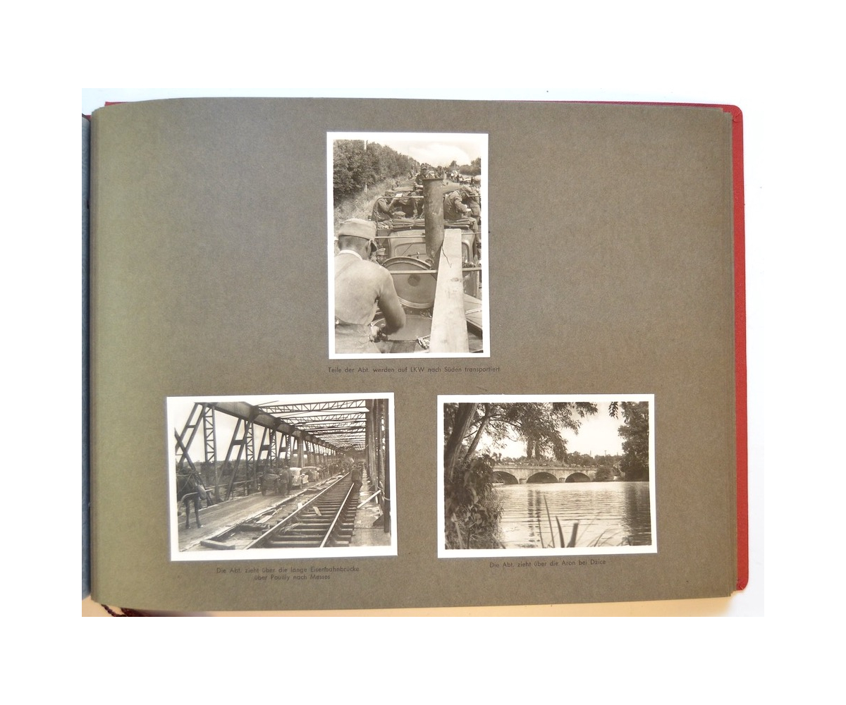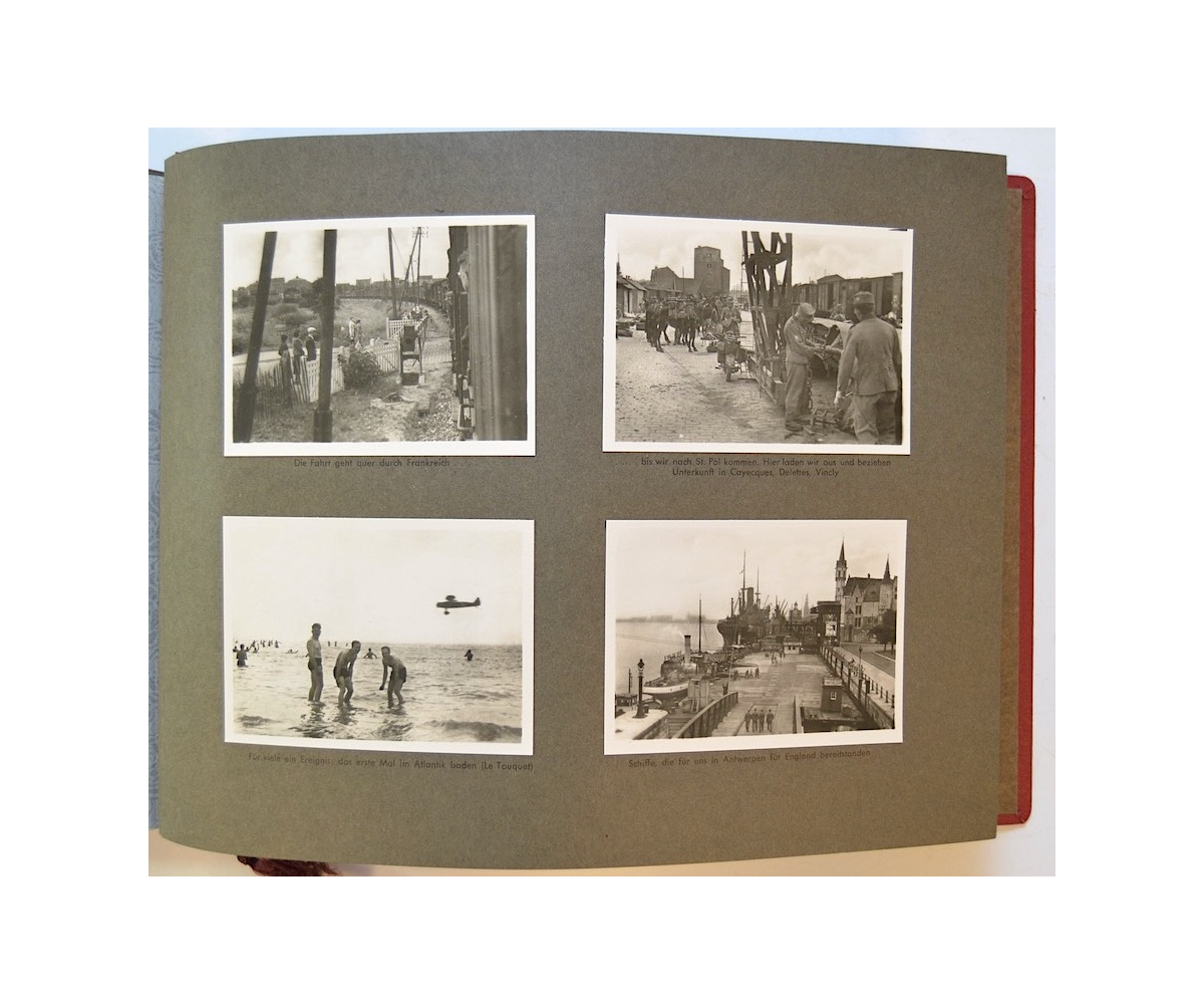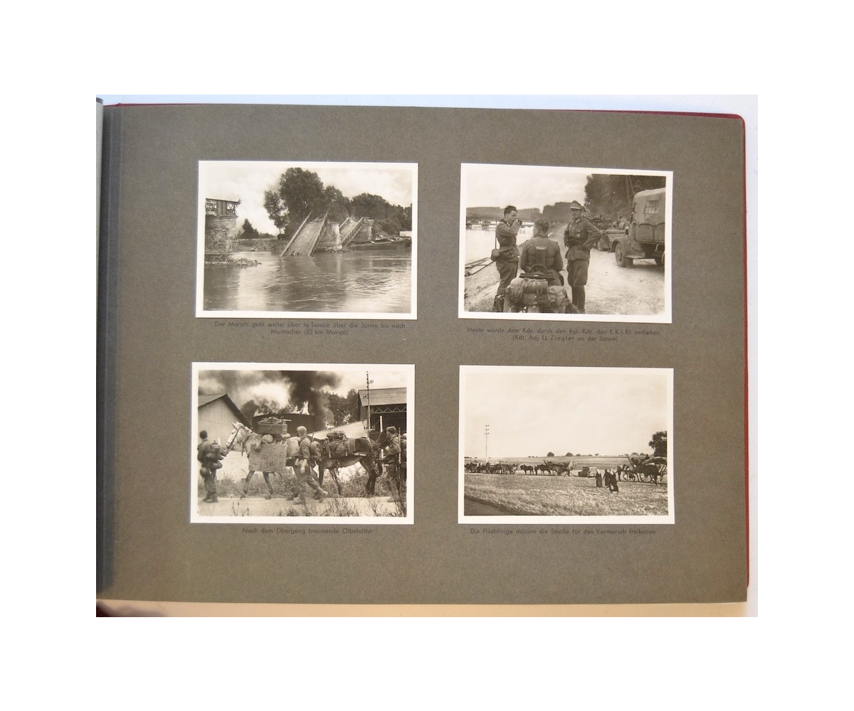 The album shows overall normal signs of wear. It's solid and complete with all pages. The album contains a total of 90 'Bilder' or pictures. Each picture has it's own description. The pictures are taken from the second kompanie of Gebirgs-artillerie Regiment 79 during the 'feldzug' (campaign) against France from May 9, 1940 until (and during) the occupation circa December 15, 1940.