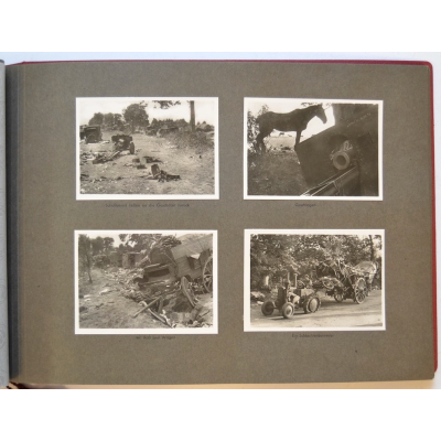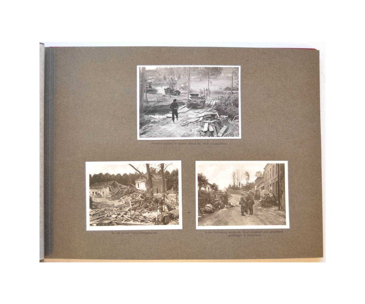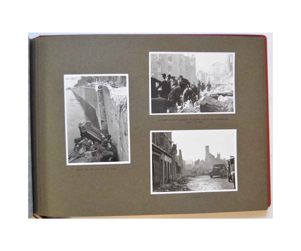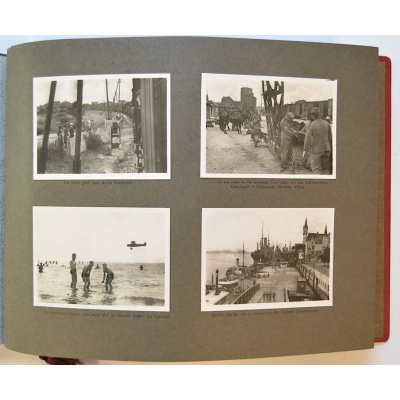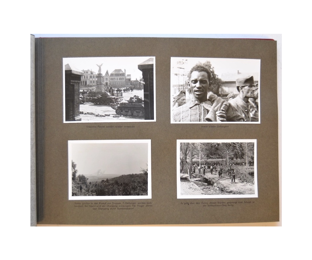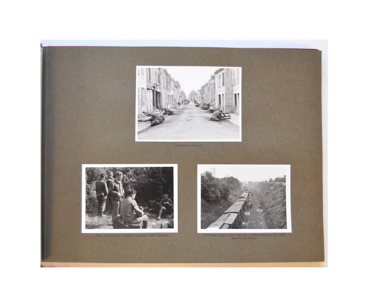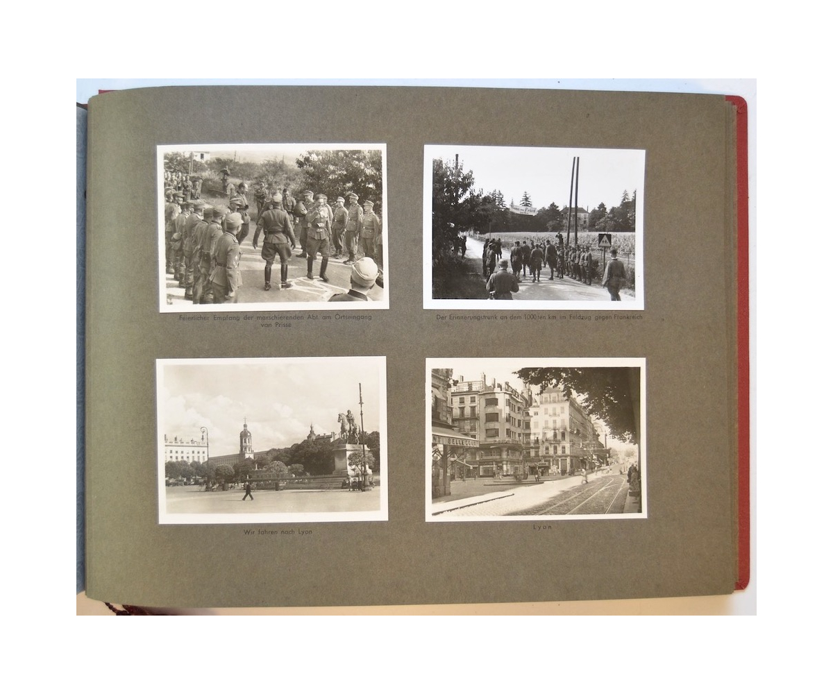 The album shows overall normal signs of wear. It's solid and complete with all pages. The album contains a total of 90 'Bilder' or pictures. Each picture has it's own description. The pictures are taken from the second kompanie of Gebirgs-artillerie Regiment 79 during the 'feldzug' (campaign) against France from May 9, 1940 until (and during) the occupation circa December 15, 1940.