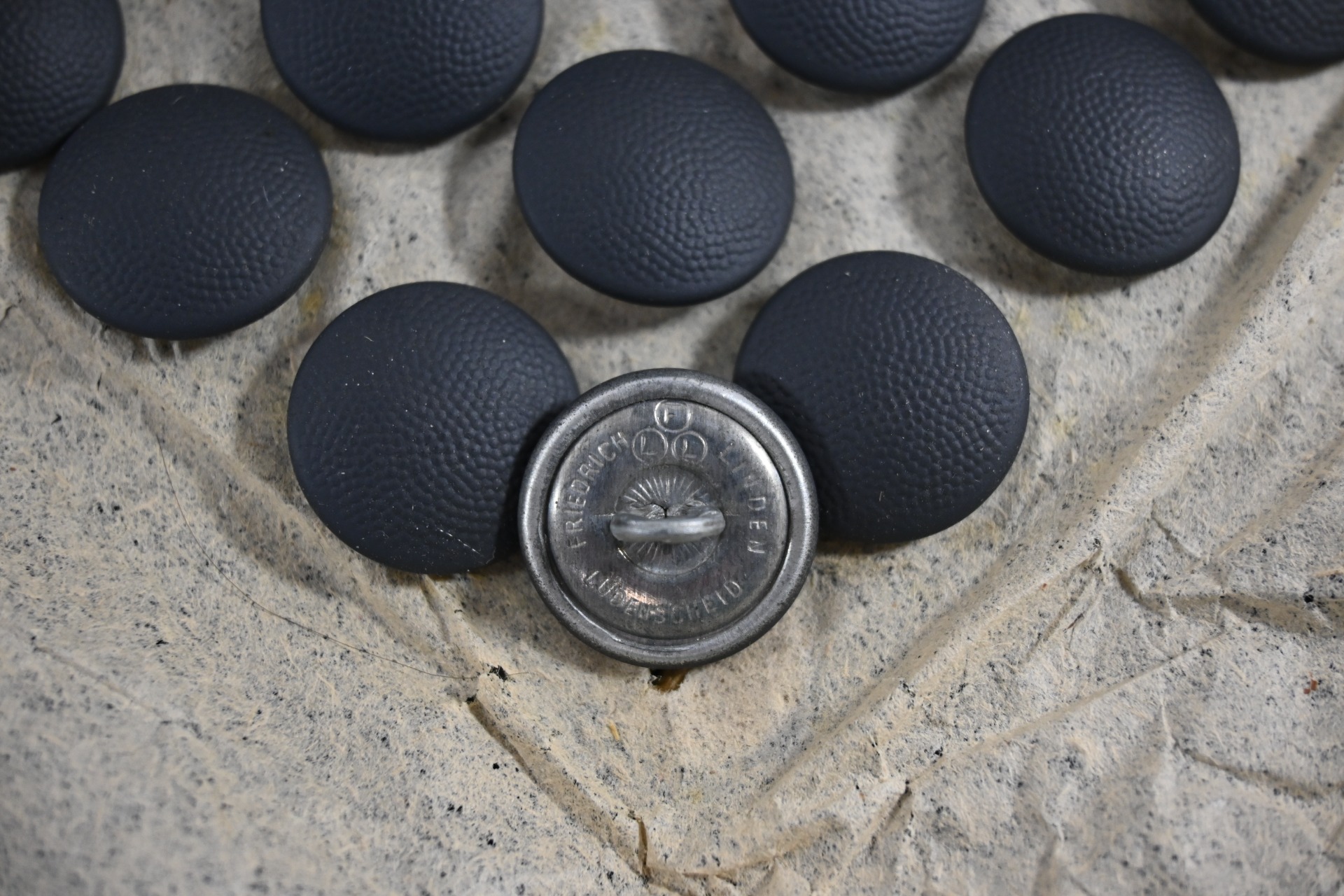 A very nice set of 24 Wehrmacht Dark Grey (21mm) buttons on its original cardbord sheet.