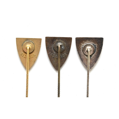 All 3 pins show overall normal signs of wear. The enamel is intact. All are marked on the back.