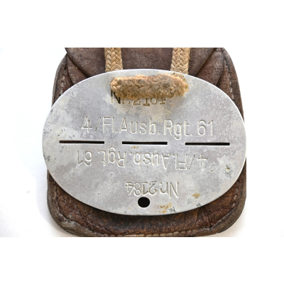 The tag or 'Erkennungsmarke' shows overall signs of wear. It belonged to a soldier that served in 4.Kompanie Flieger Ausbildungs Regiment 61. This regiment was formed in April 1939 in Oschatz from Flieger Ersatz Abteilung 61. In October 1941 the regiment moved to Blois, France and in 1942 to Senlis, France.