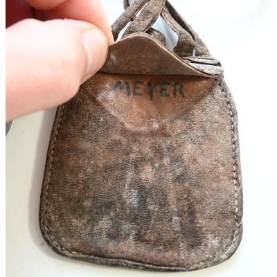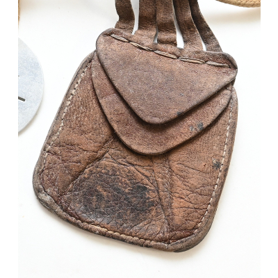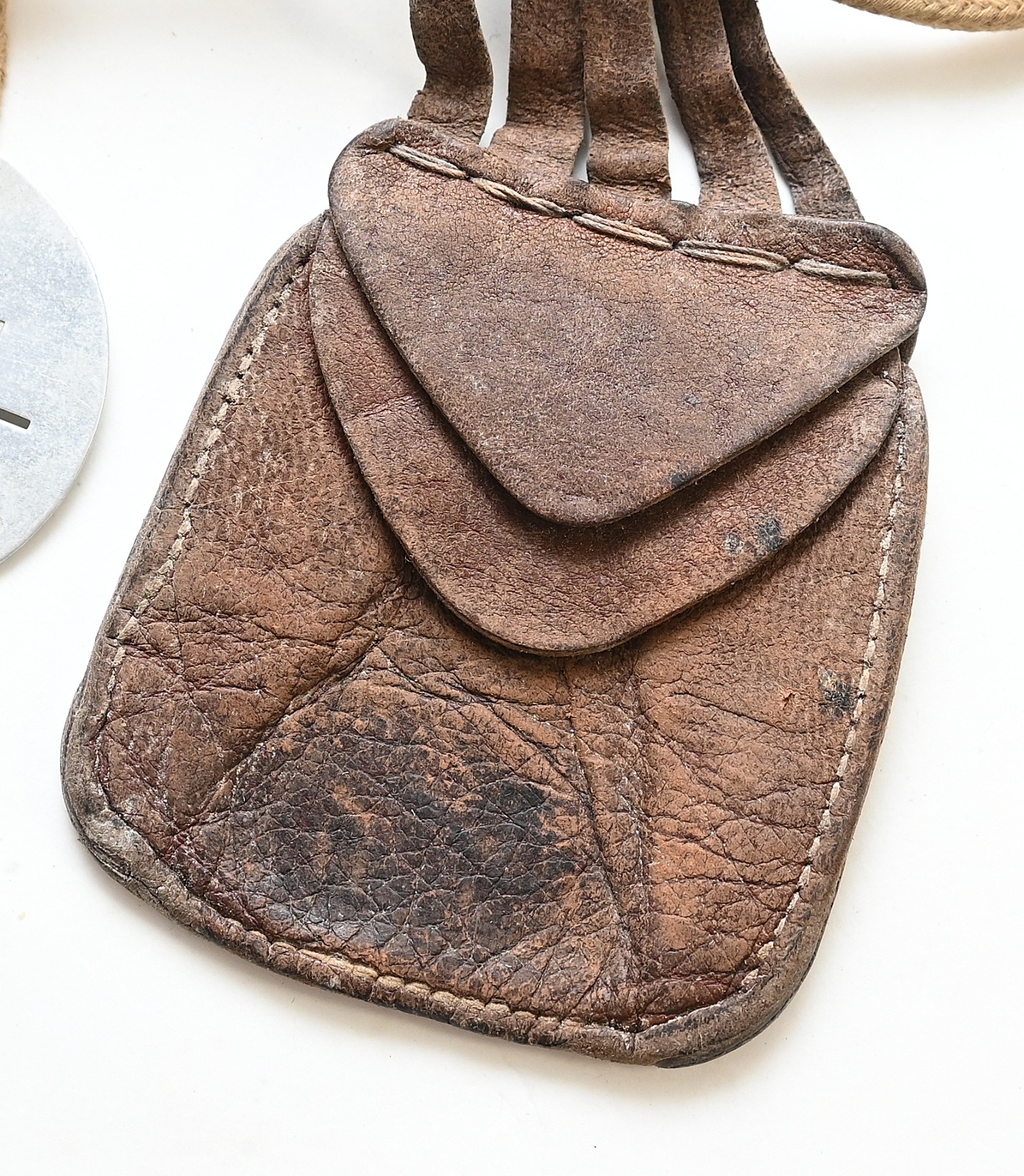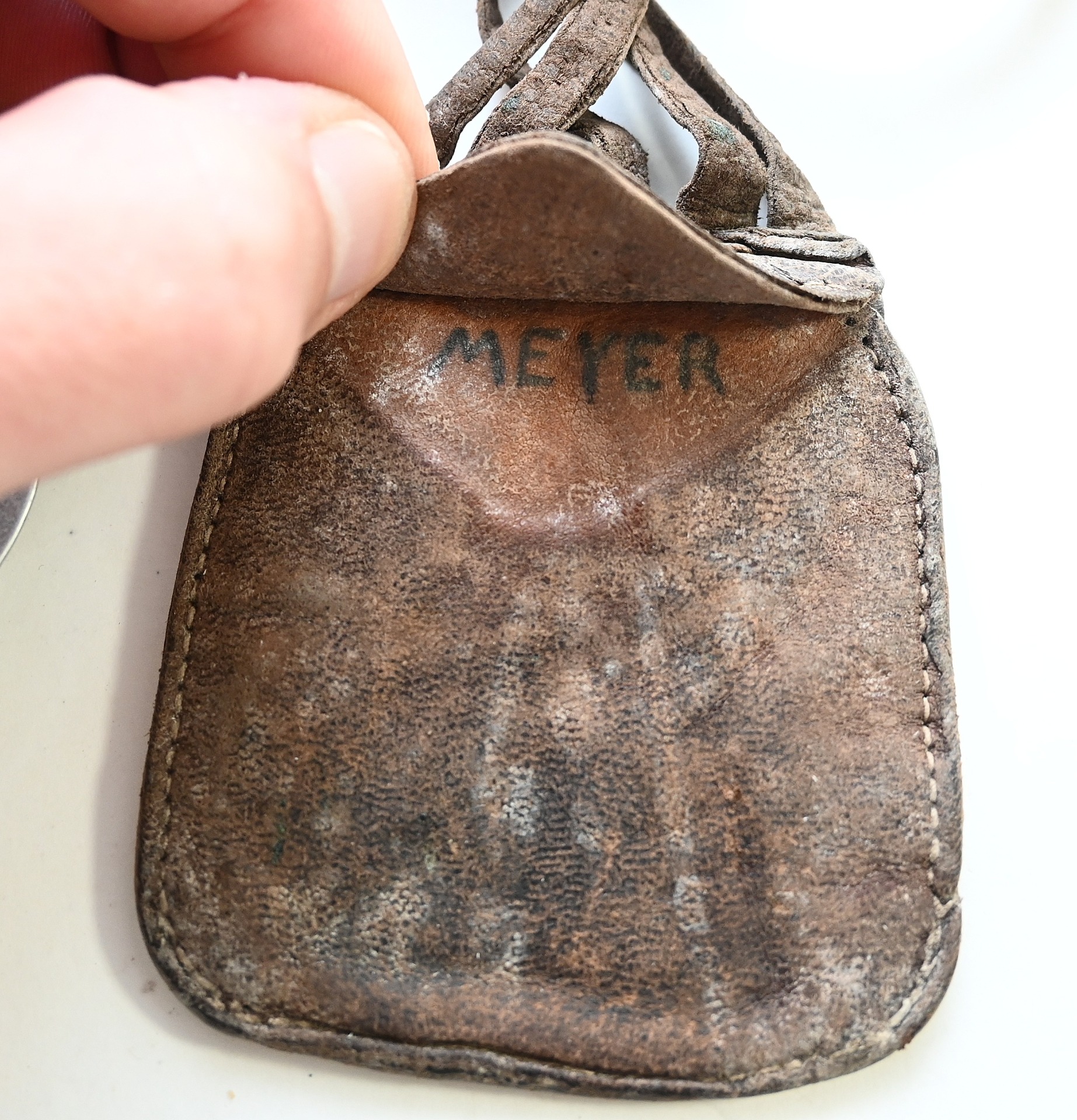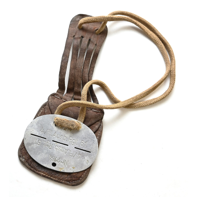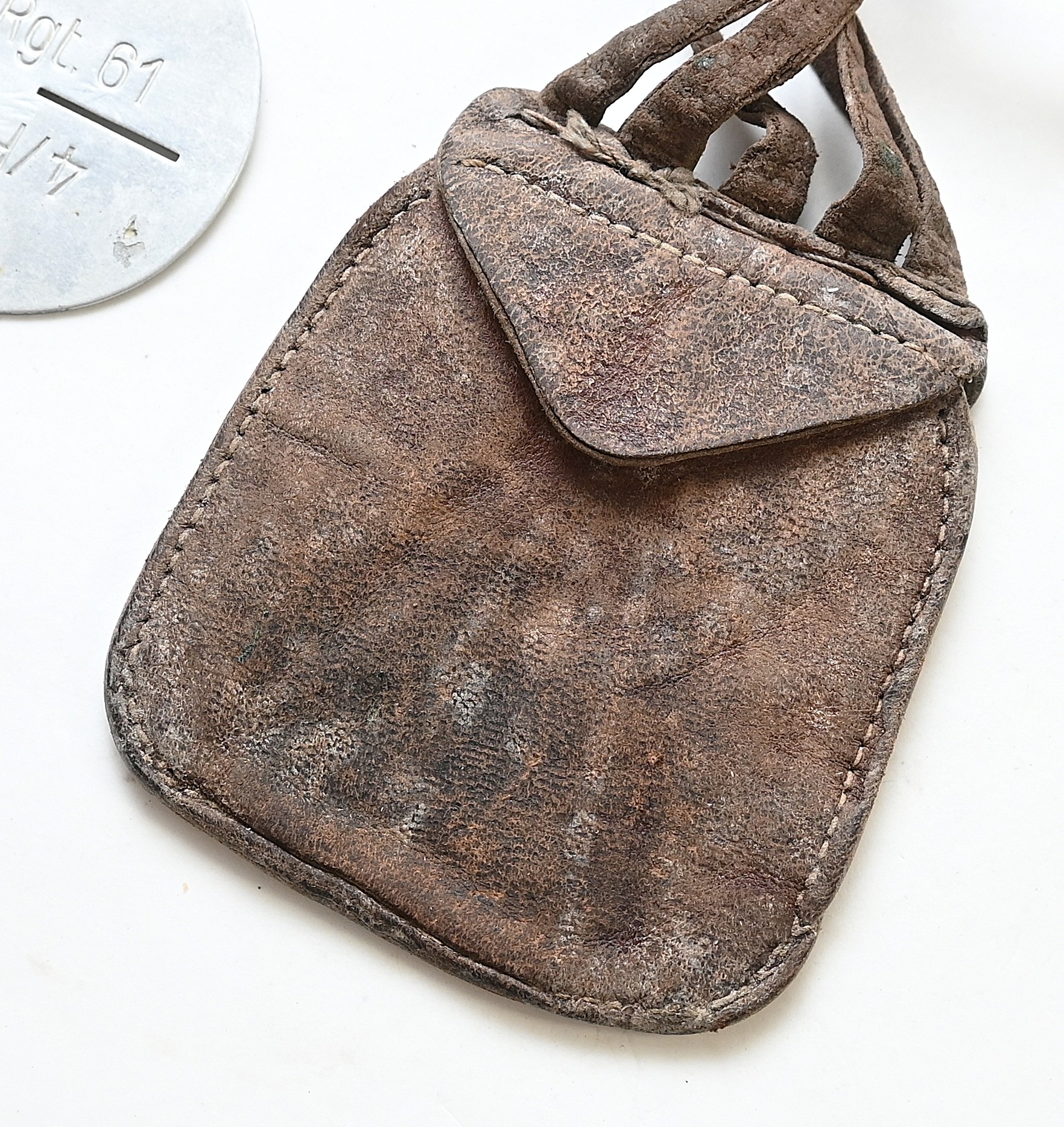 The regiment became Flieger Regiment 61 in August 1942 and it was renamed Luftwaffe Jäger Regiment 26 in November 1942. It served under the 13.Luftwaffe Feld-Division and fought in Russia in areas like Wolchow, Ladoga and Pleskau. The division and her units where disbanned in April 1944 and the remnants where absorbed by the 12.Luftwaffe Feld-Division which fought in Riga, Kurland and Danzig. The tag comes with its original leather pouch which is named 'Meyer'.