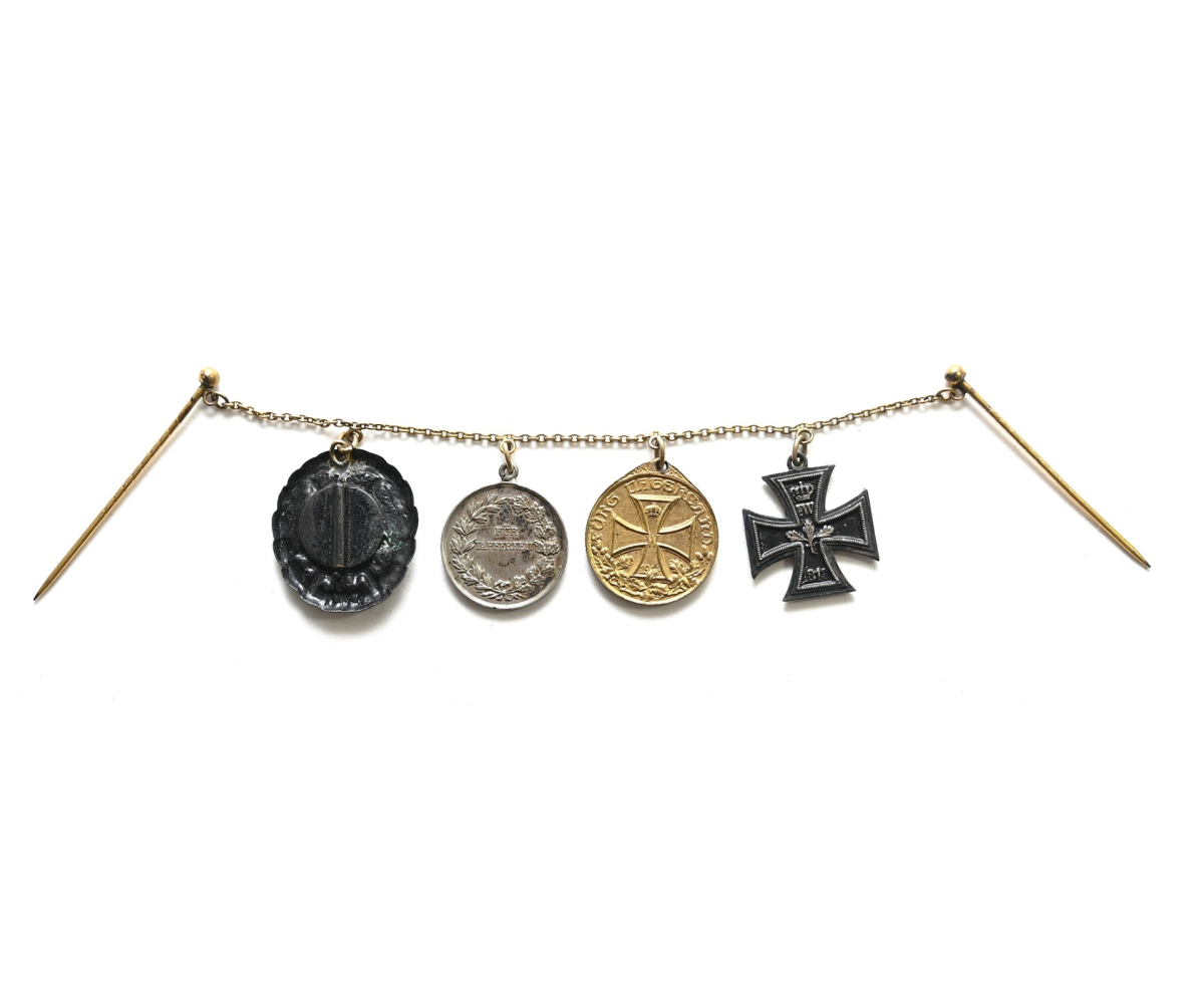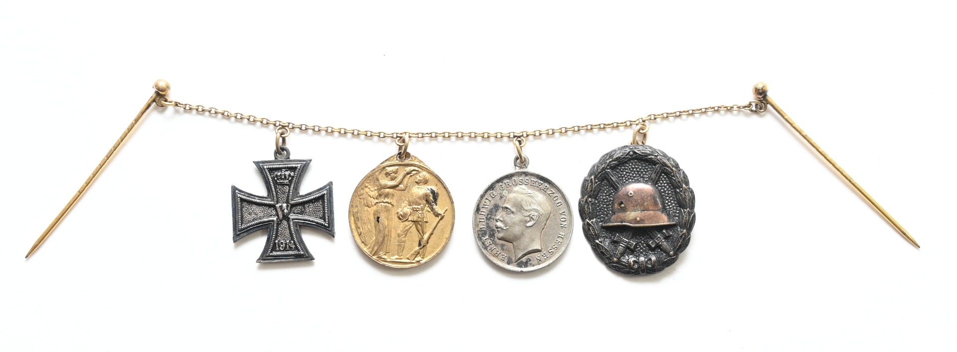 It consists out of the EKII, Ehrendenkmünze des Weltkriegs, Tapferkeitsmedaille and Verwundetenabzeichen in Schwarz.