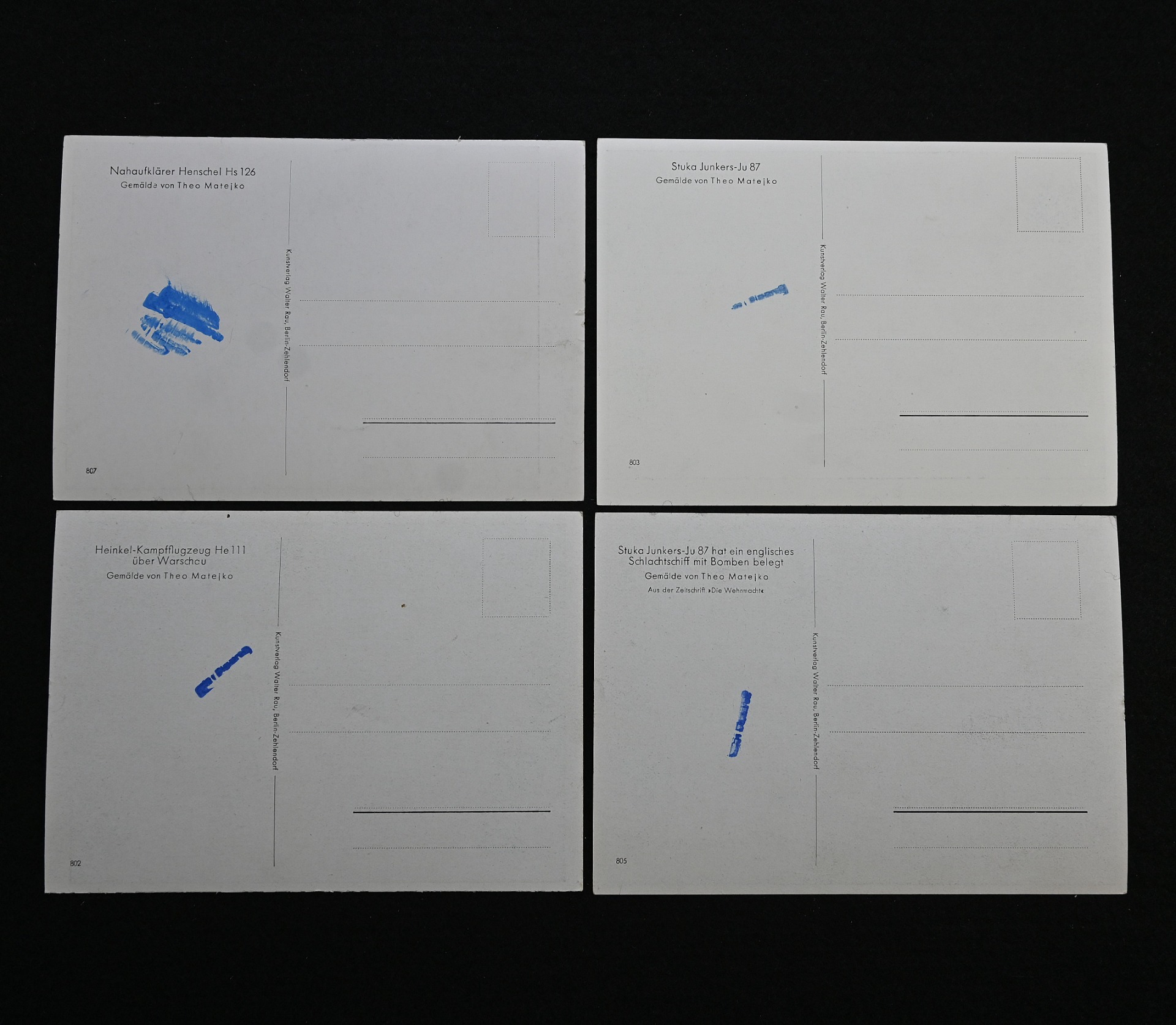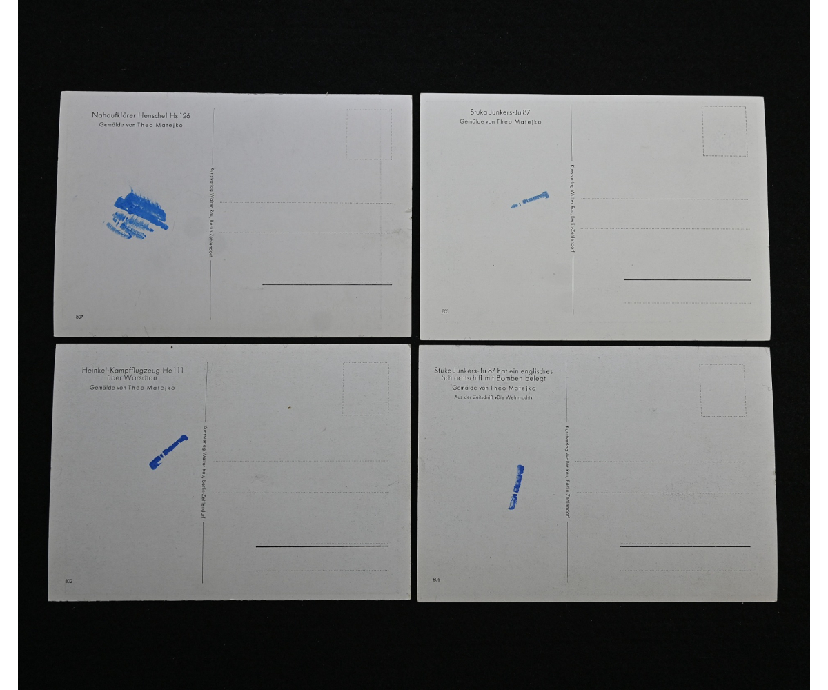 A very nice set of 4 decorative Luftwaffe aircraft related postcards in near mint condiiton.
