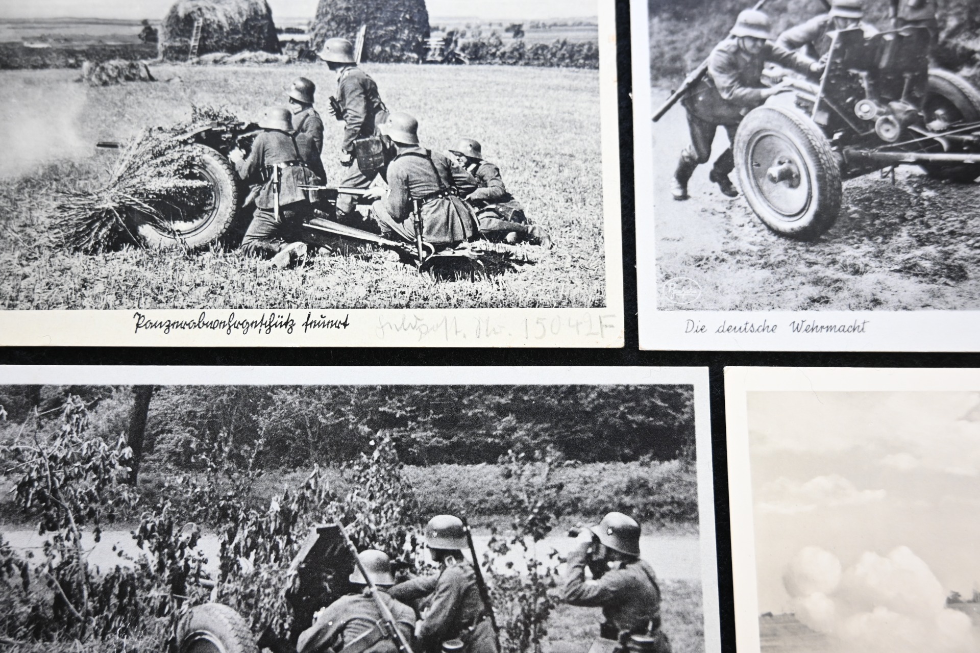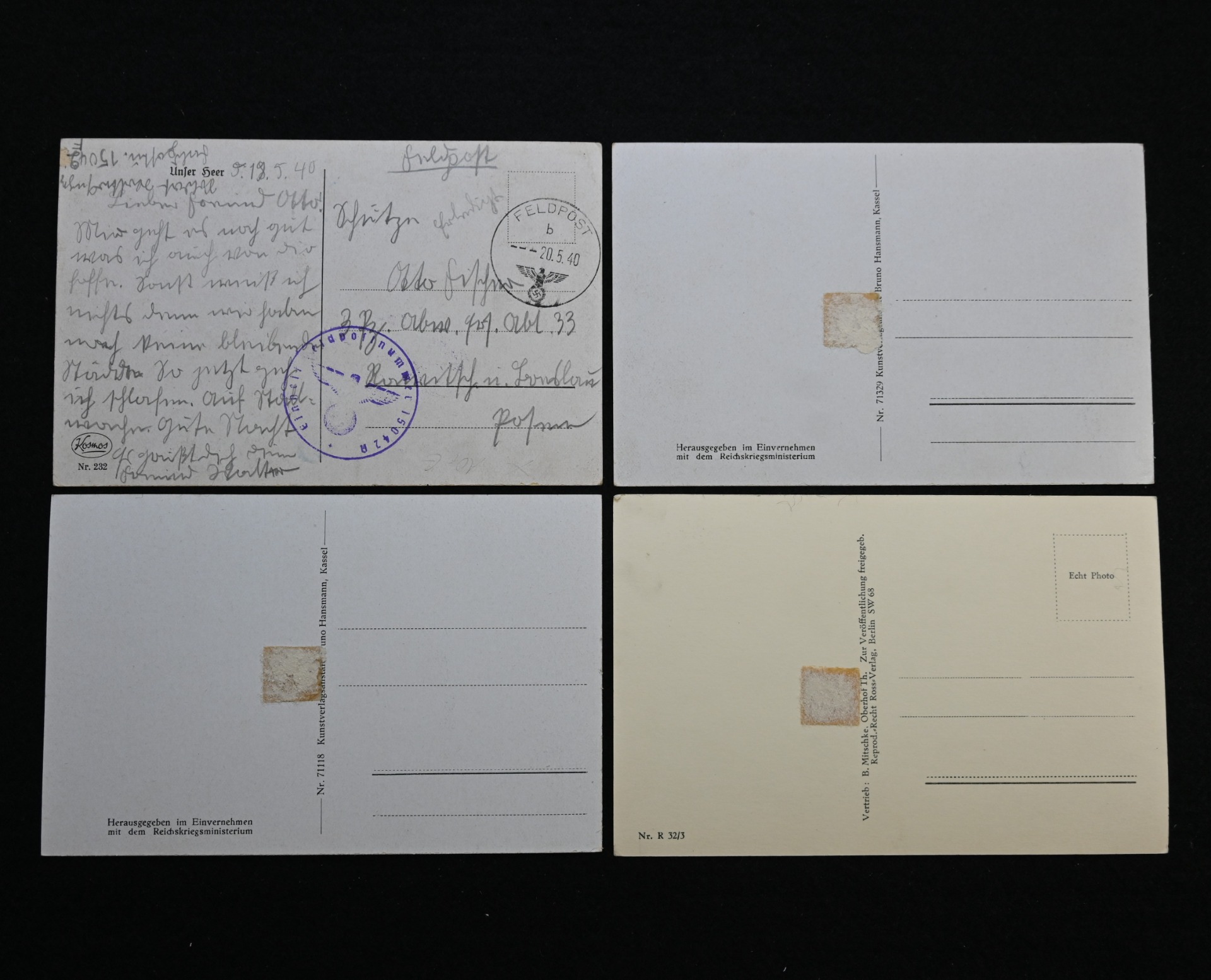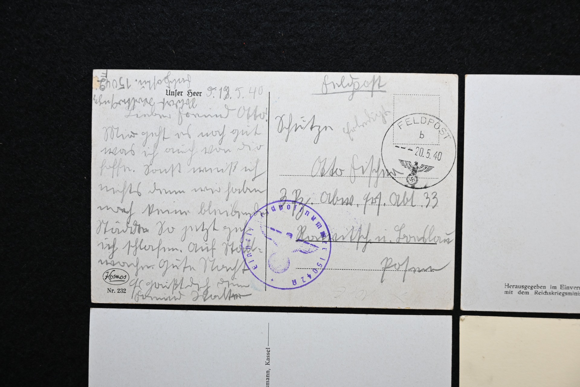The postcards show overall normal signs of storage wear. One card has a Feldpostnummer '15042F' written on it which means the writer of the message served in Infanterie-Regiment 347.