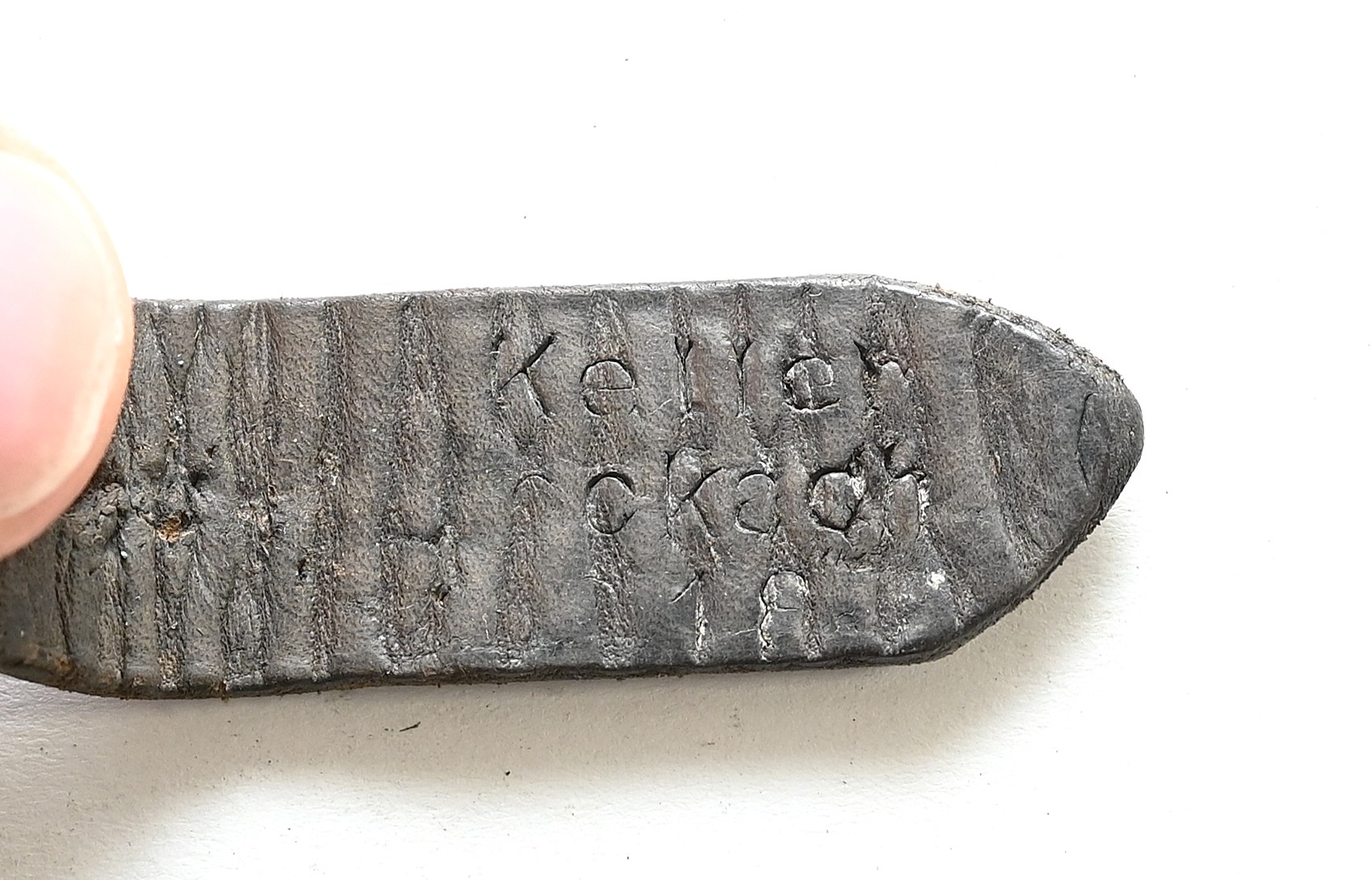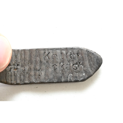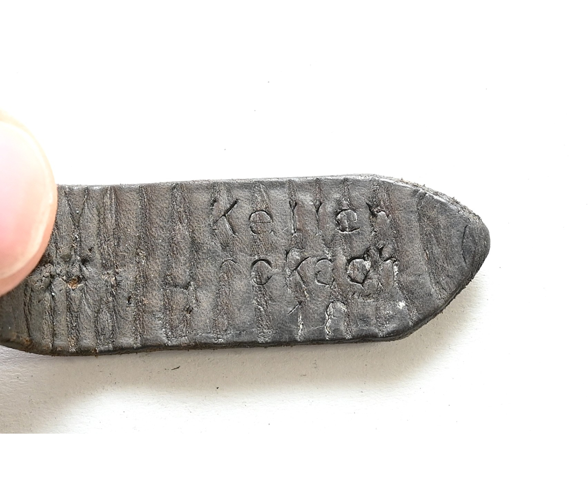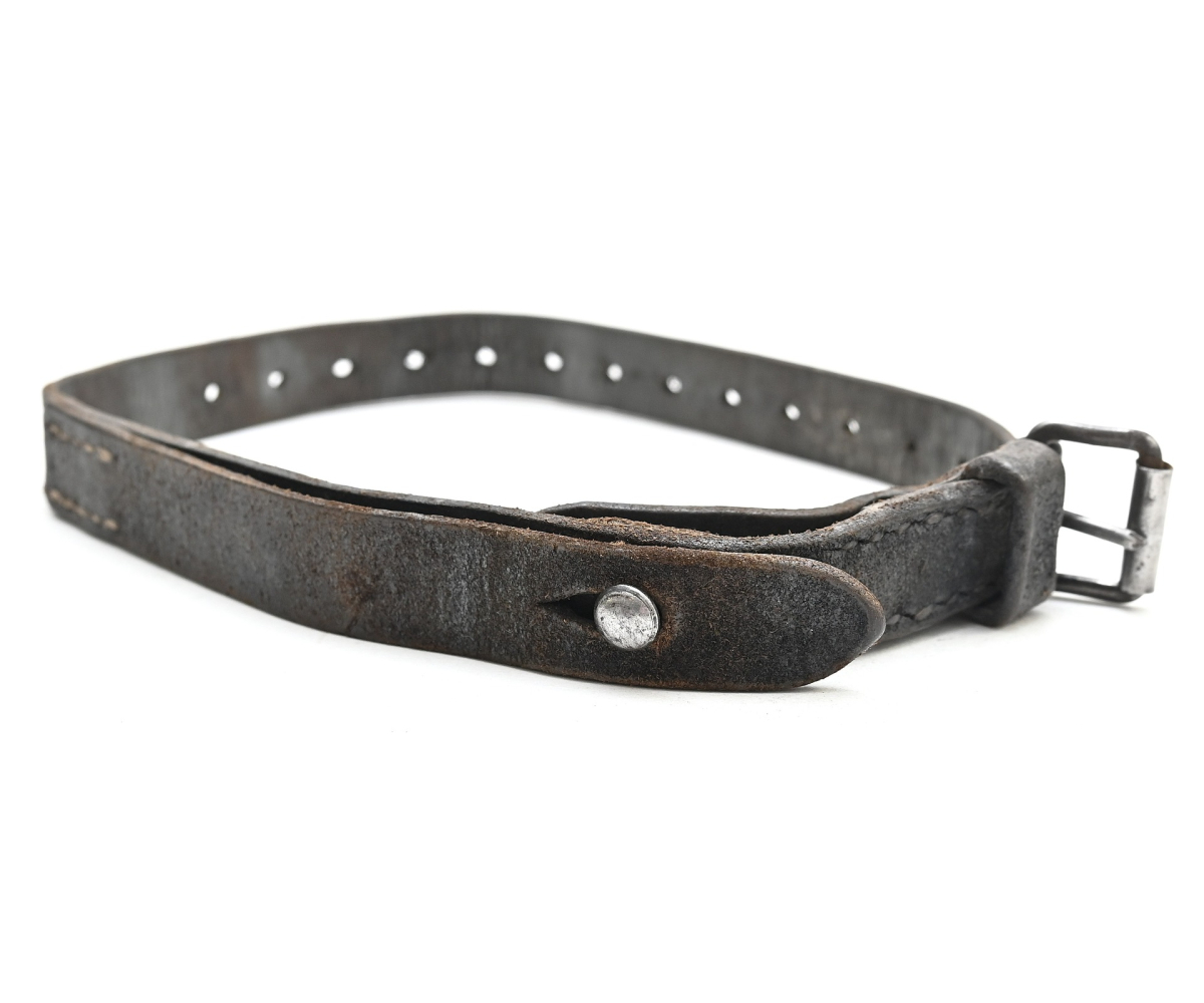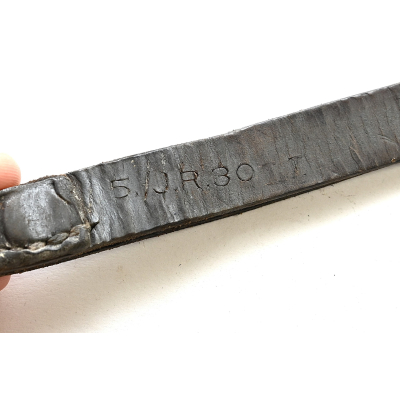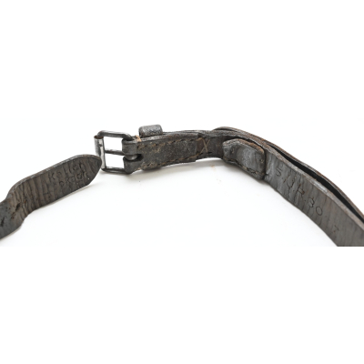 The strap shows overall signs of wear. The leather is supple. It has a surface cracks, but everything is solid. The strap is maker marked on the tip. It's also unit marked with 5.kompanie Infanterie Regiment 30.