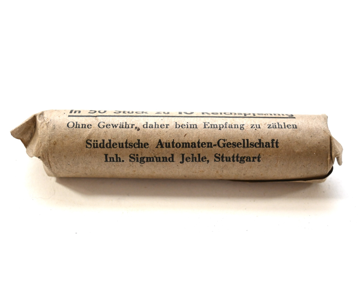 Very nice unopened roll of 10 x 50 Deutsche Reichpfennig coins in excellent condition.