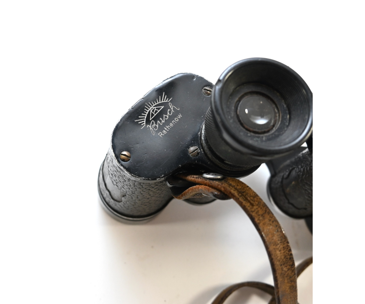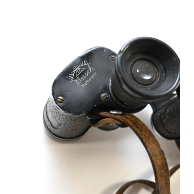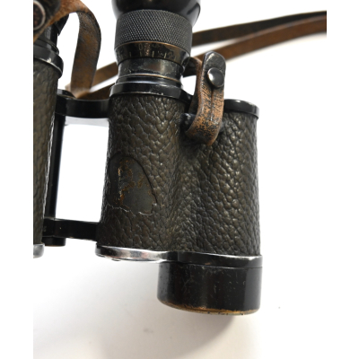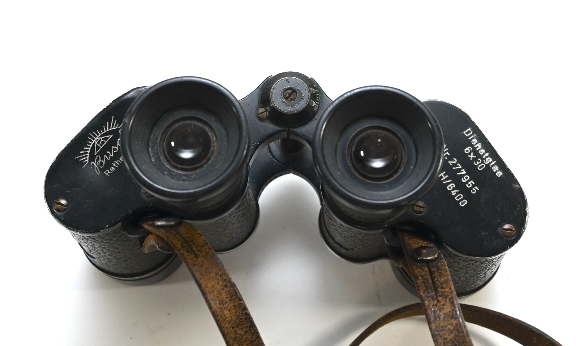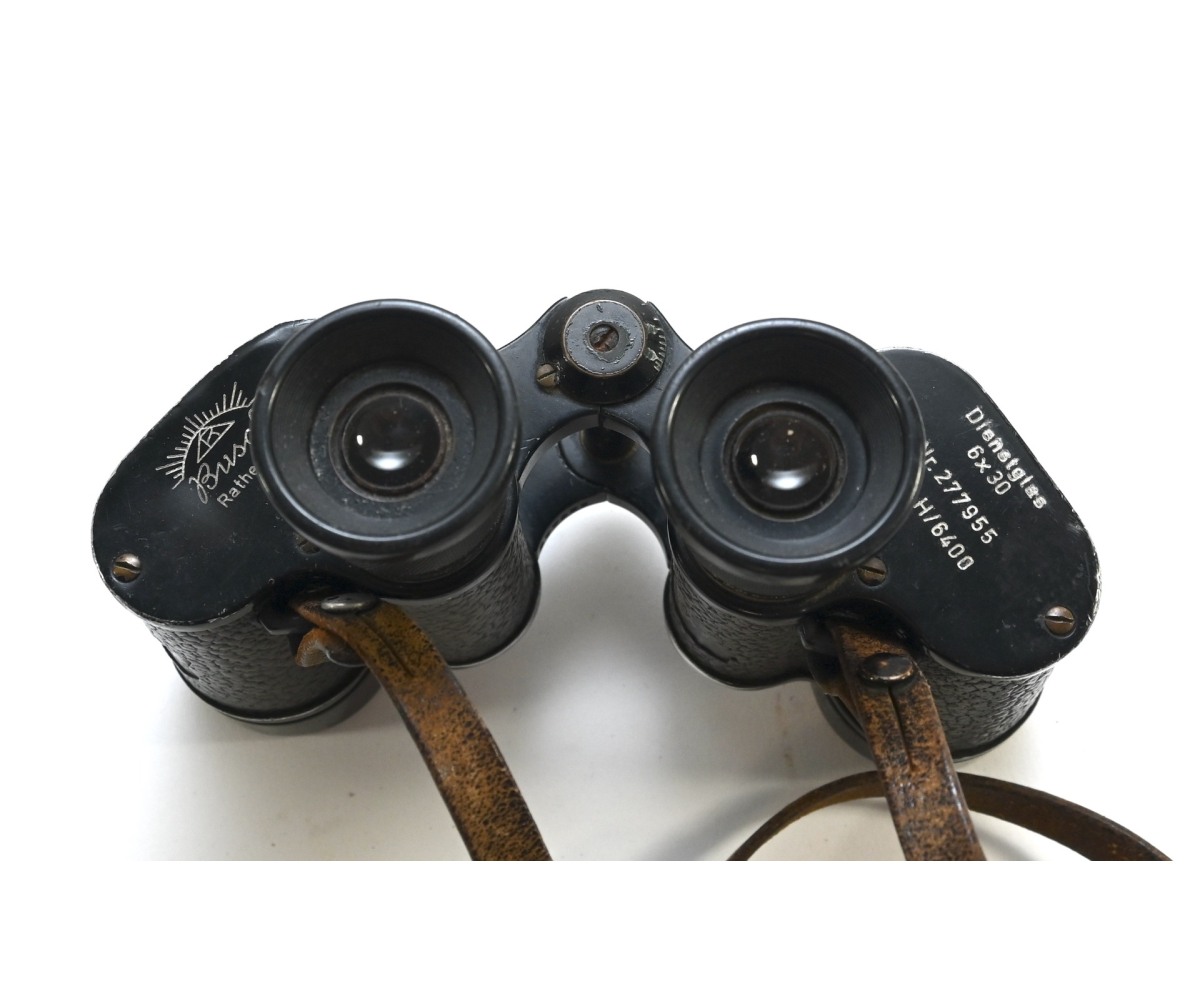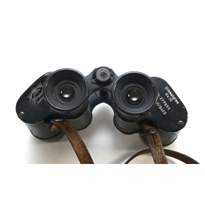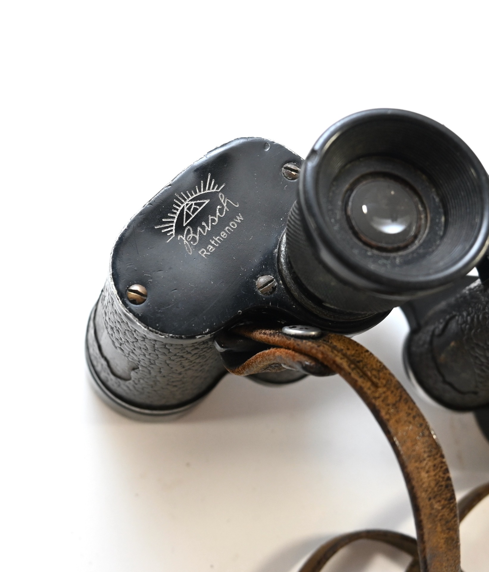 The binocular is in overall good condition. Has a nice patina. Both lenses are in working order. That means you can focus them. The visibility is pretty good (beter in hand). The strichplatte is also present. The right side is marked with '6x30' the serial number '277955', the letter 'M'(etrics) and 'H/6400' (meaning it has a strichtplatte). The left side is marked with the maker 'Busch Rathenow'. The strap is in used but good, solid and supple condition.