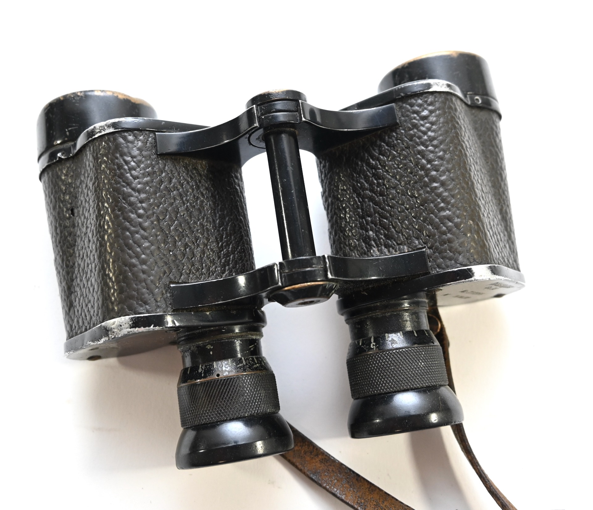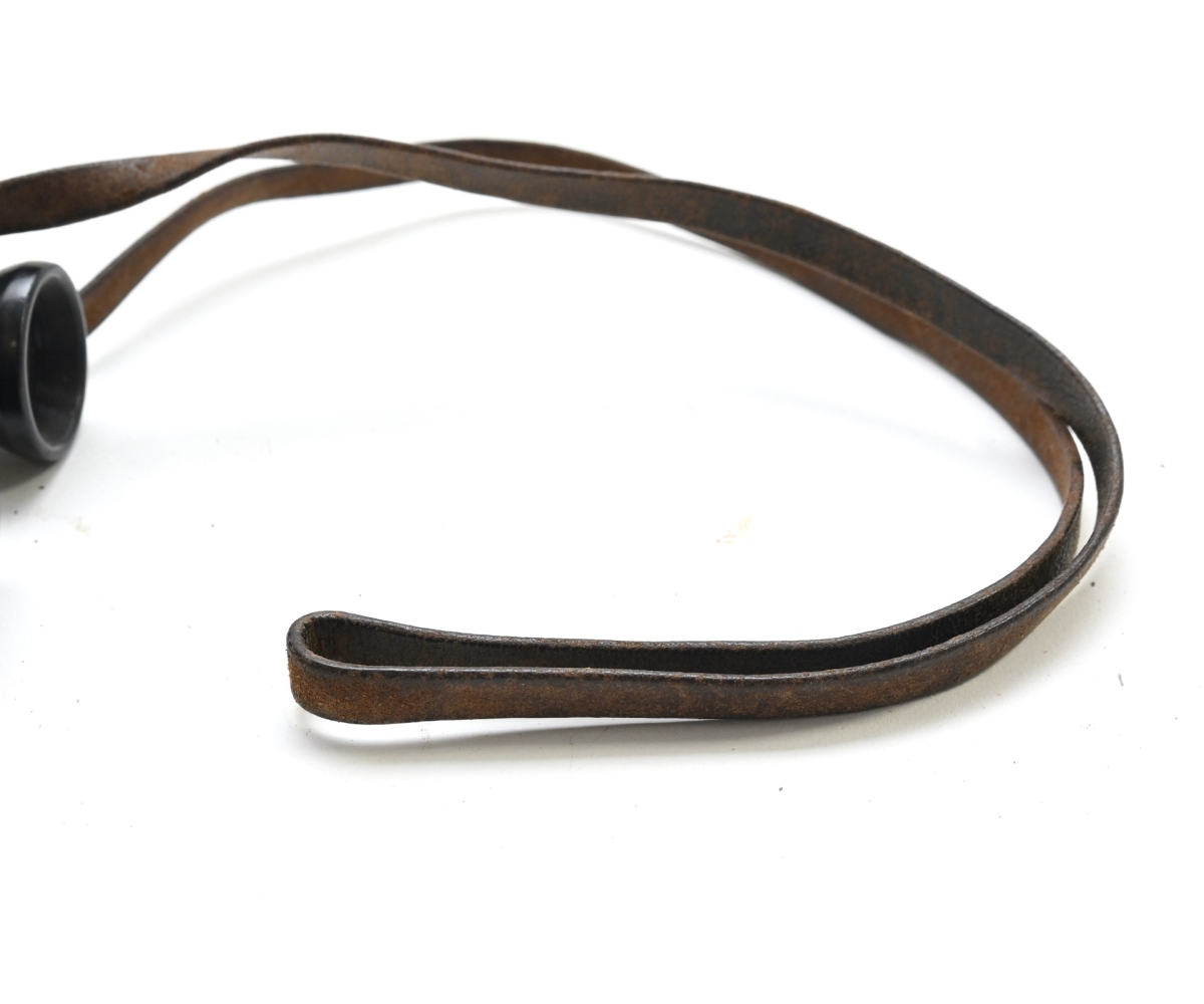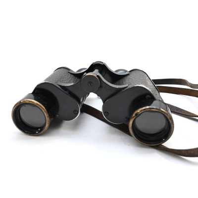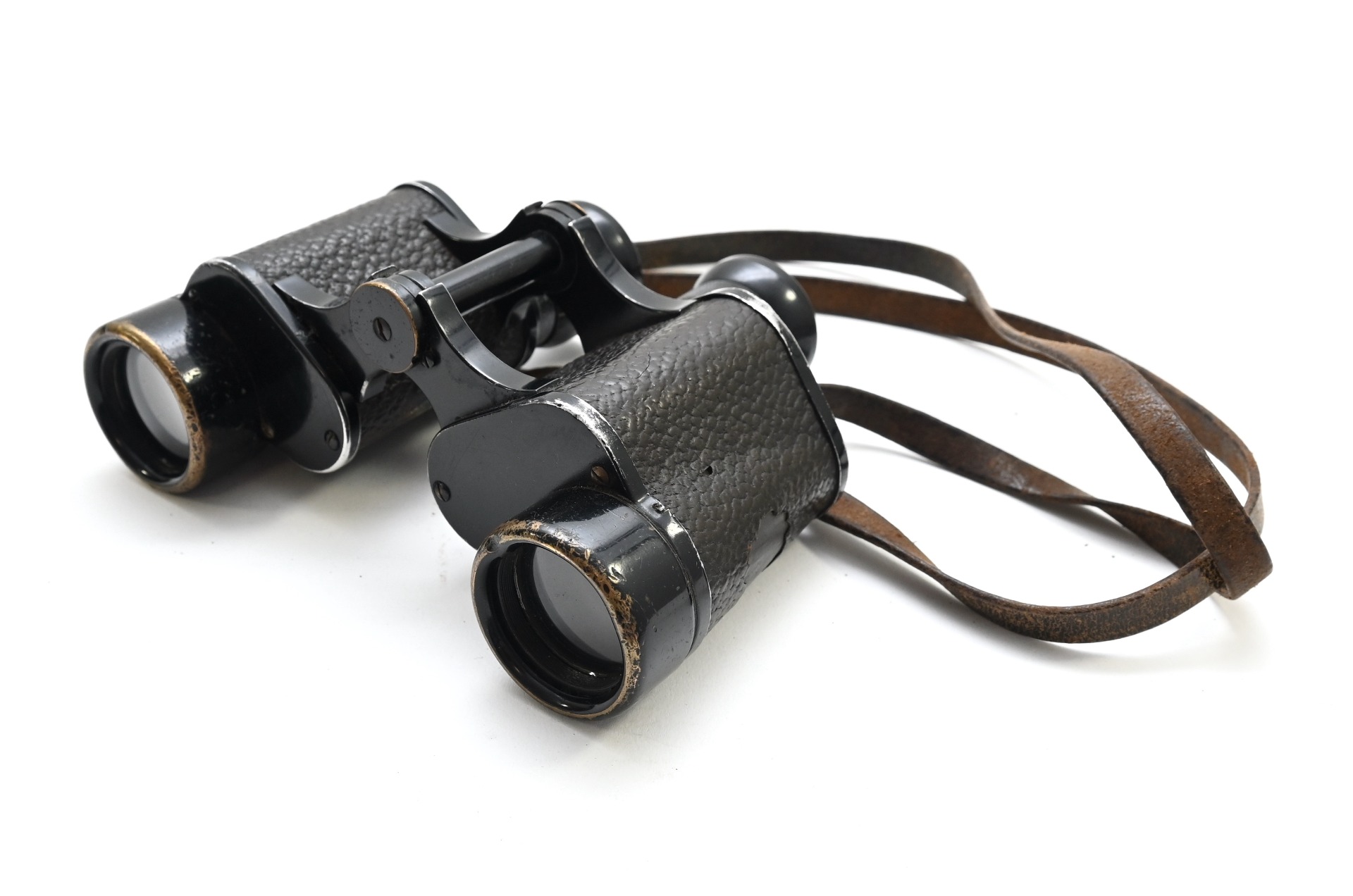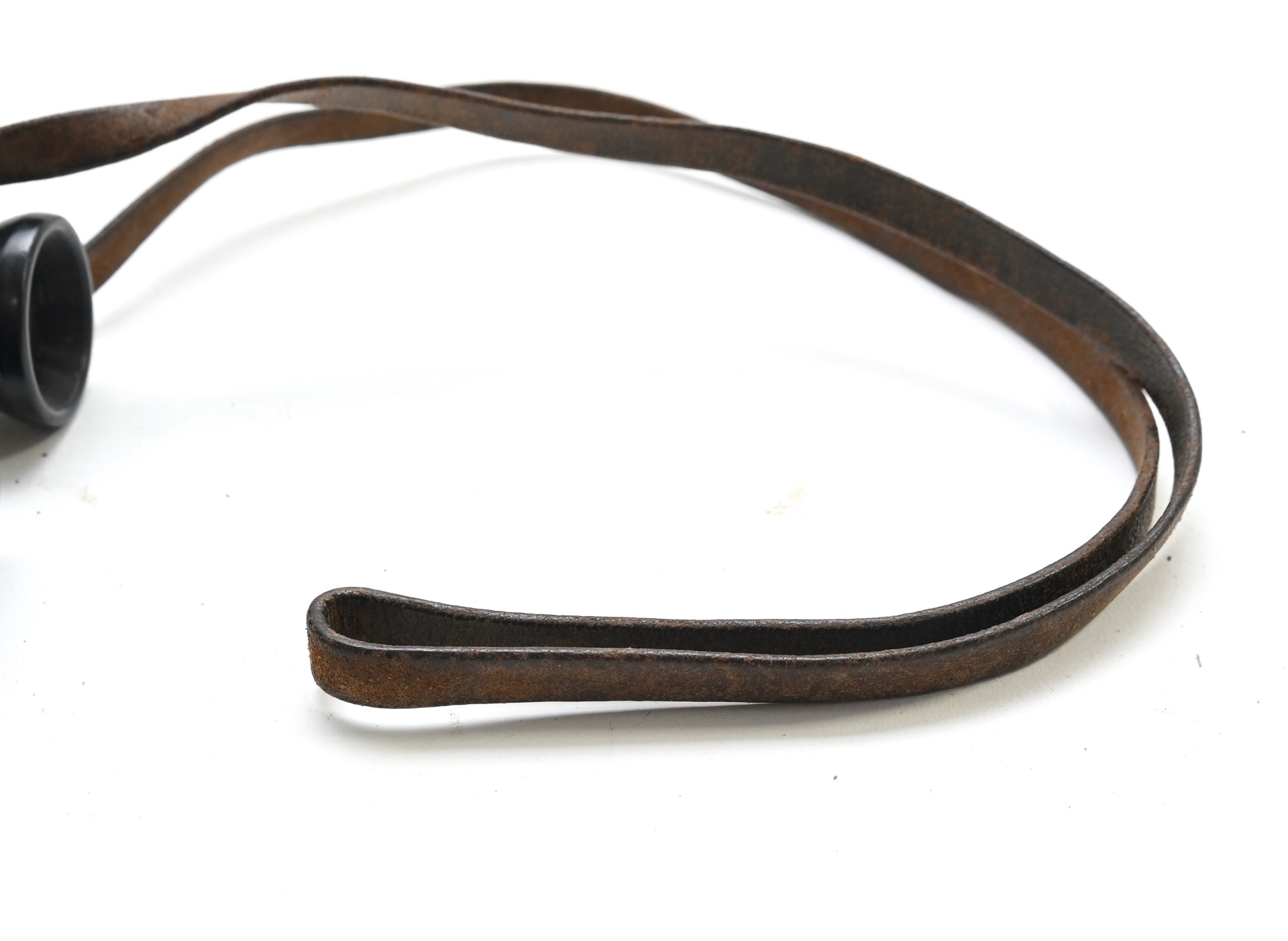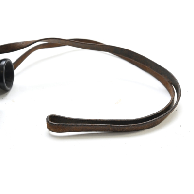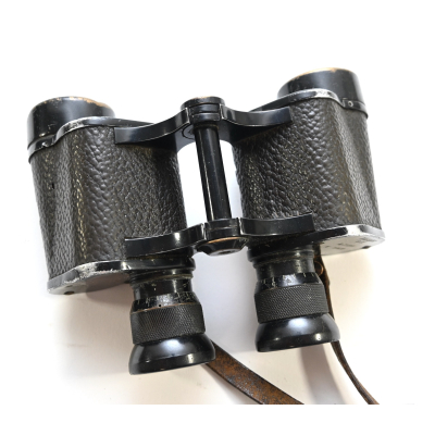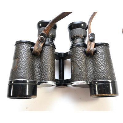 The binocular is in overall good condition. Has a nice patina. Both lenses are in working order. That means you can focus them. The visibility is pretty good (beter in hand). The strichplatte is also present. The right side is marked with '6x30' the serial number '277955', the letter 'M'(etrics) and 'H/6400' (meaning it has a strichtplatte). The left side is marked with the maker 'Busch Rathenow'. The strap is in used but good, solid and supple condition.