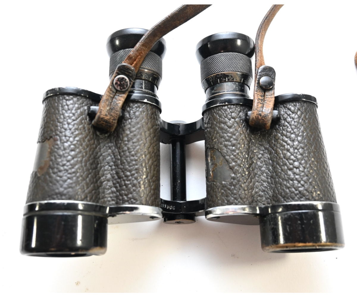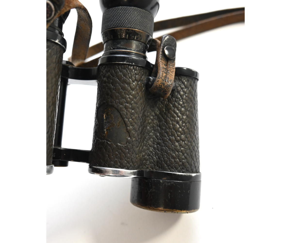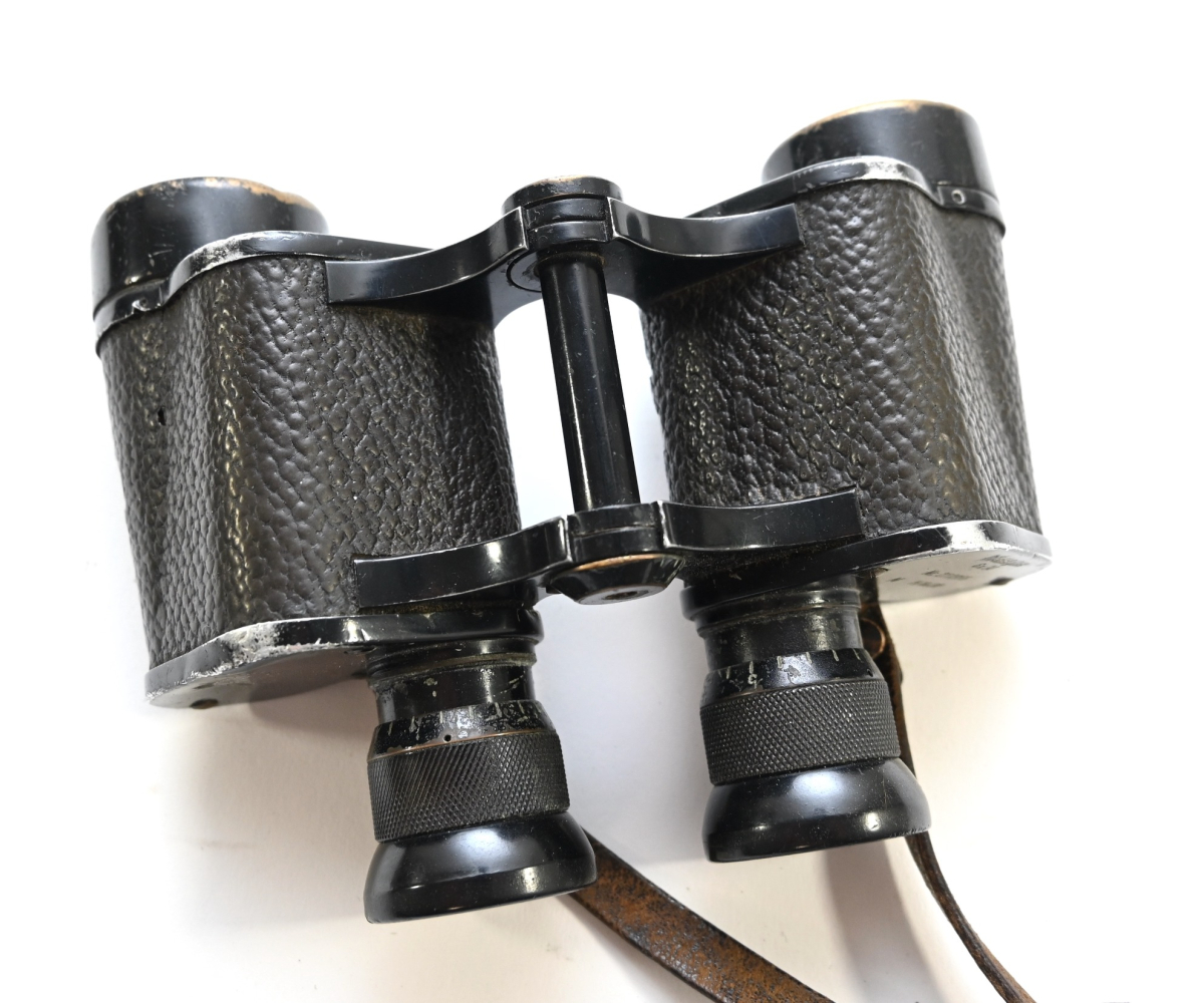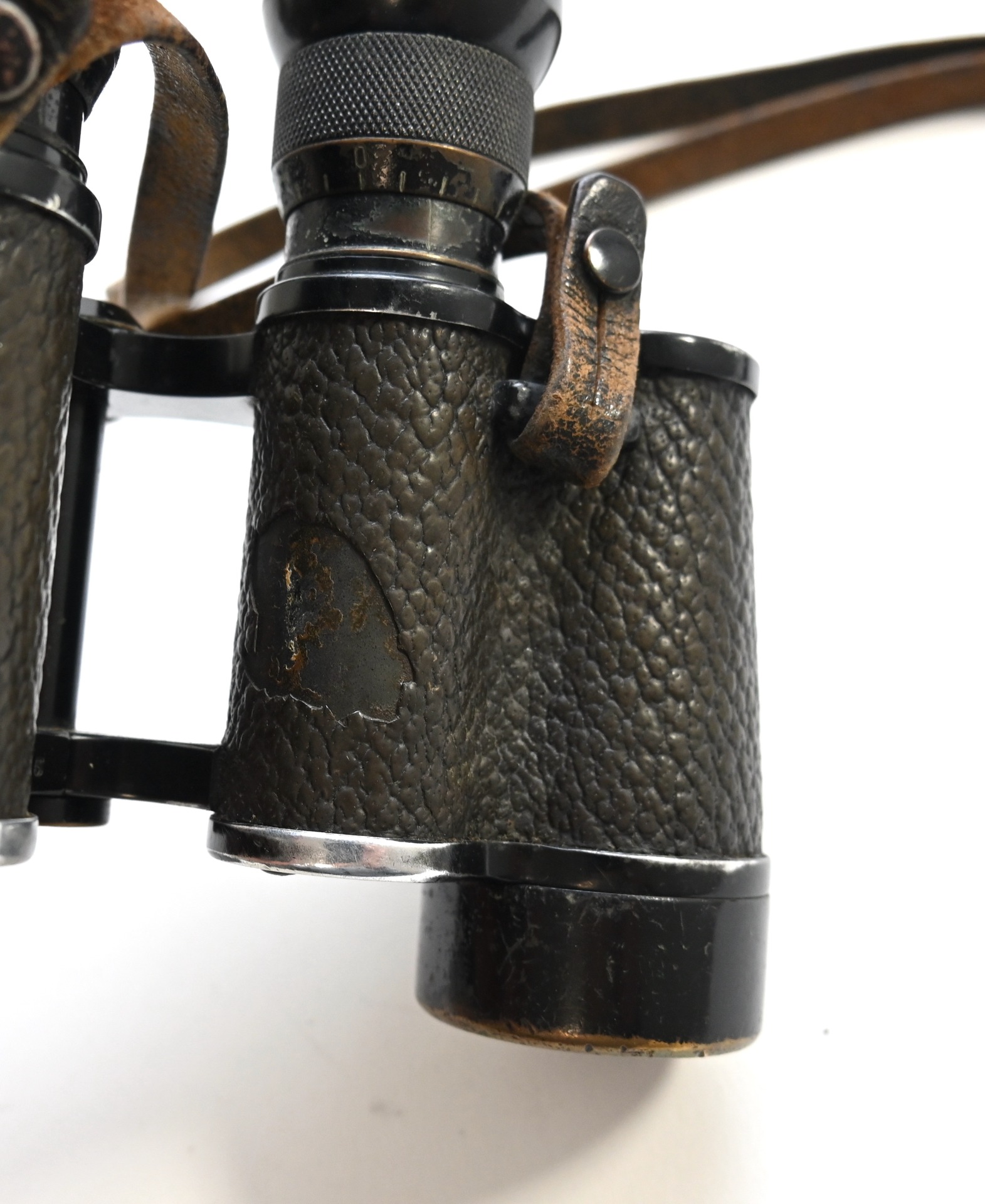 The binocular is in overall good condition. Has a nice patina. Both lenses are in working order. That means you can focus them. The visibility is pretty good (beter in hand). The strichplatte is also present. The right side is marked with '6x30' the serial number '277955', the letter 'M'(etrics) and 'H/6400' (meaning it has a strichtplatte). The left side is marked with the maker 'Busch Rathenow'. The strap is in used but good, solid and supple condition.