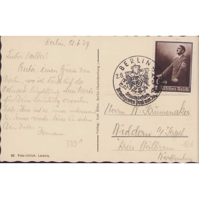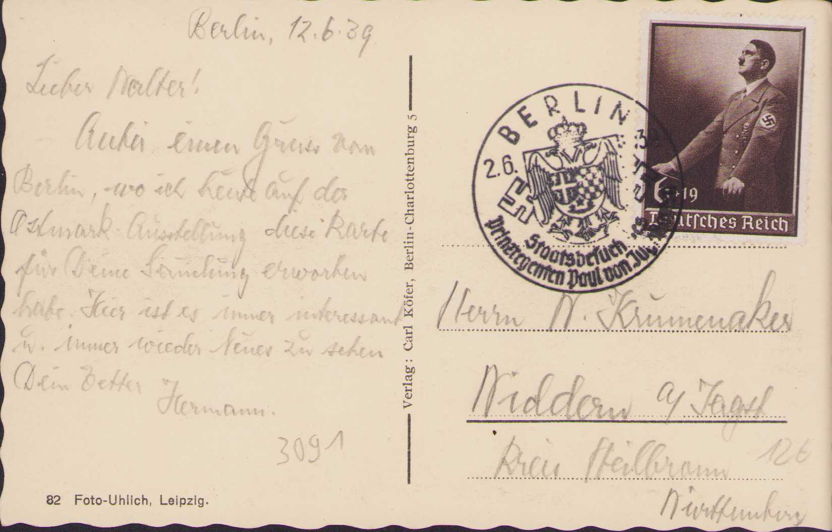 The postcard shows overall normal signs of wear. Handwritten message on the back. Dated 12 June 1939