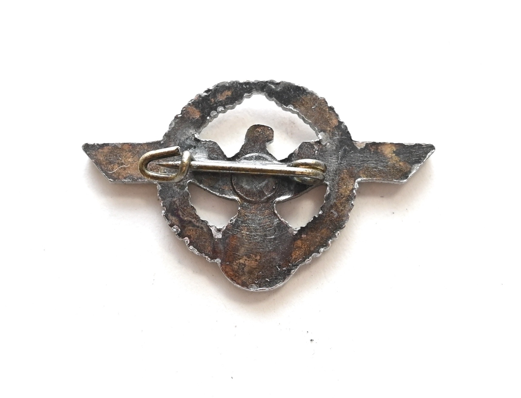 The badge is complete with pin and catch on the back. Not visible maker marked. The wingspan is approx 3cm. Quite rare to find.