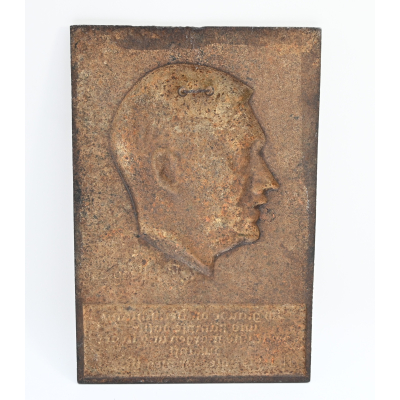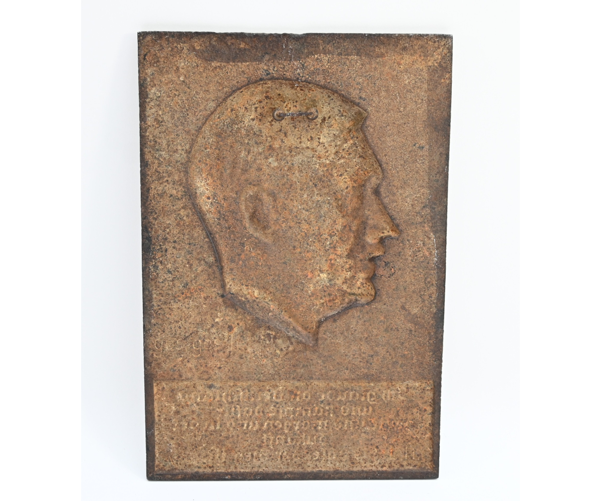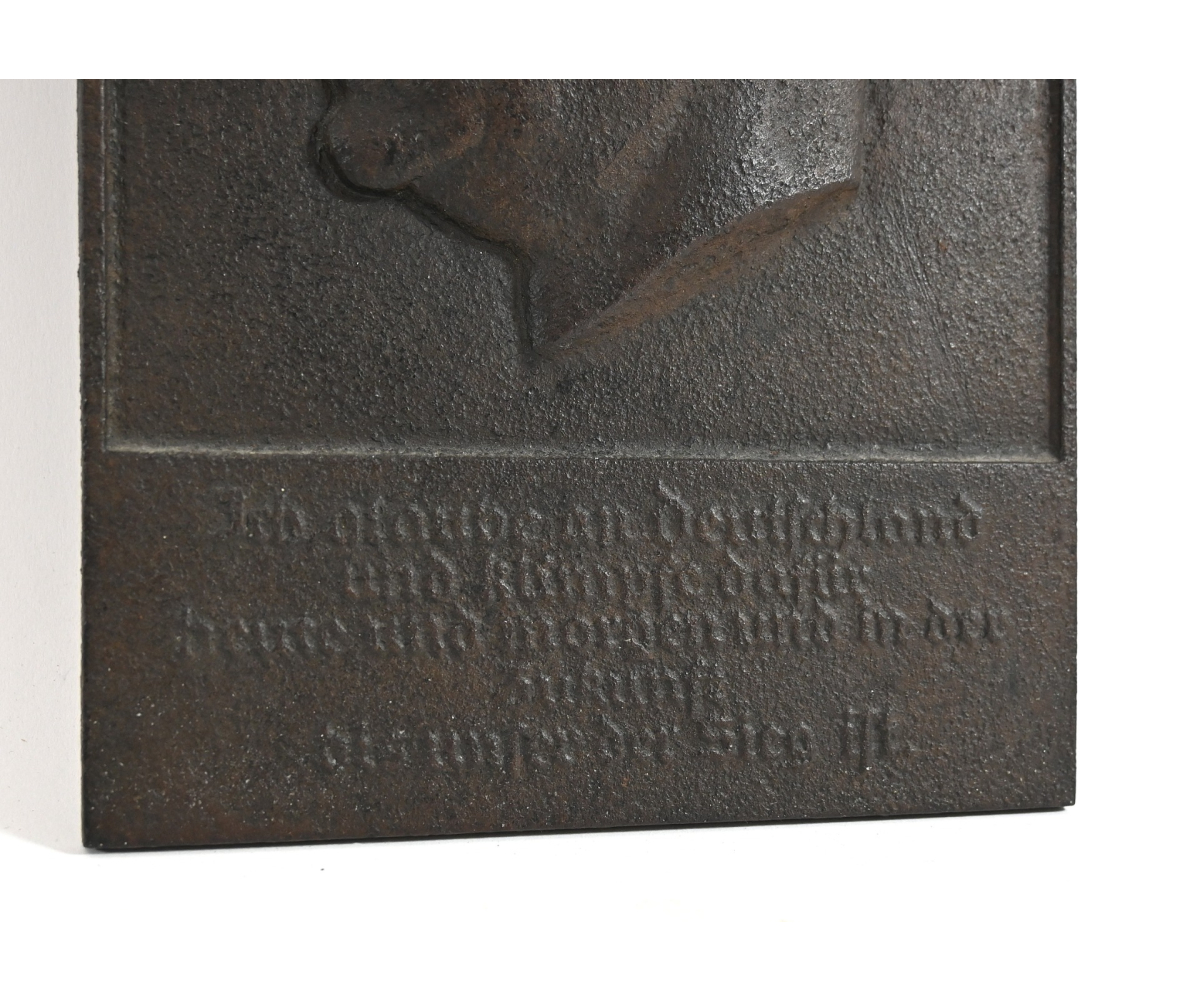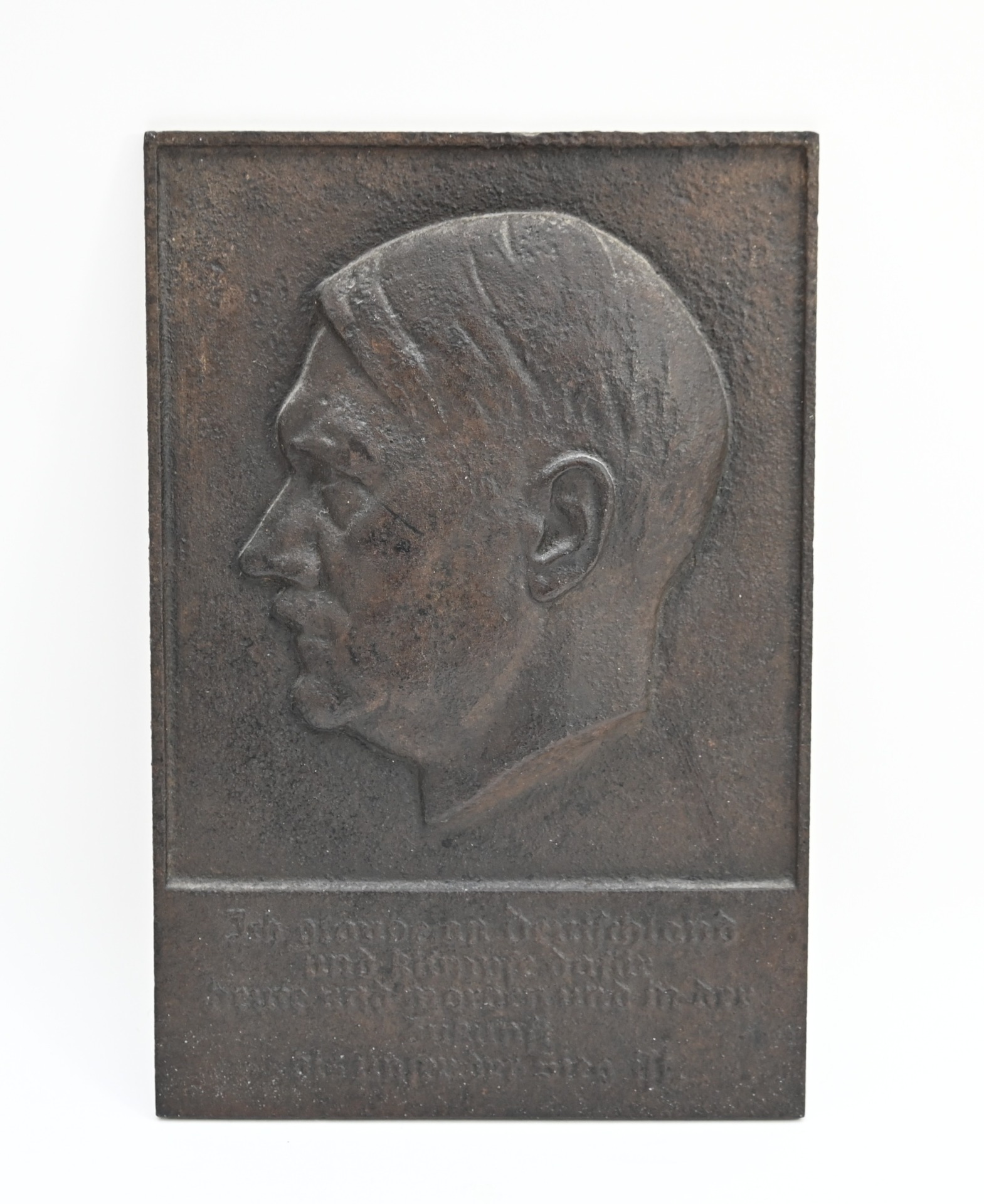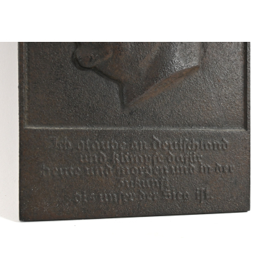 The plaque shows overall signs of wear. It's a well preserved (ground) relic. It's solid and still show a lot of details. Marked on the back with 'Ges.Gesch.'.