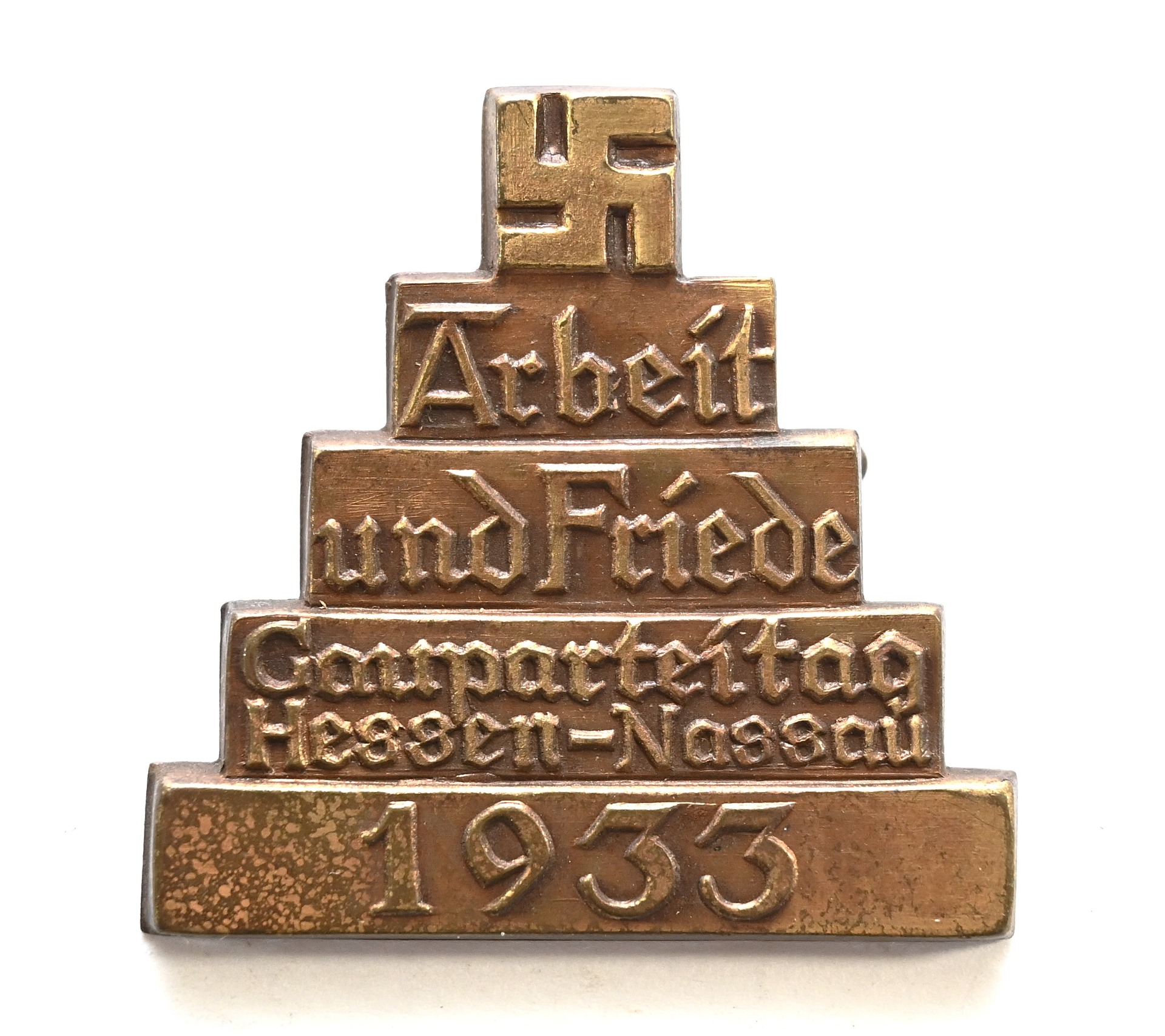 The badge or Abzeichen shows overall normal signs of wear. Complete with pin on the back. Issued in 1933 in Hessen-Nassau.