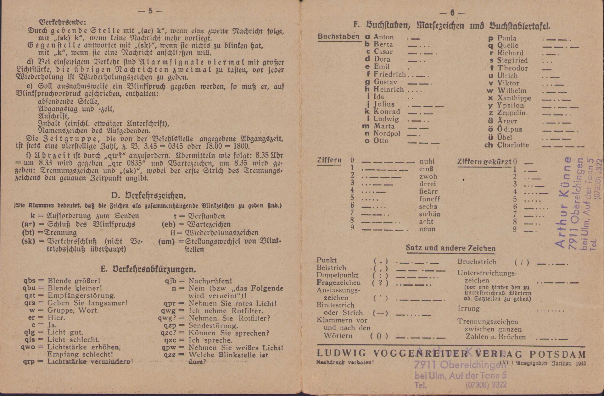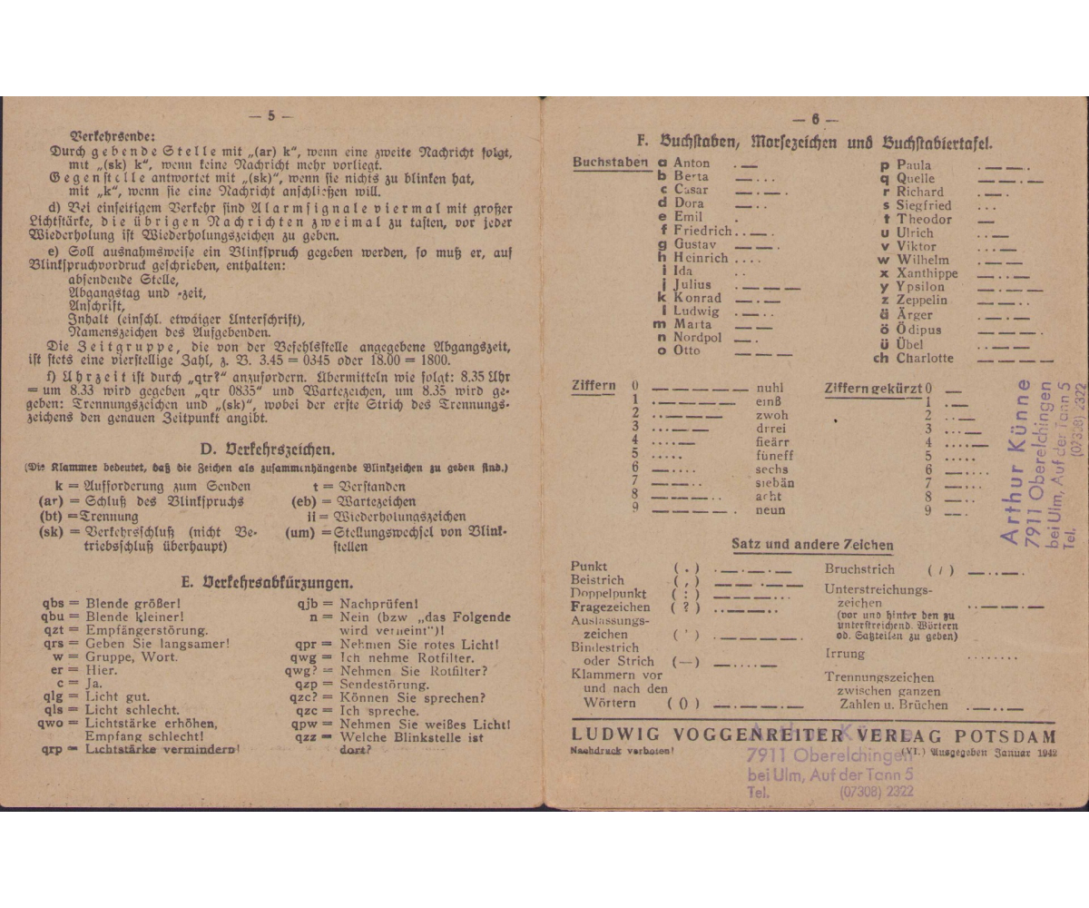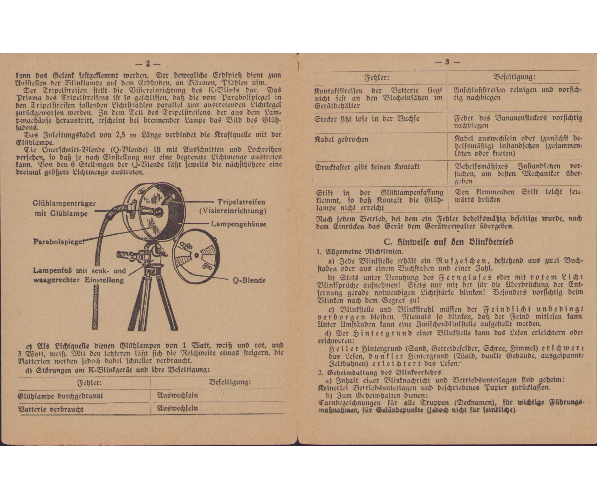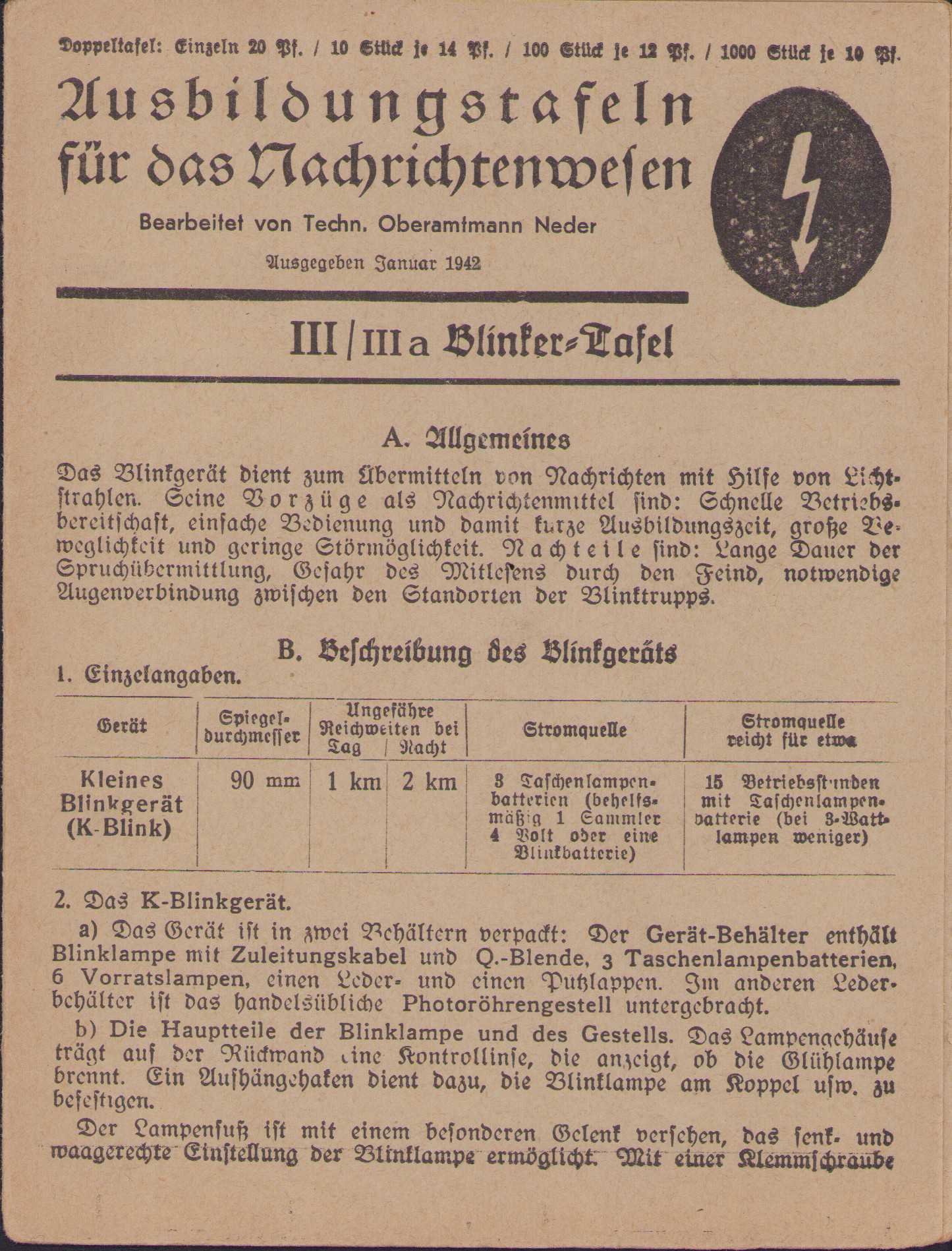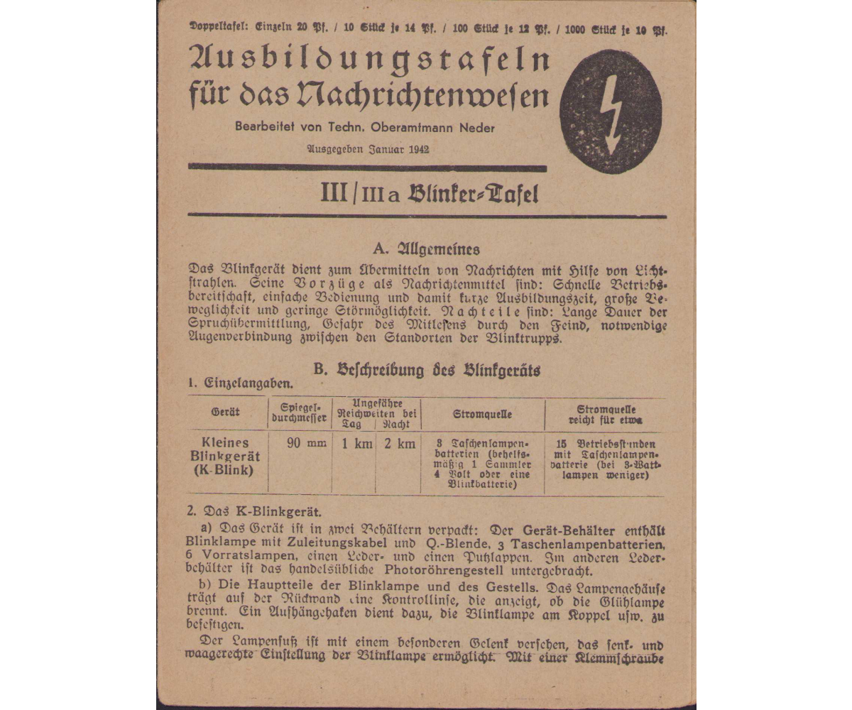 Very nice Wehrmacht Signal Corps instruction flyer or 'Taschentafeln' in excellent condition.