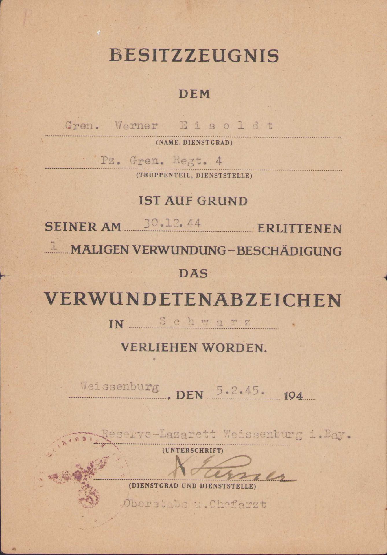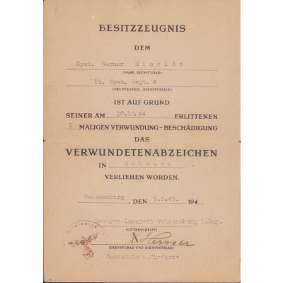 It's dated 30 January 1944 and signed by Generalfeldmarschall Ernst Busch.