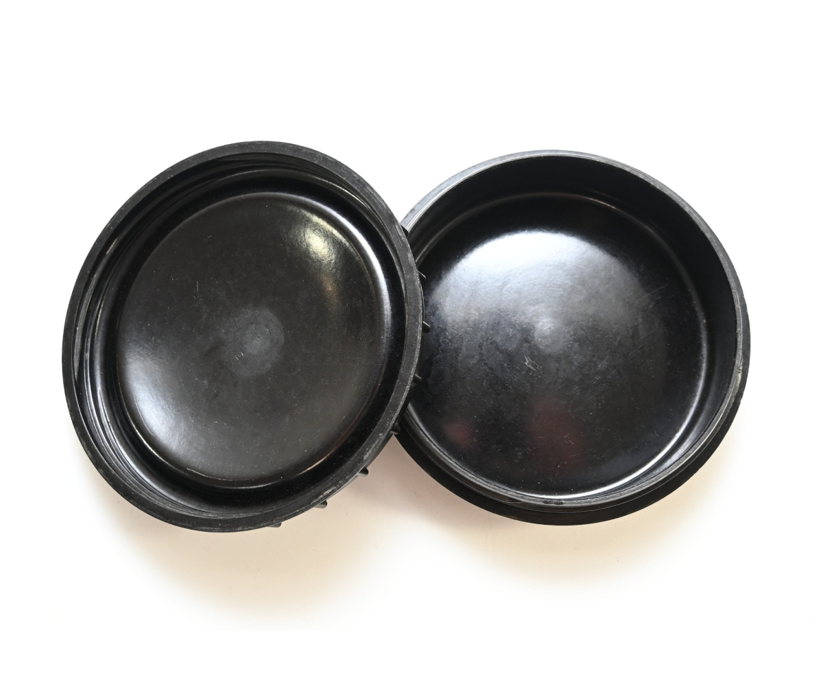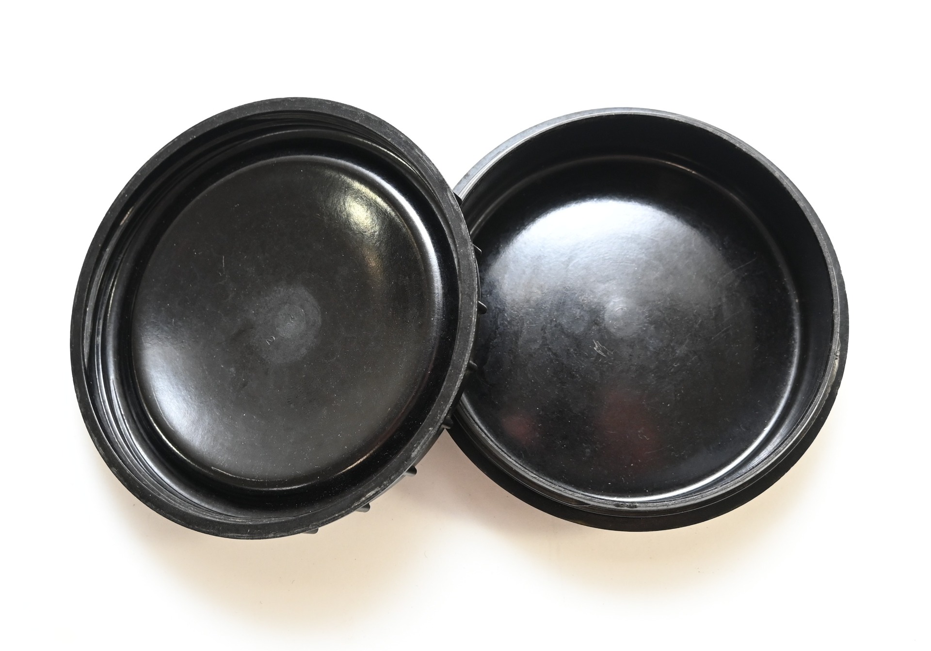 The container shows overall minor signs of use. Both parts are made out of black bakelite.