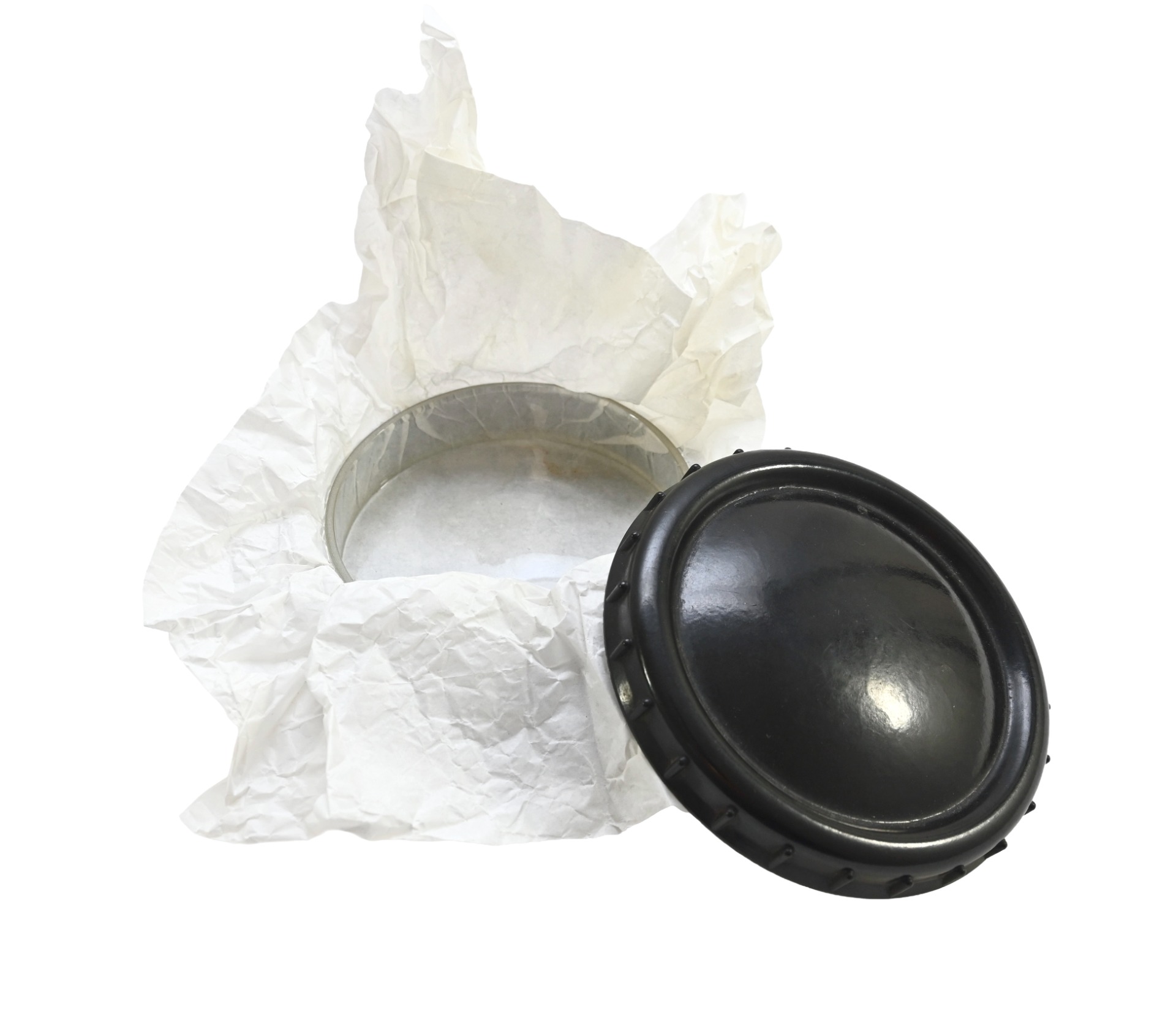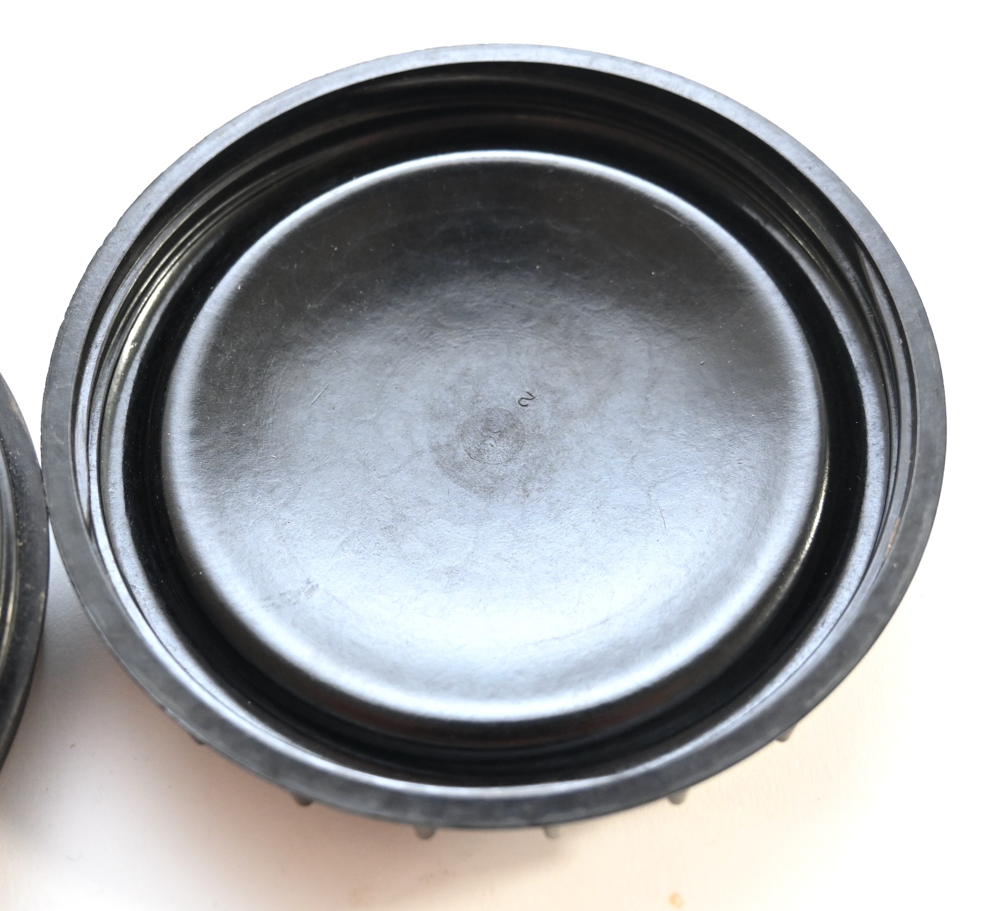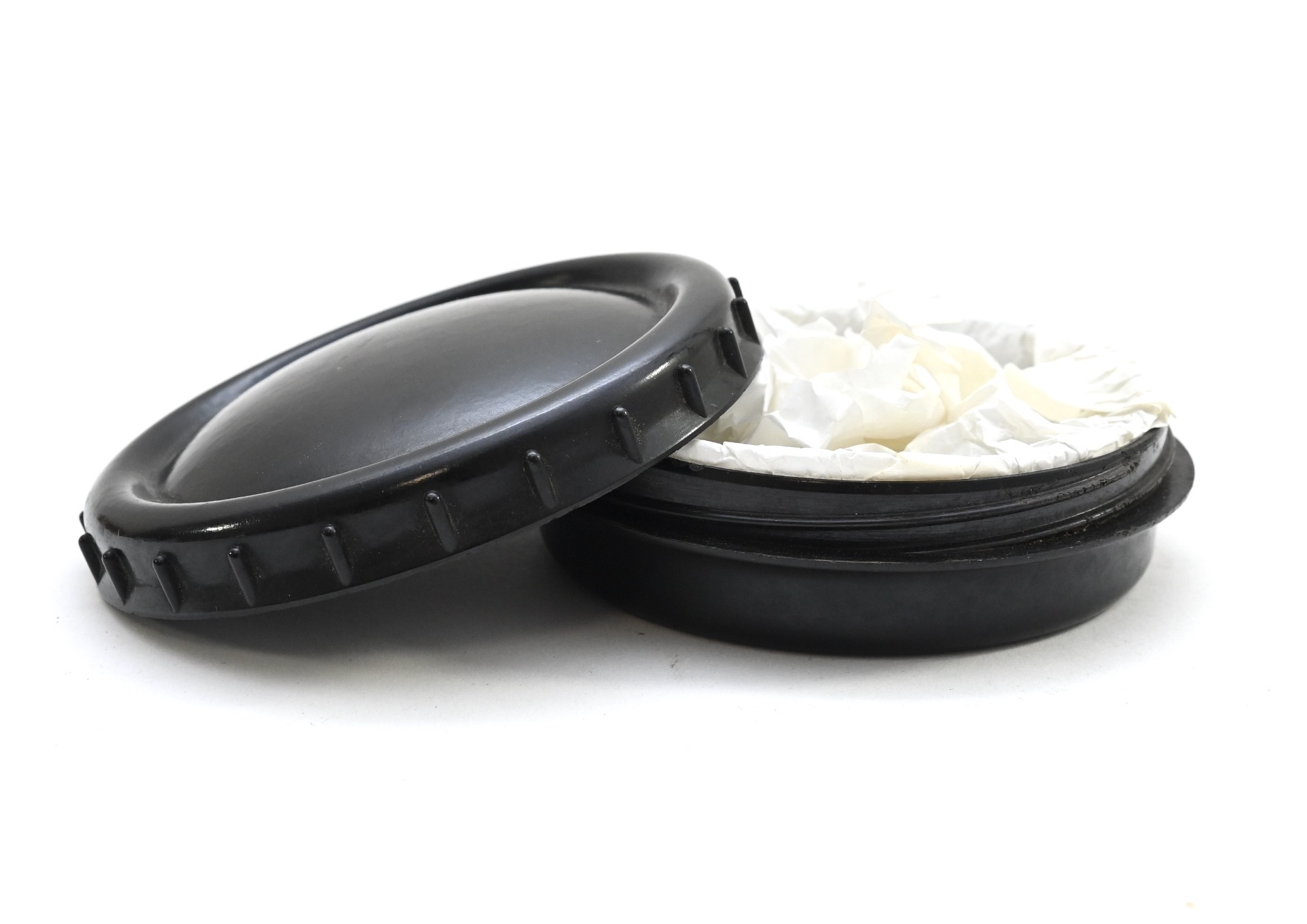Very nice black bakelite fatcontainer or 'Fettbuchse' with glass insert in used, but excellent condition.