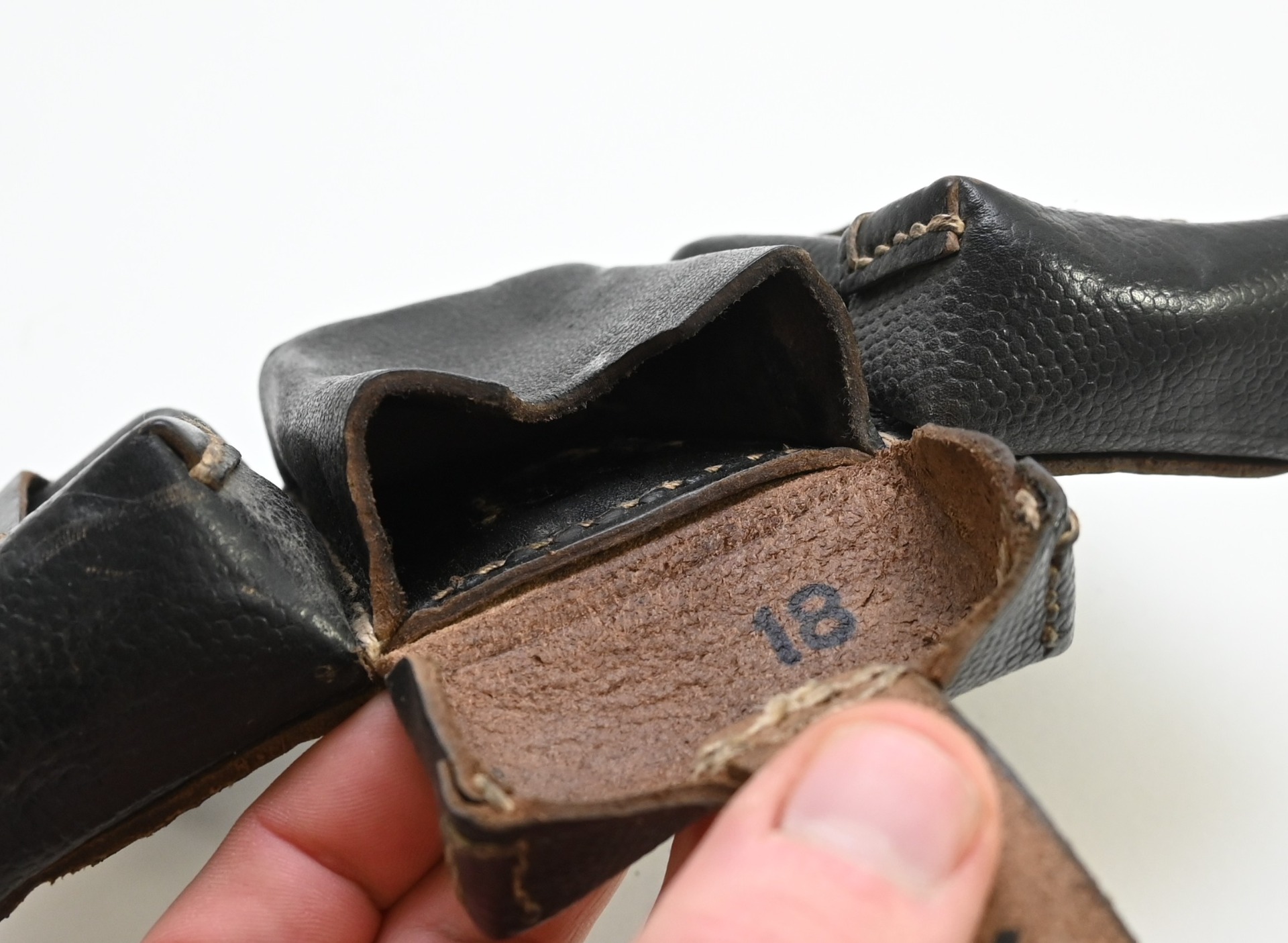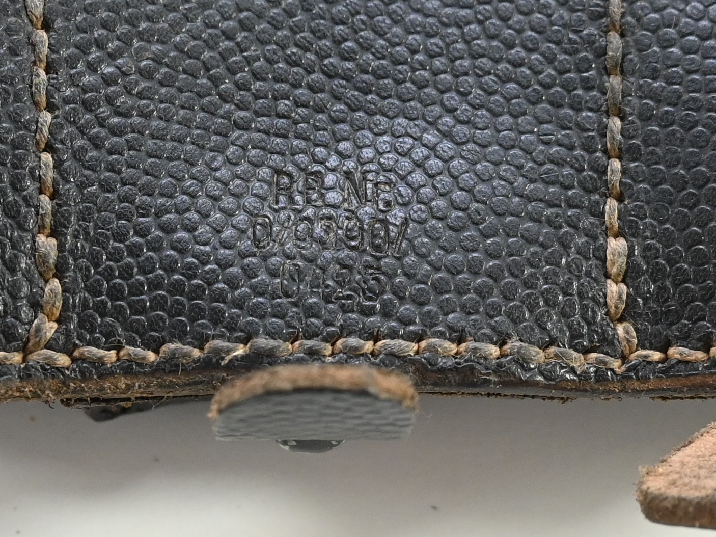 The pouch shows overall normal signs of wear. The leather is supple and solid. Marked on the back by the maker 'RBNr.0/0309/0425'.