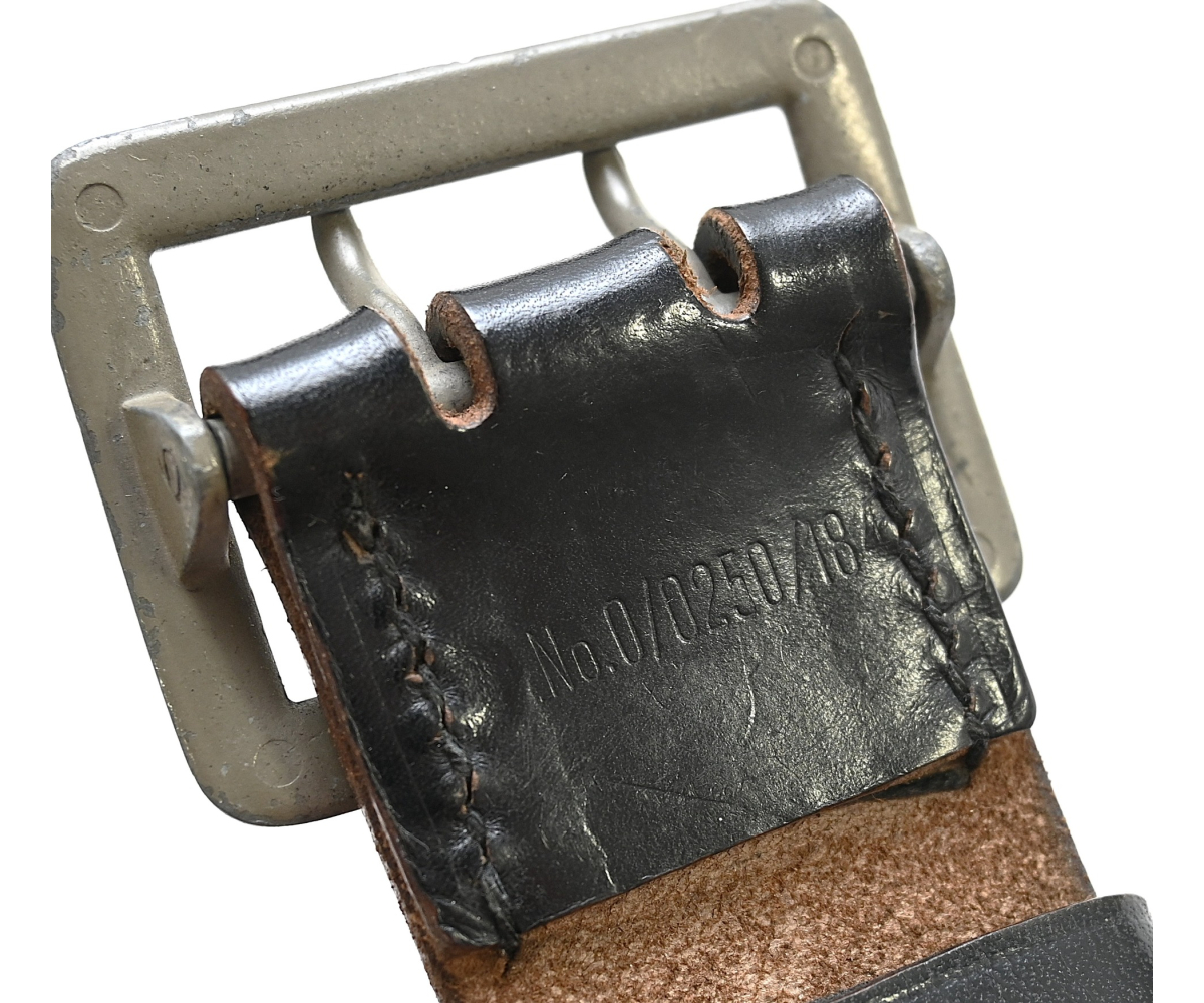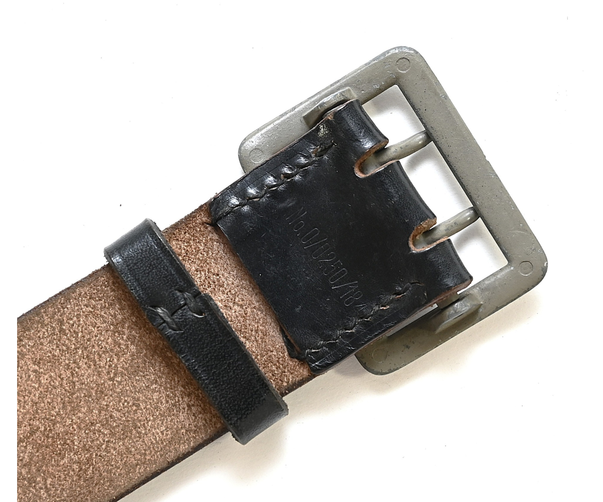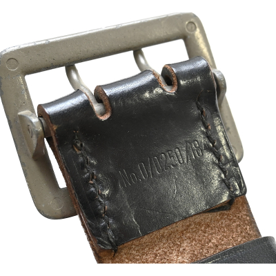 The belt shows overall normal signs of wear. The leather is supple and solid. No damages. It's nicely marked 'RBNo.0/0250/1841'. The belt comes with the matching belt loop. The length of the belt is approx 115cms.