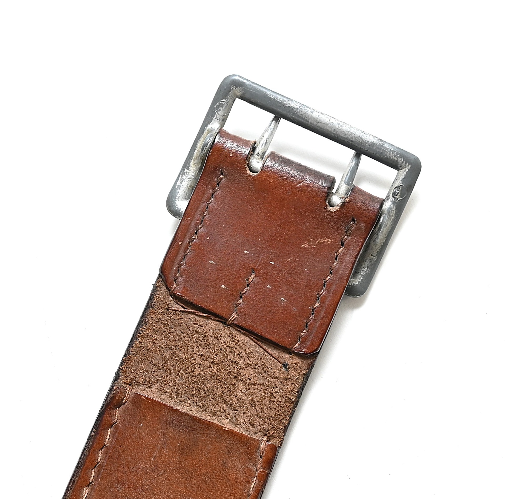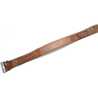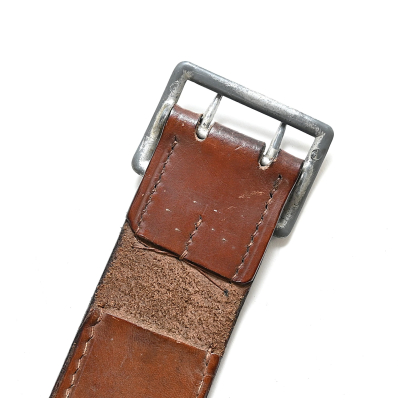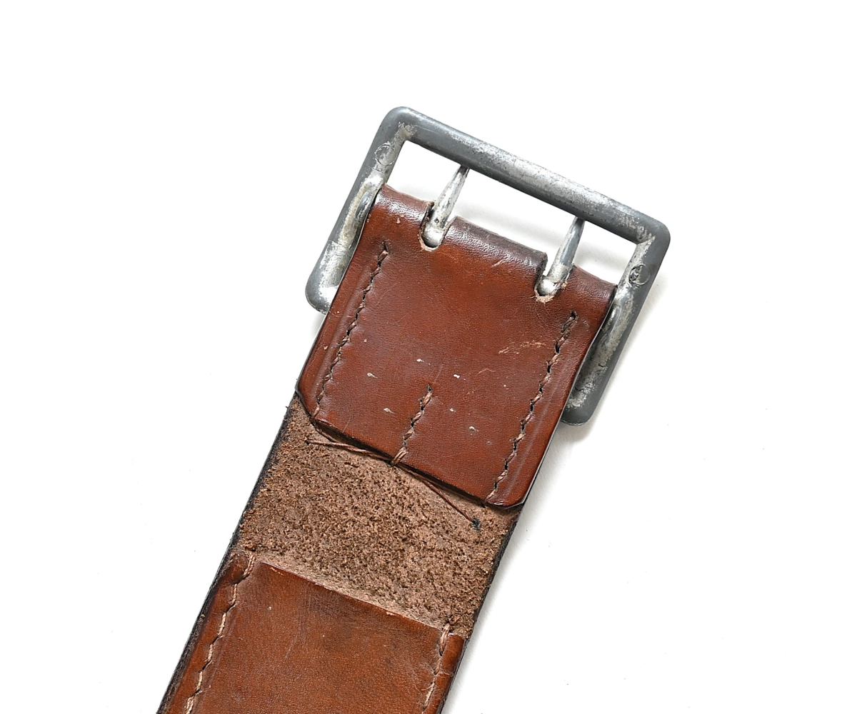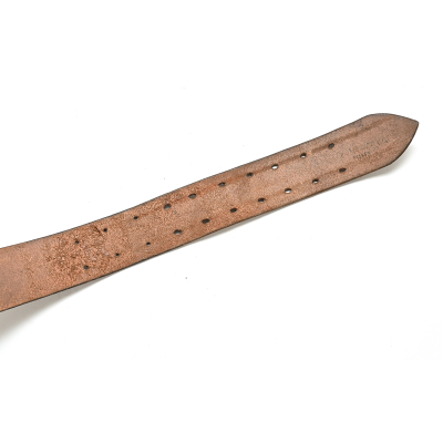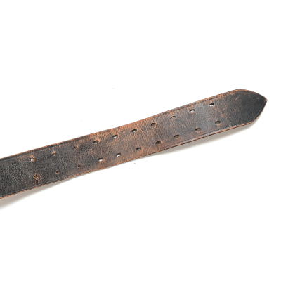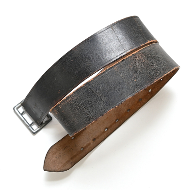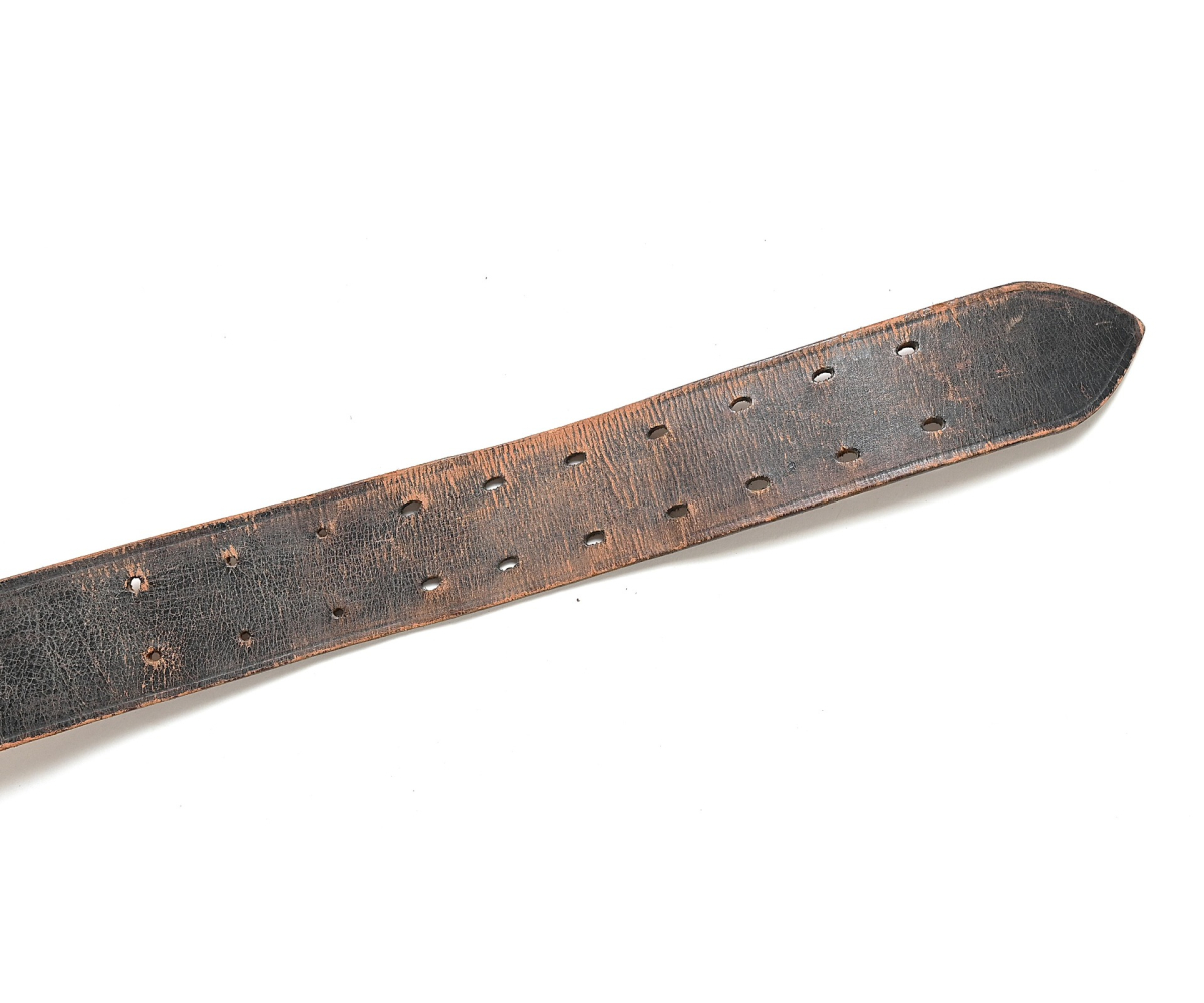The belt shows overall normal signs of wear. The leather is supple and solid. Its named near the tip, but too vague to read.