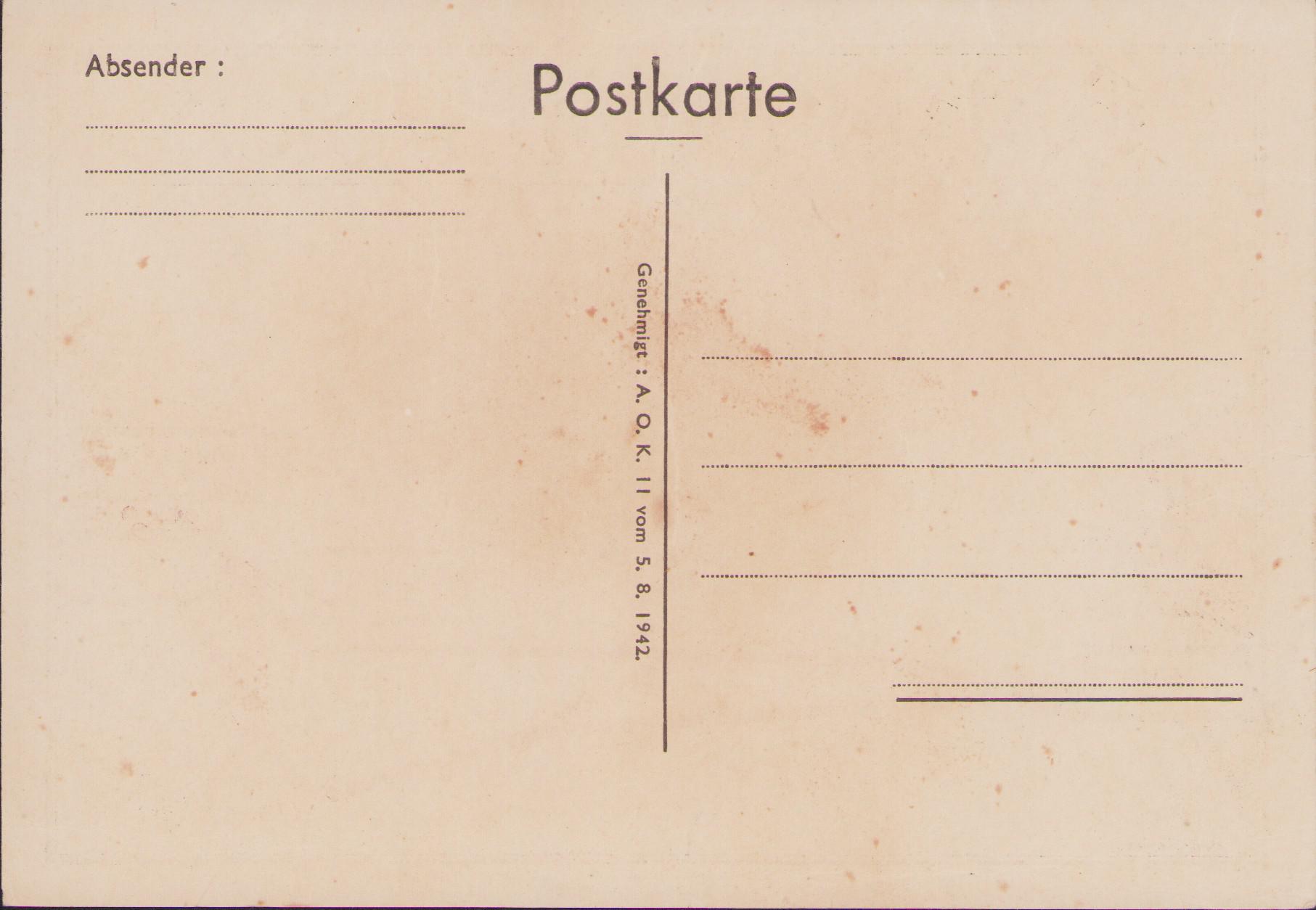 The postcard shows overall normal signs of storage wear. Issued in the year 1942.
