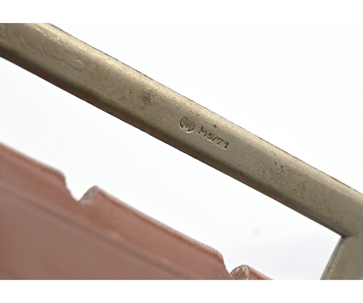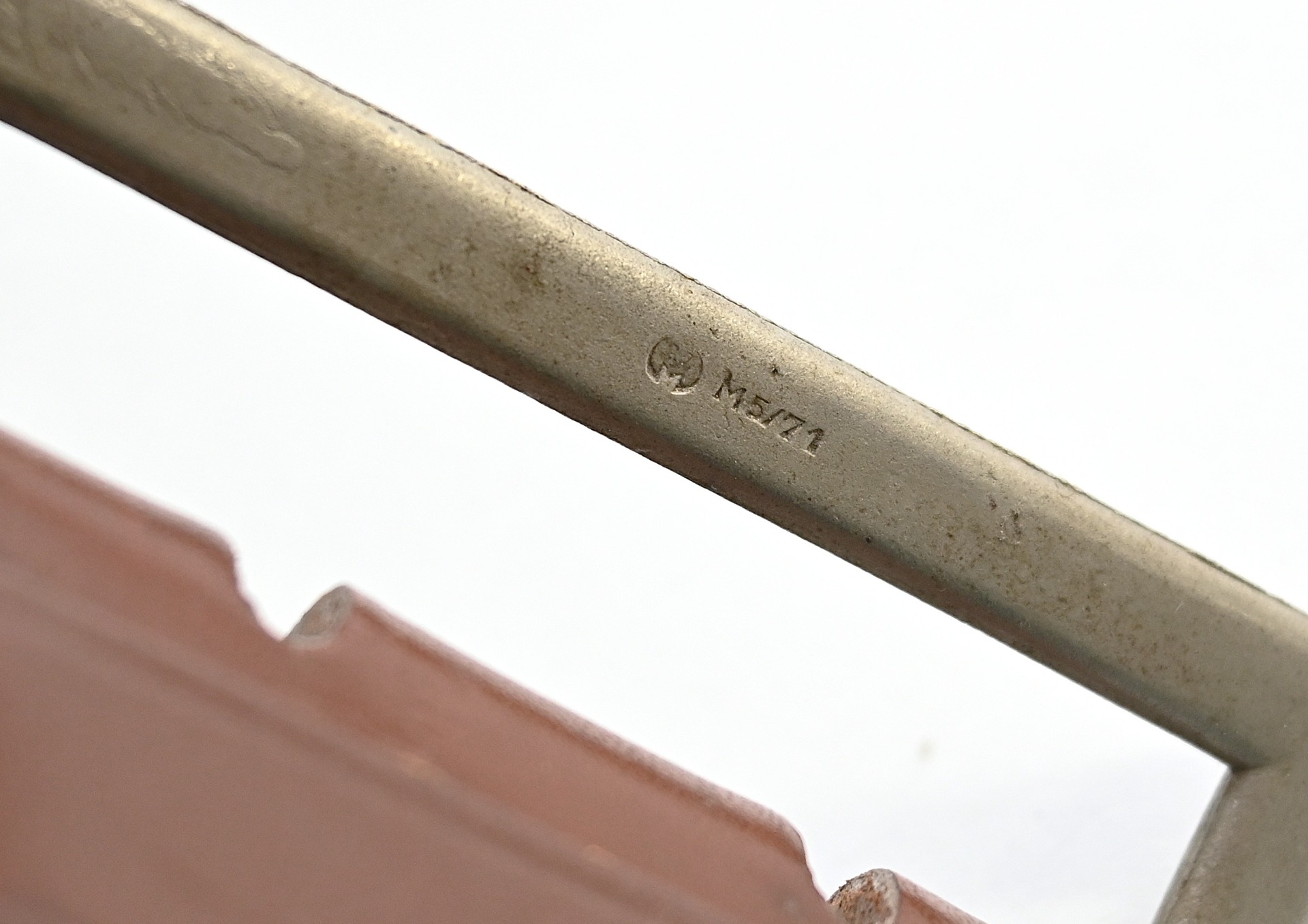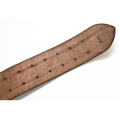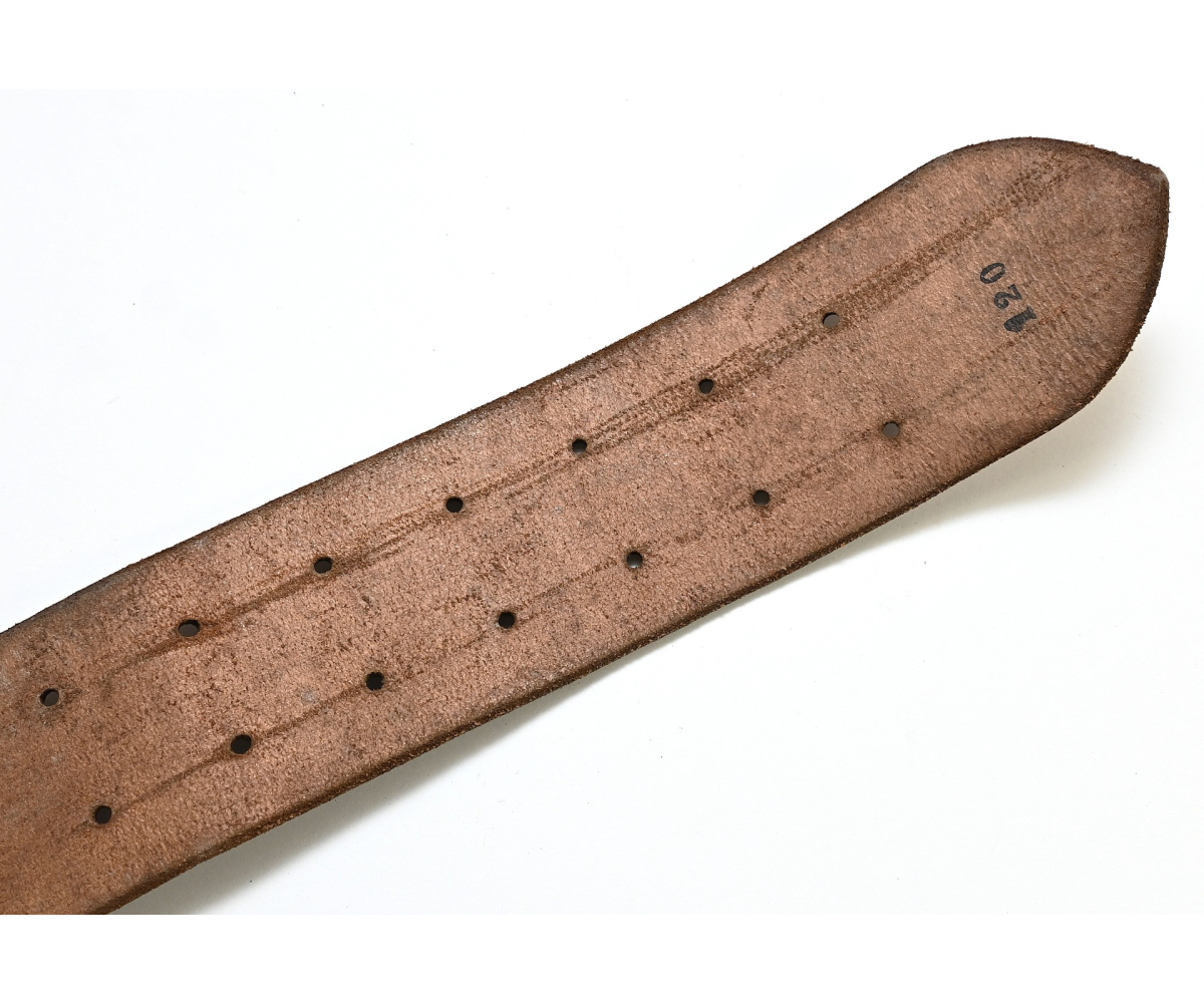 Teh belt shows overall normal signs of wear. The leather is supple and solid. It's nicely marked 'Croupon RZM L2/600/37'. The buckle is also marked with 'RZM M5/71'.