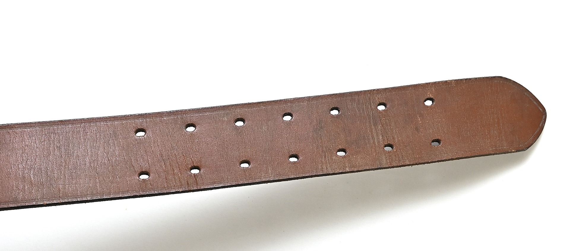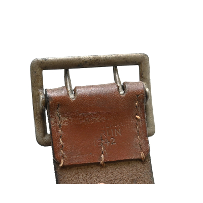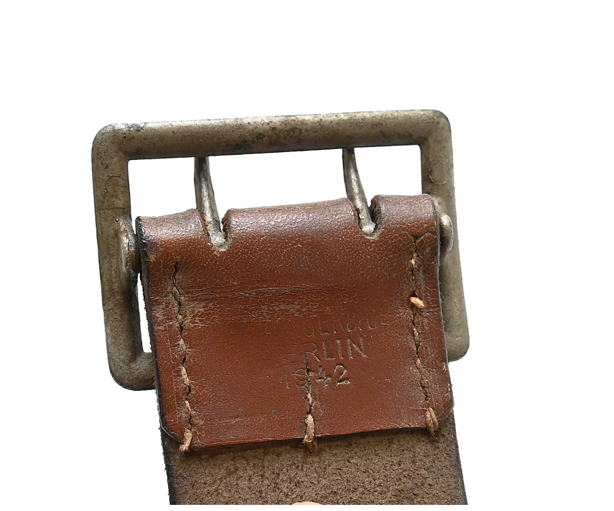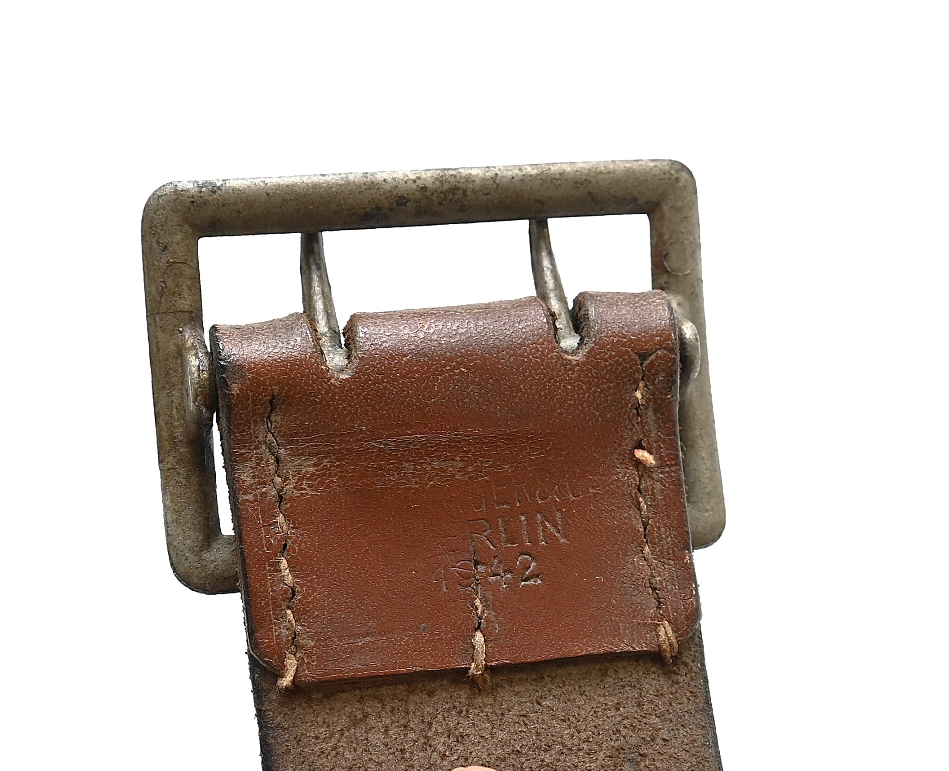 The belt shows overall normal signs of wear. The leather is supple and solid. Marked by the maker Springer & Co from Berlin and dated 1942.