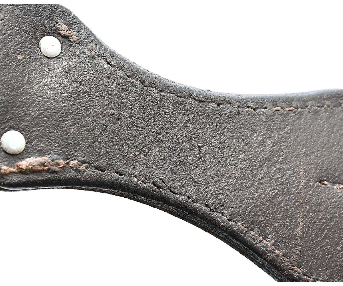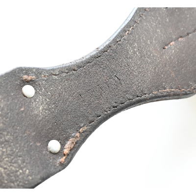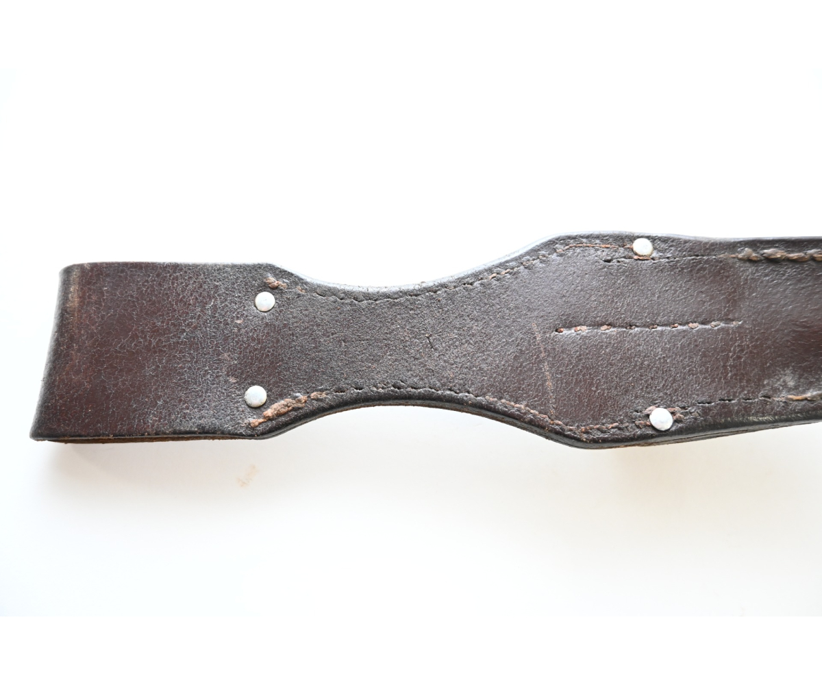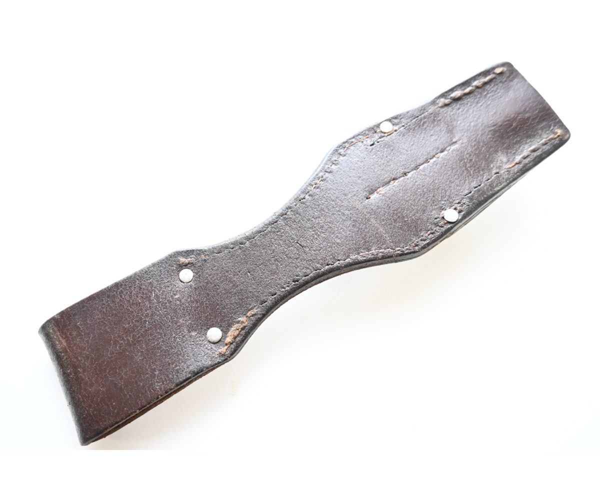 The frog or 'Seitengewehrtasche' shows overall normal signs of wear. The leather is supple and solid, but of course should still be handled with care. It's marked by the maker on the back, but too vague to photograph. There is also a vague 'LBA' marking which stands for Luftwaffe Bekleidungsamt.