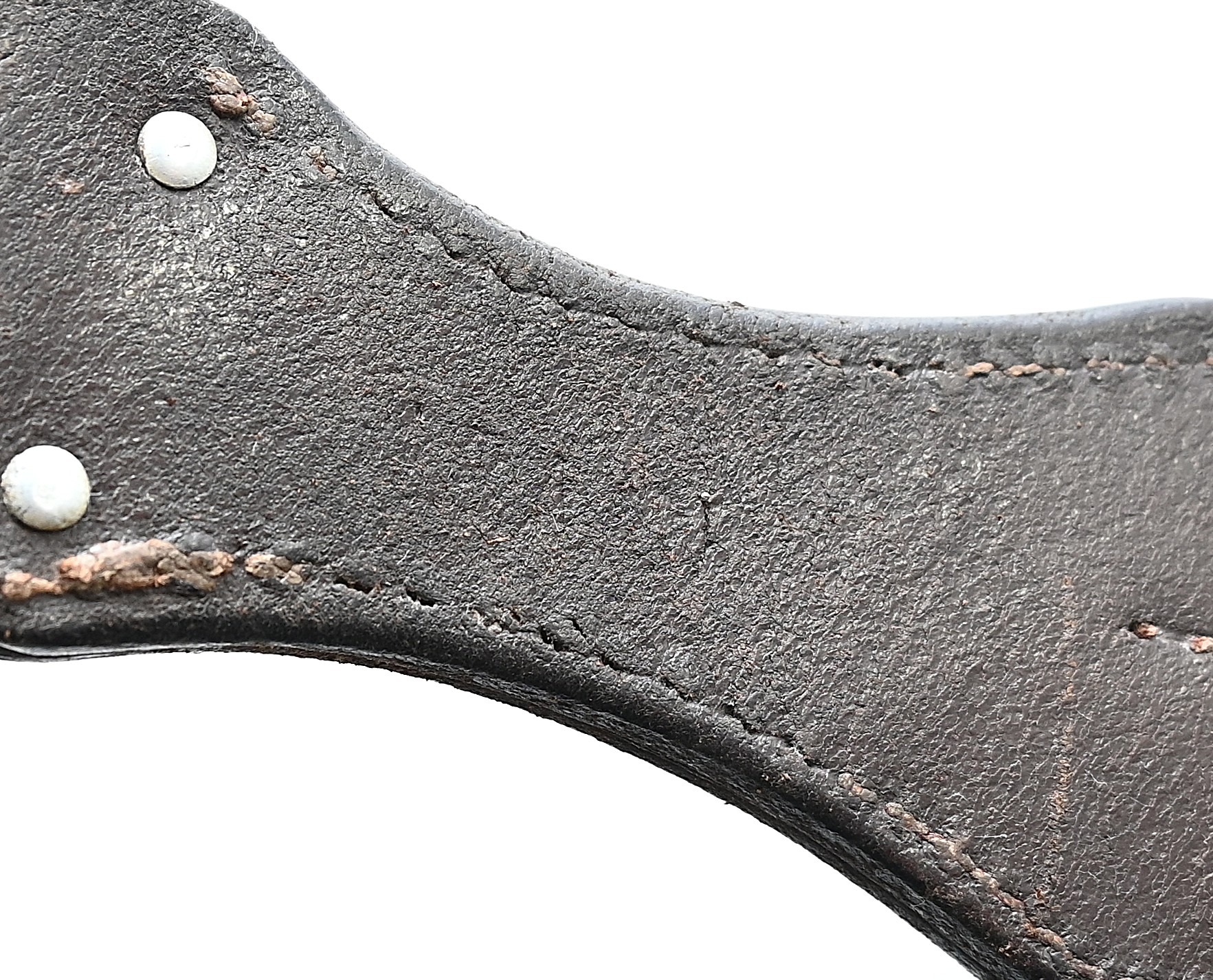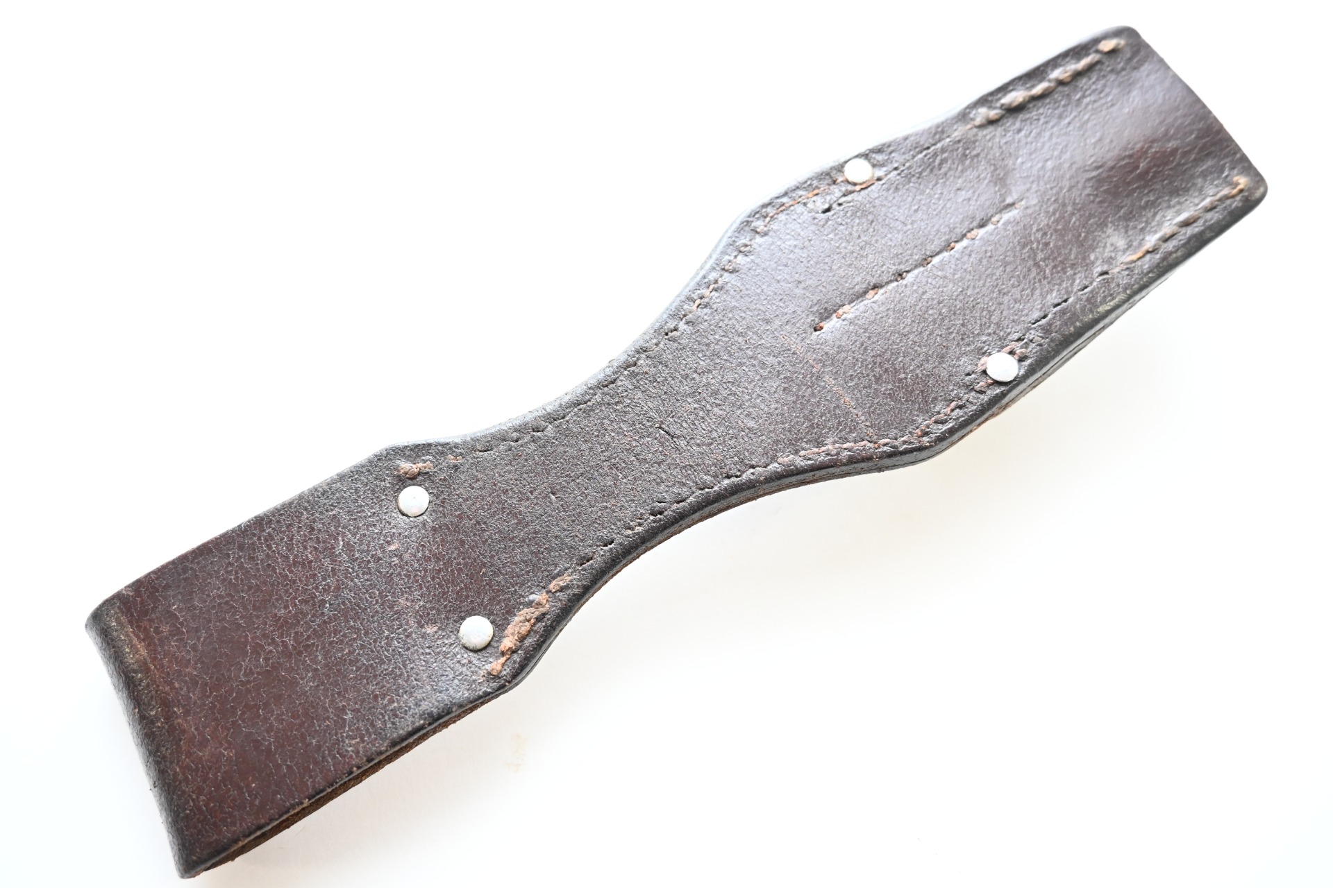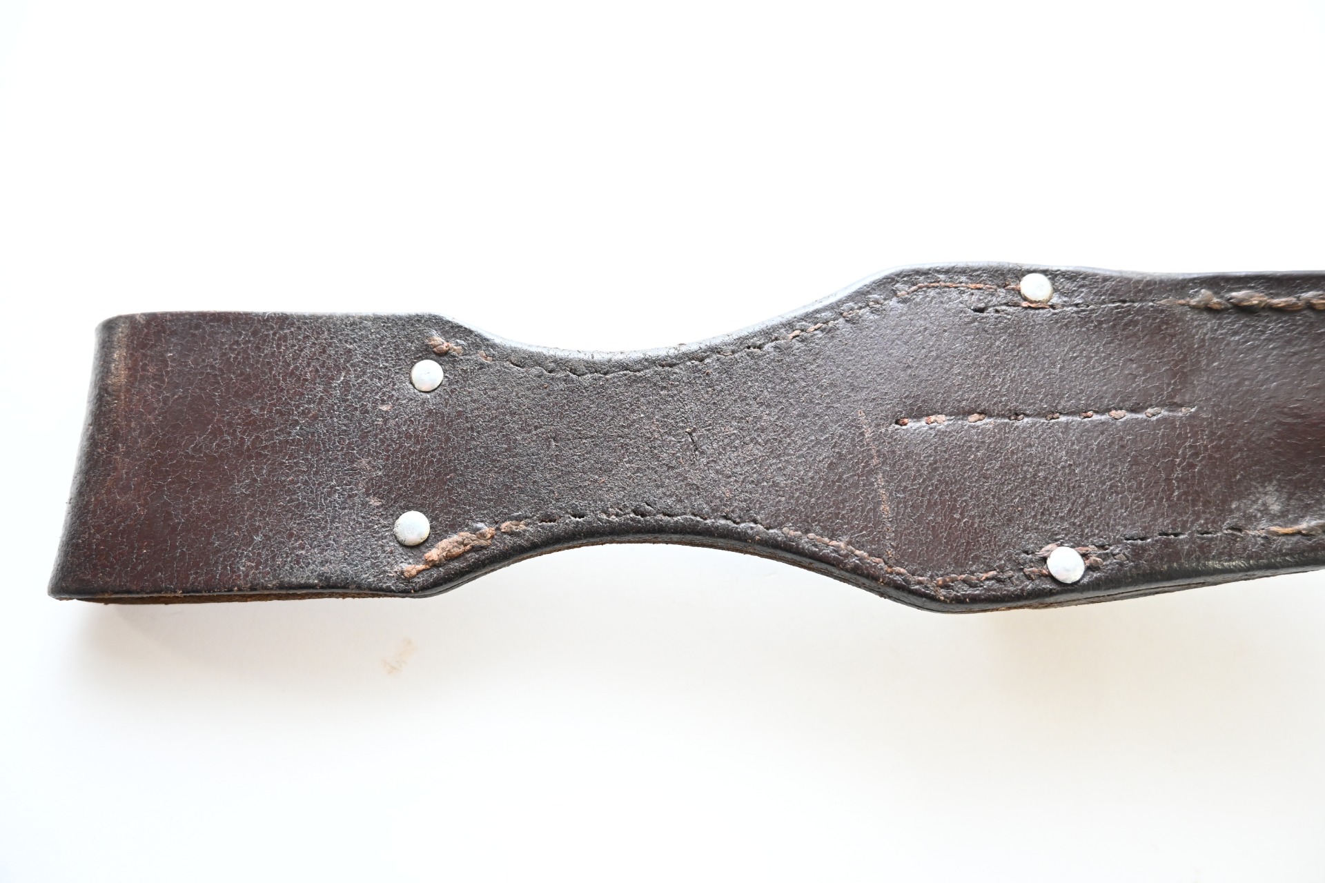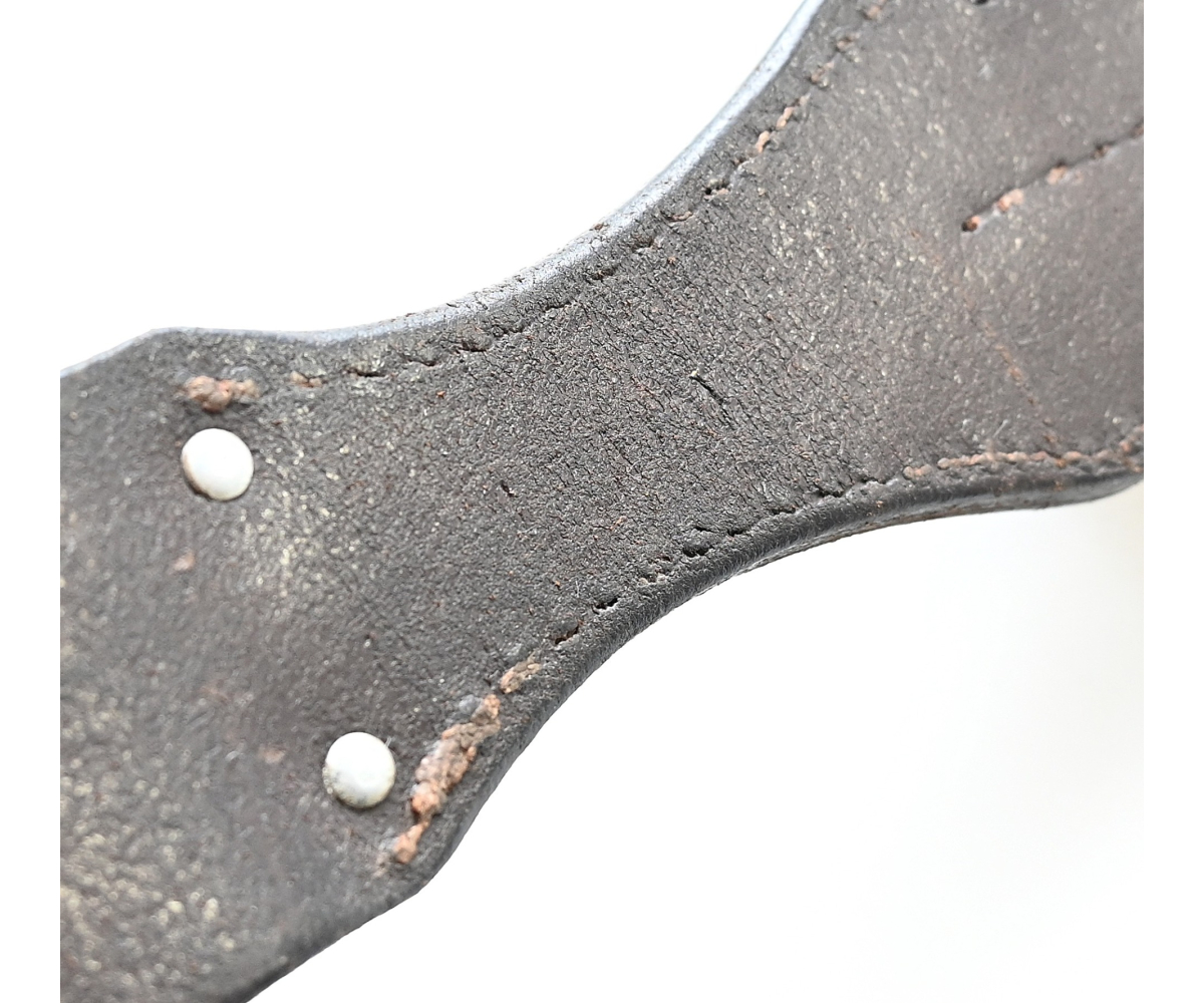 The frog or 'Seitengewehrtasche' shows overall normal signs of wear. The leather is supple and solid, but of course should still be handled with care. It's marked by the maker on the back, but too vague to photograph. There is also a vague 'LBA' marking which stands for Luftwaffe Bekleidungsamt.