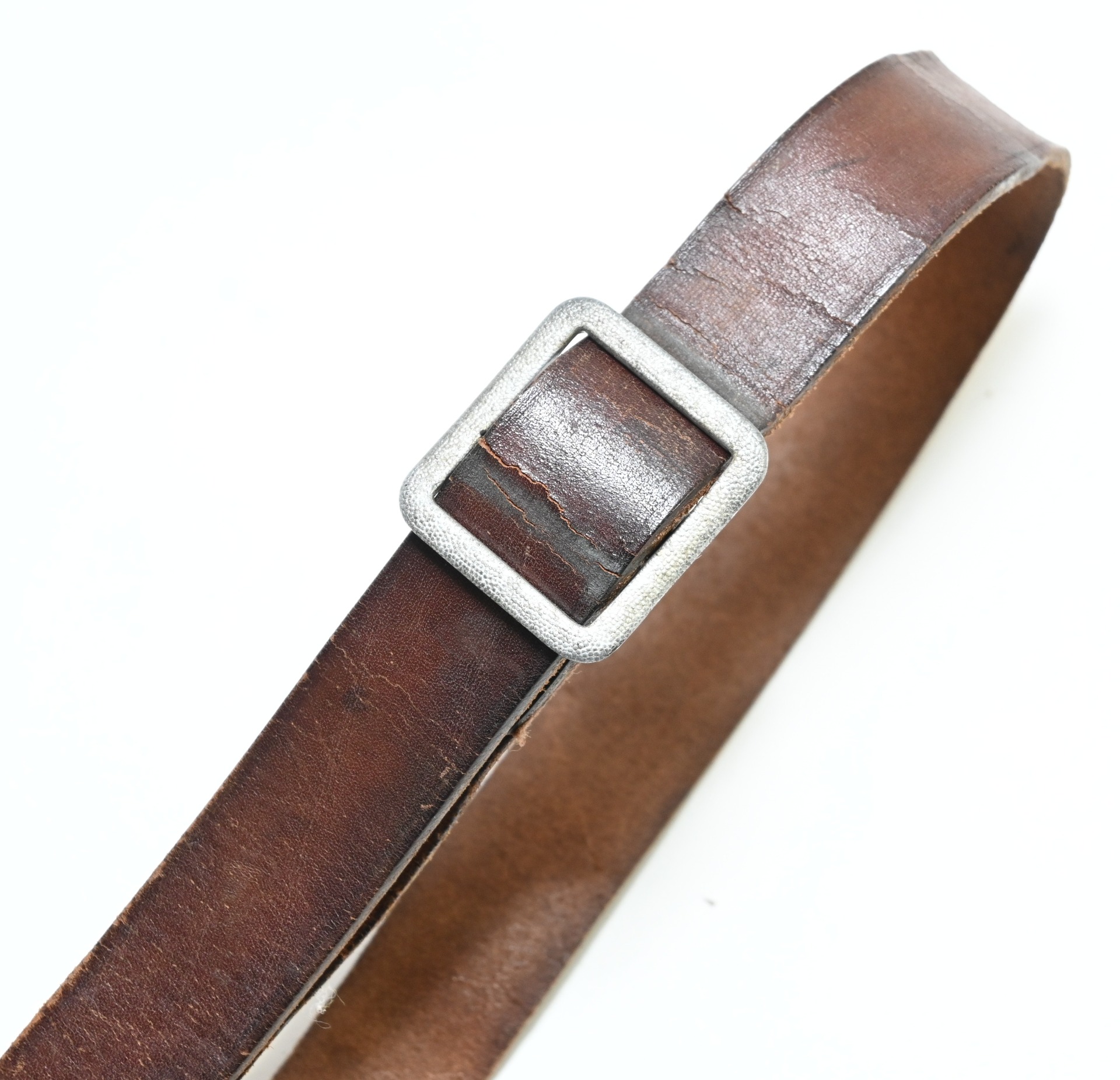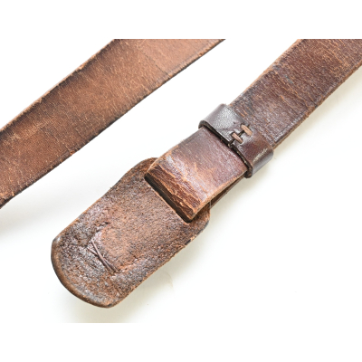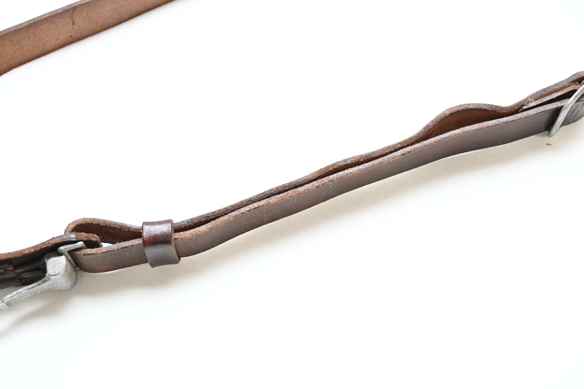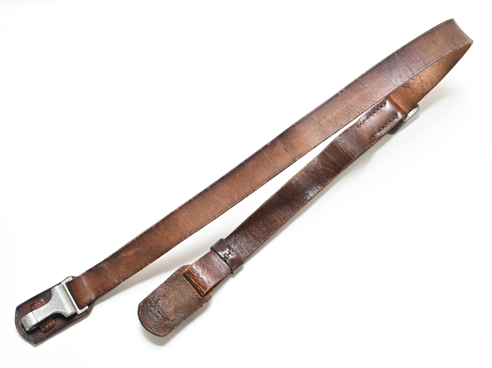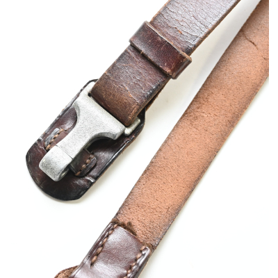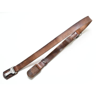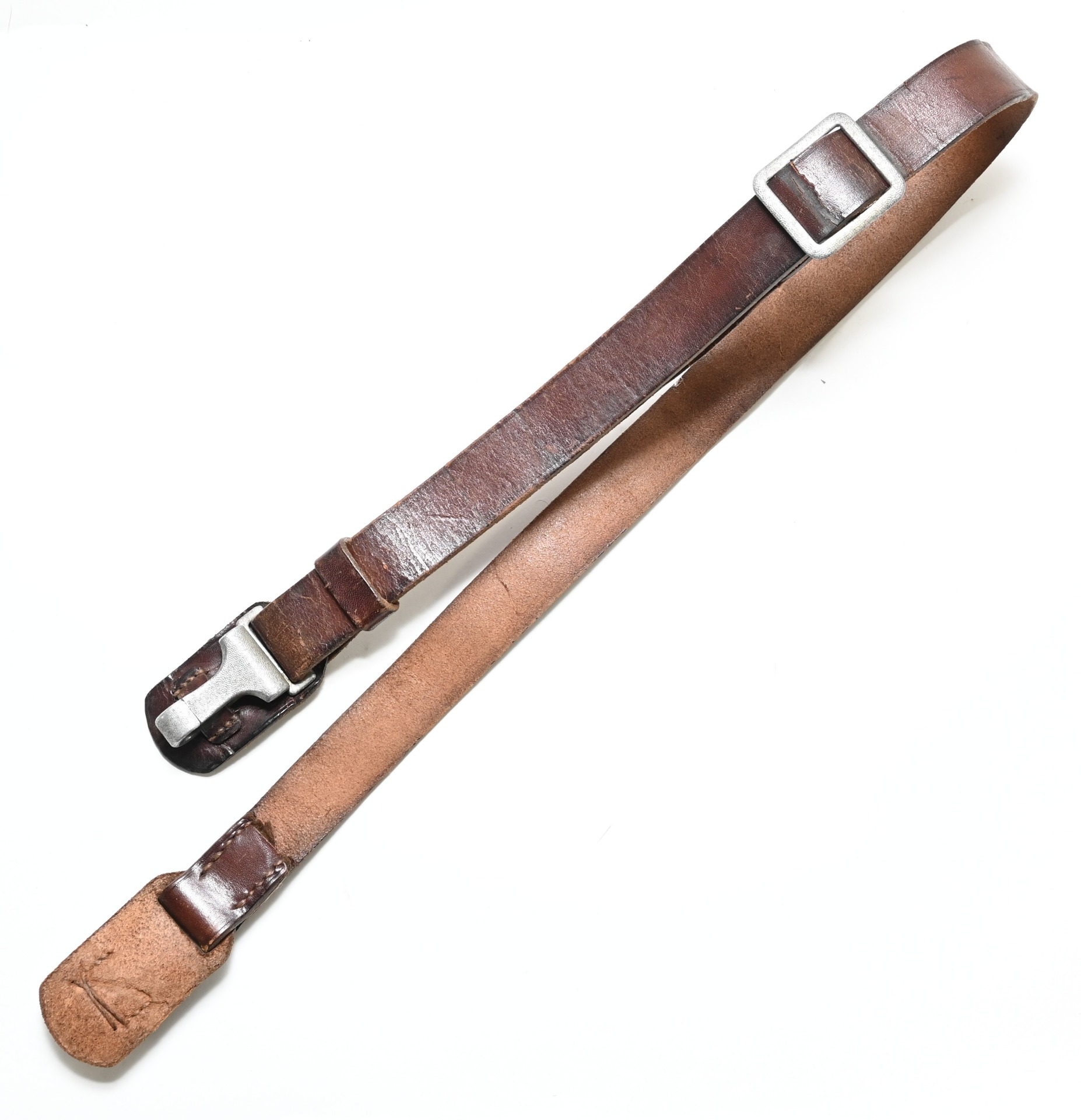 The strap shows normal signs of wear. The leather is supple and solid. The leather is not visible marked, but the hardware is marked with 'A' which stands for Assmann. The length is approx 95cms (fully extended).