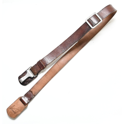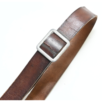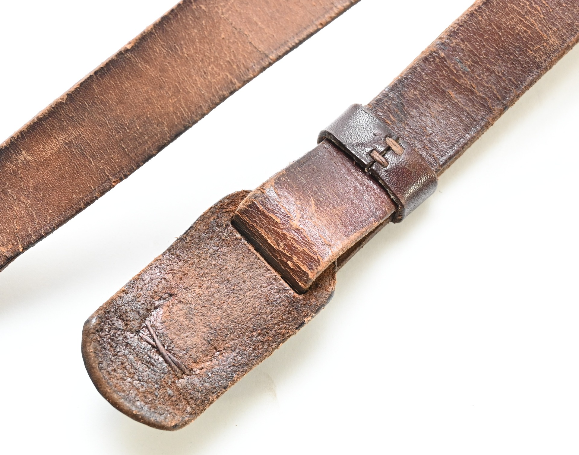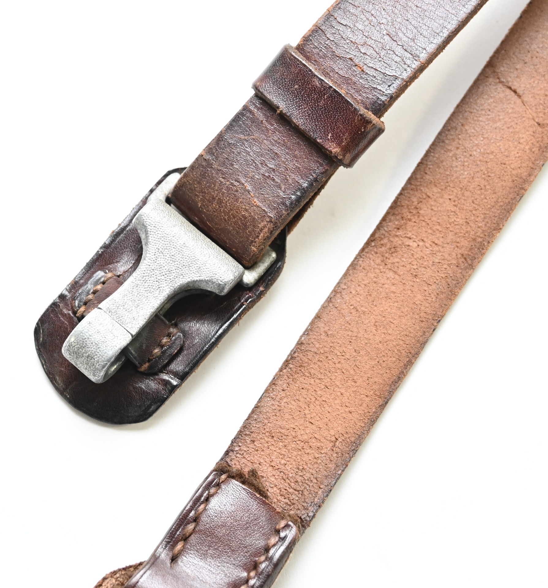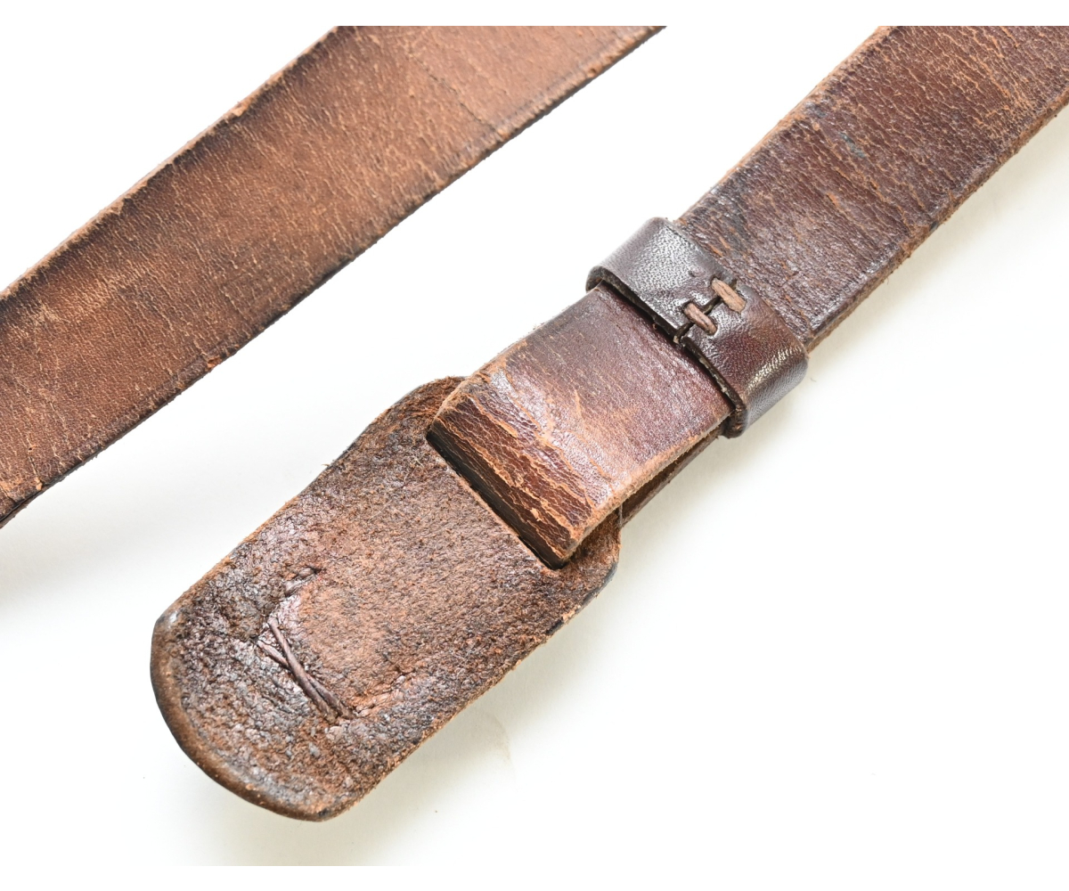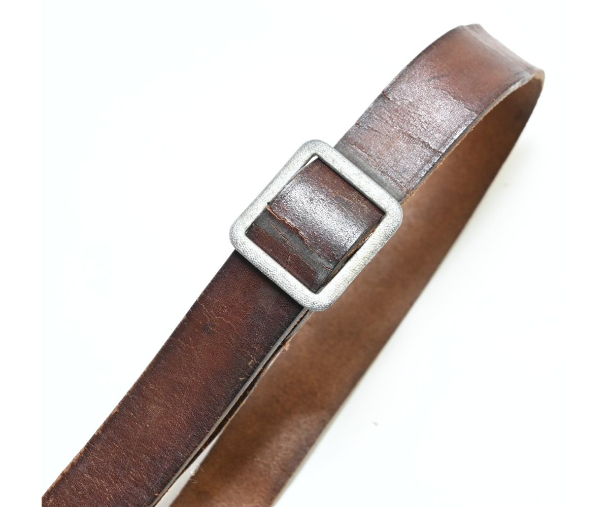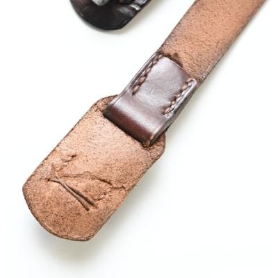 The strap shows normal signs of wear. The leather is supple and solid. The leather is not visible marked, but the hardware is marked with 'A' which stands for Assmann. The length is approx 95cms (fully extended).