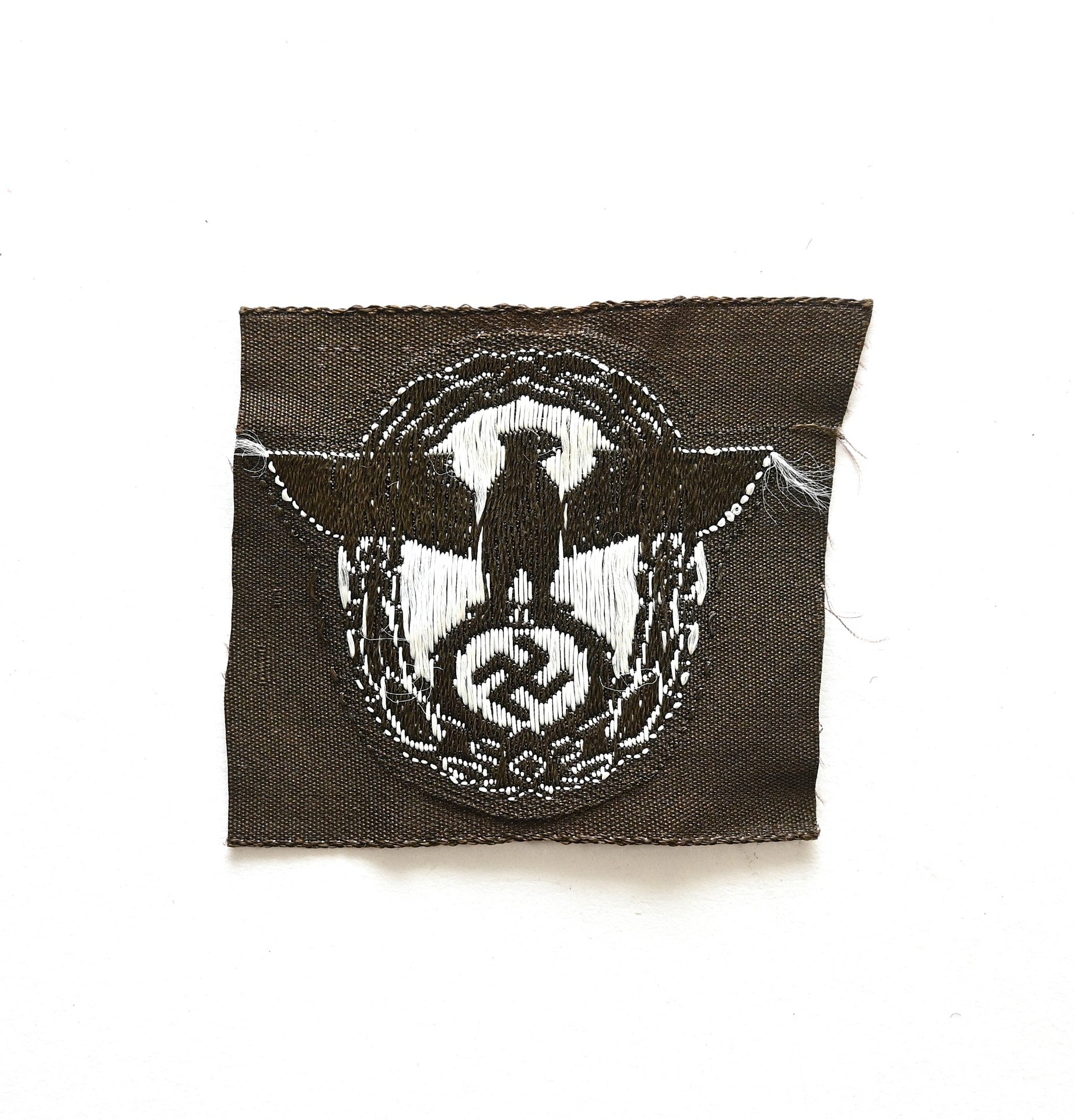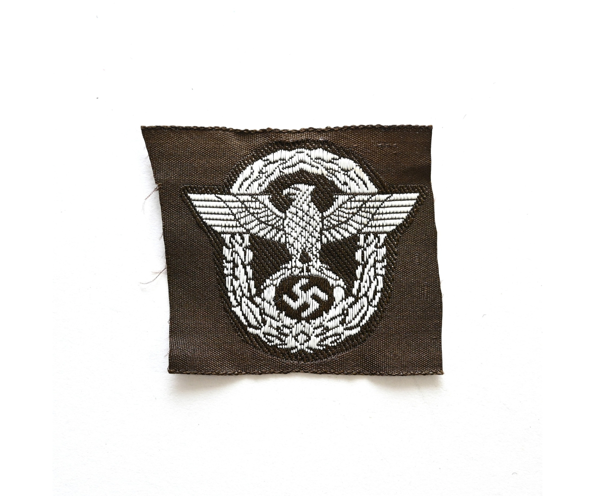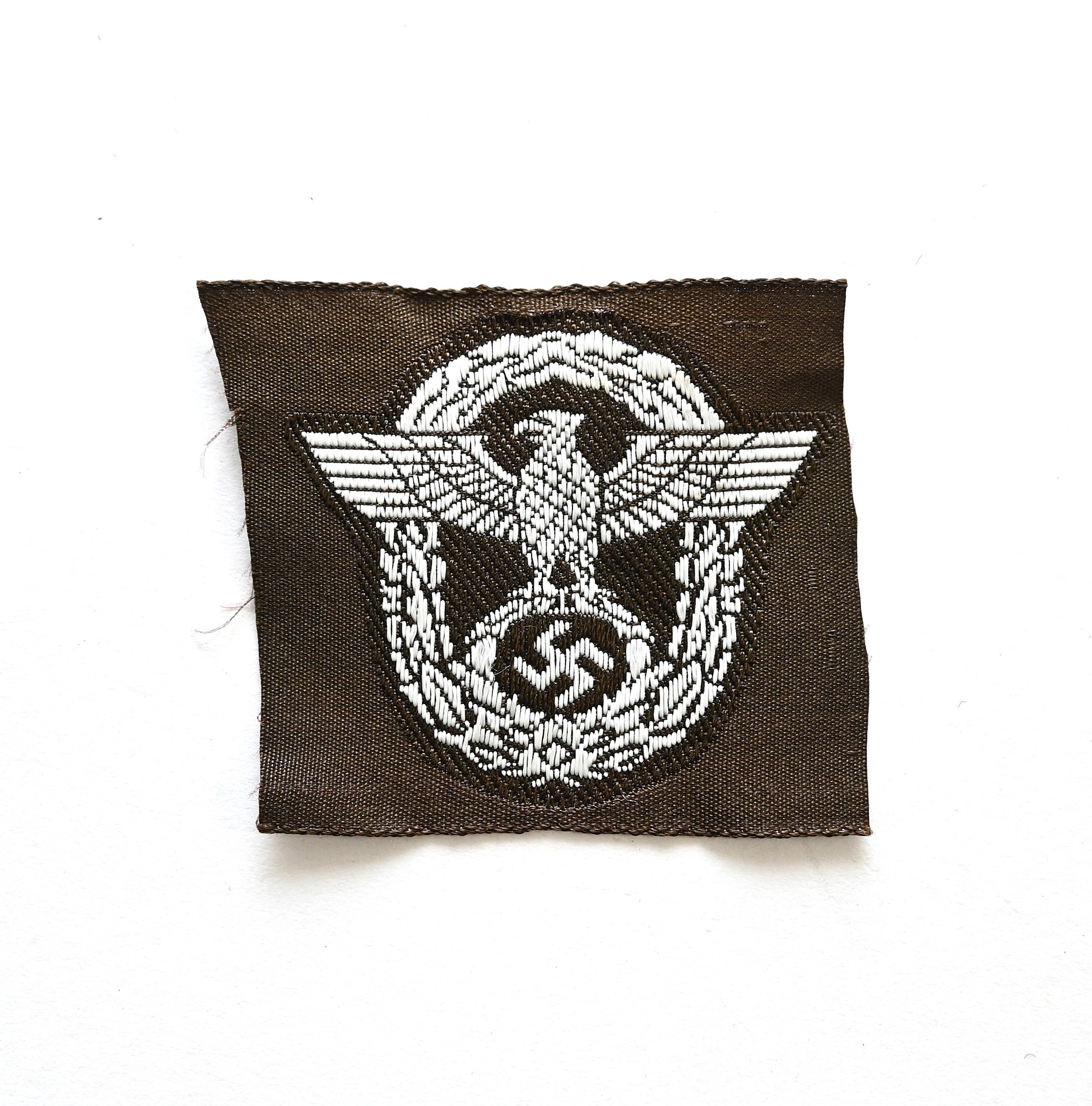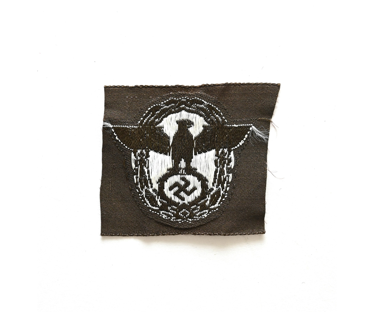 The eagle shows overall normal signs of storage wear. A bit harder to find variant executed on a dark brown linnen base. Nice piece to restore a Schiffchen or M43 cap.