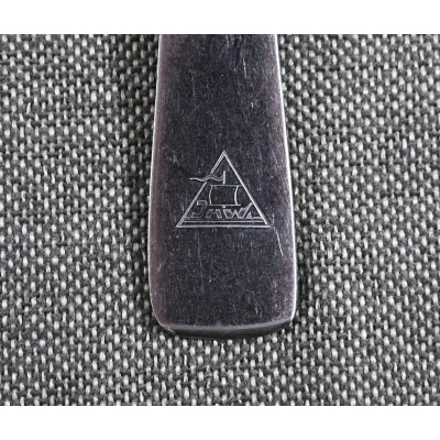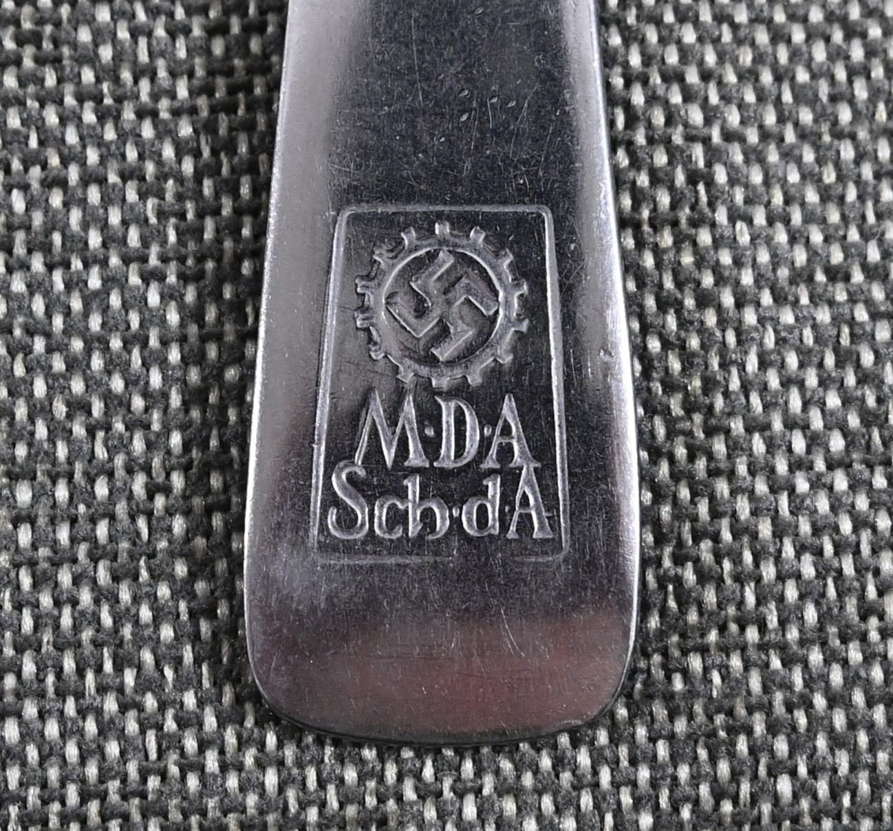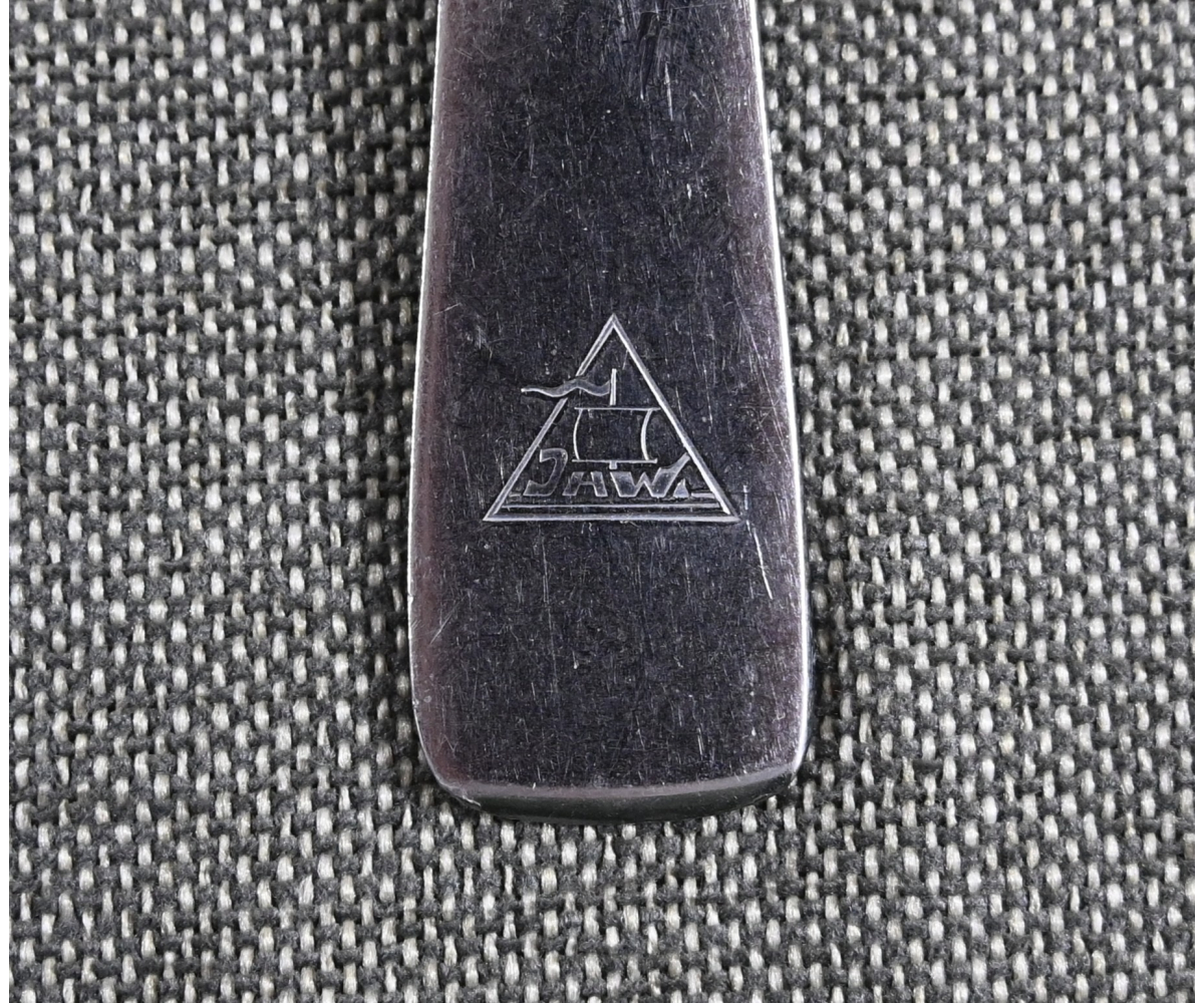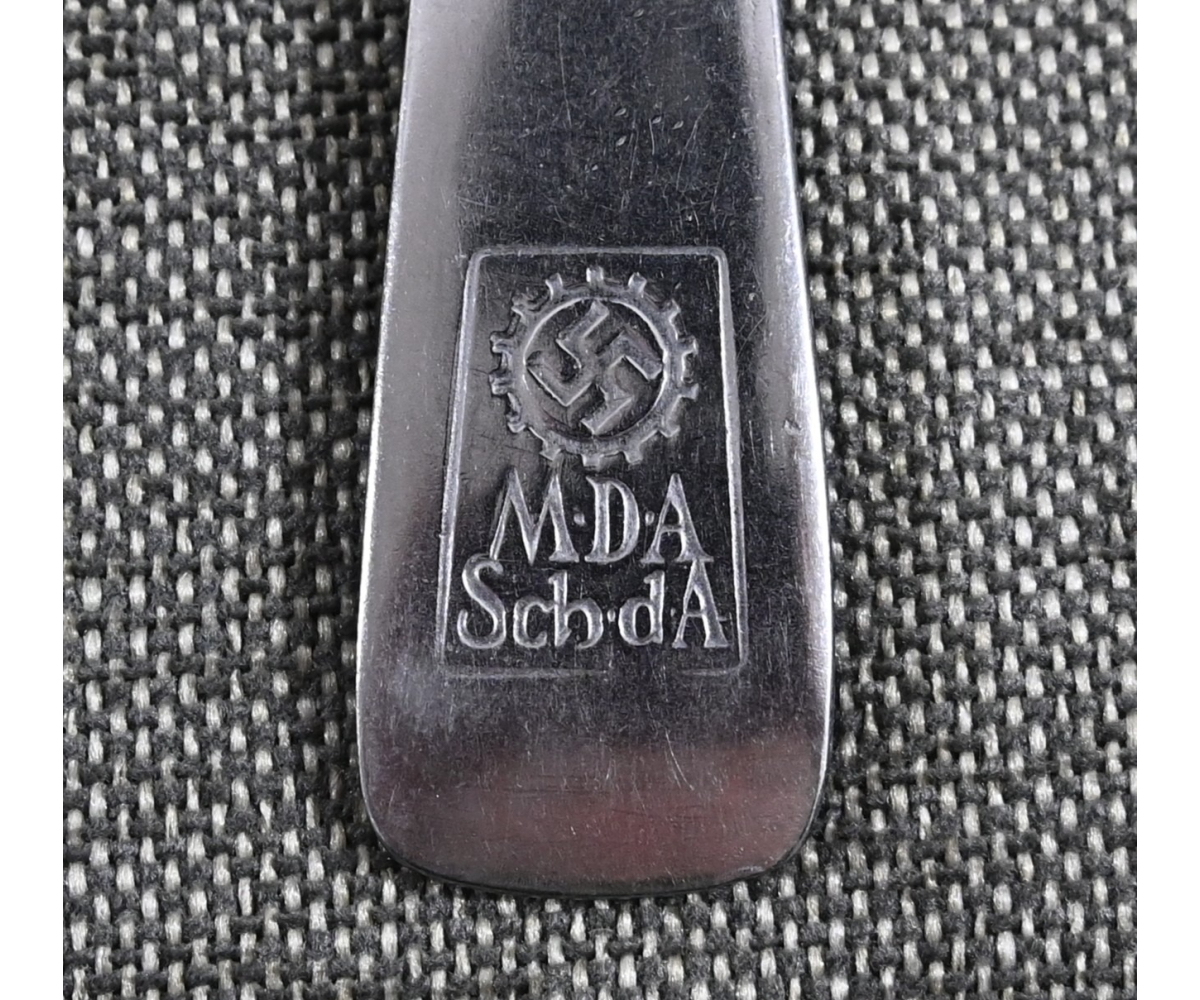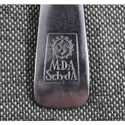 The fork shows overall normal signs of wear. Nicely marked with the DAF Logo, 'M.D.A.Sch.d.A. (Modell des Amtes, Schönheit der Arbeit)' and 'Rostfrei'. On the front there is a 'Jhw' company logo.