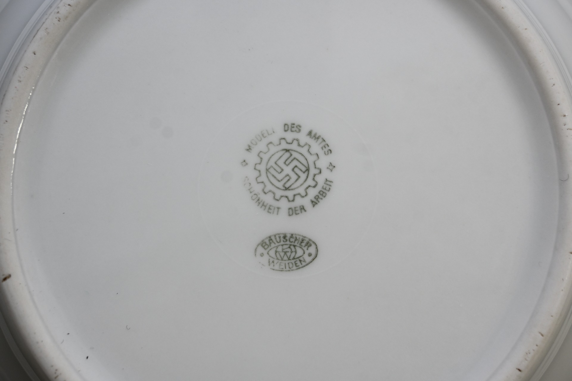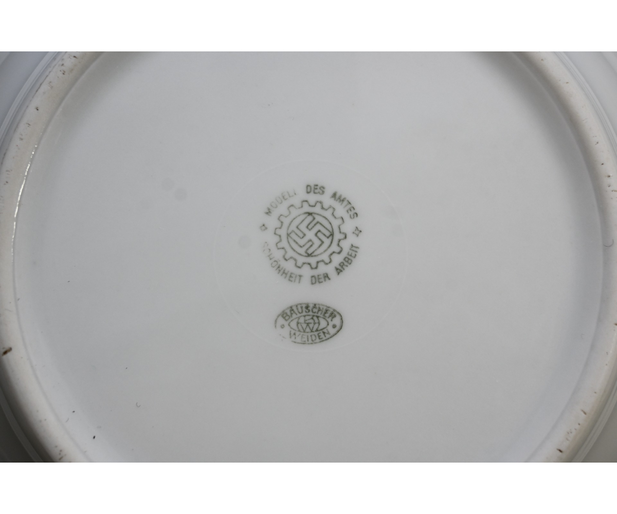 The plate shows overall normal signs of wear. It's nicely marked on the bottom with the 'Modell des Amtes' logo and the maker 'Bauscher'.