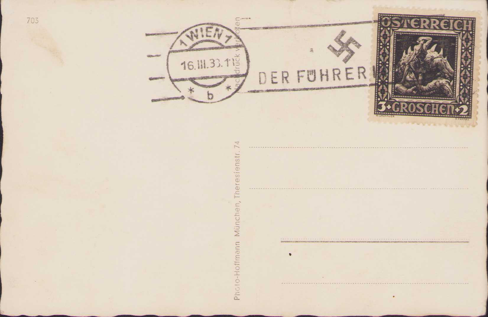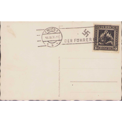 The postcard shows overall normal signs of wear. On the back an inkstamp from Vienna. Dated 16 March 1938.