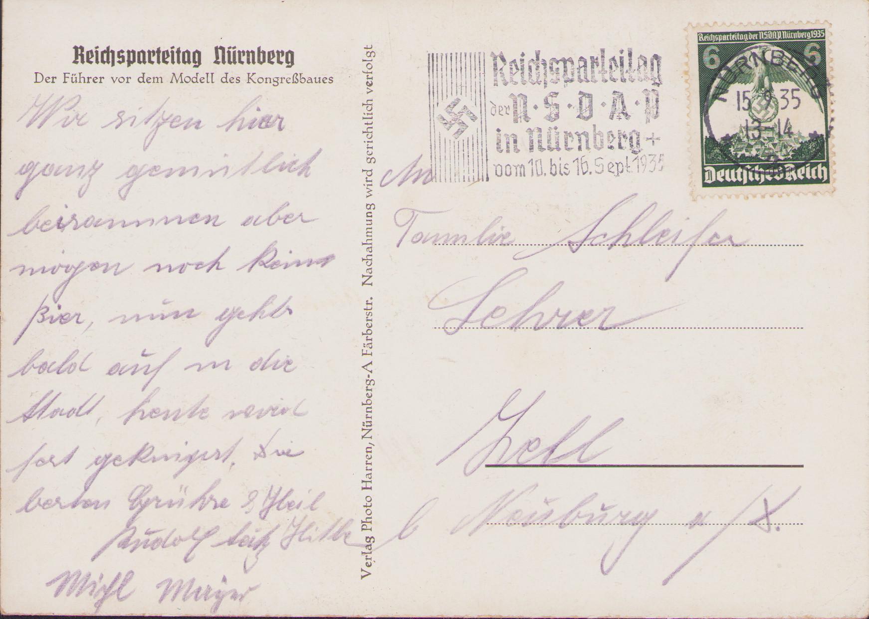 Nice Reichsparteitag related postcard in used, but very good condition.
