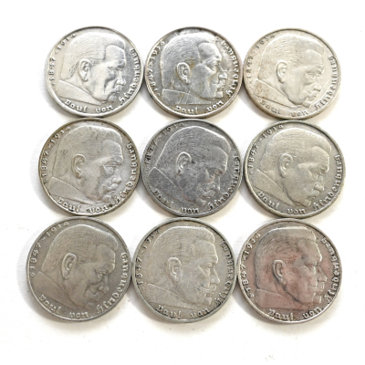 All 9 coins are dated 1938 and in excellent (similar) condition.