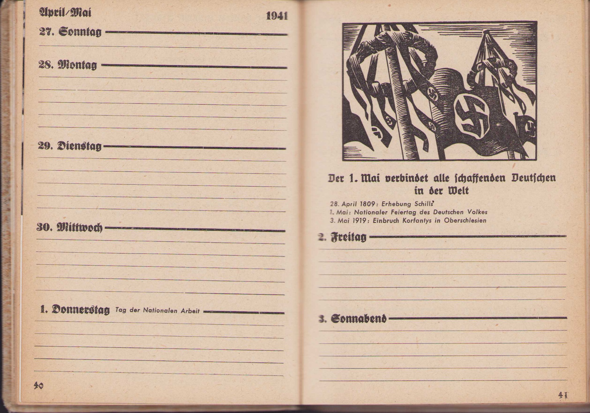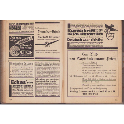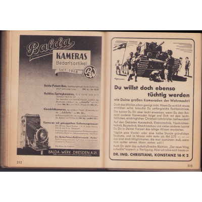 The book shows overall signs of storage wear. It's solid and complete with all pages. There are some dozens pages filled in. In the back there are a couple of pages with advertisements (one is cut-out)