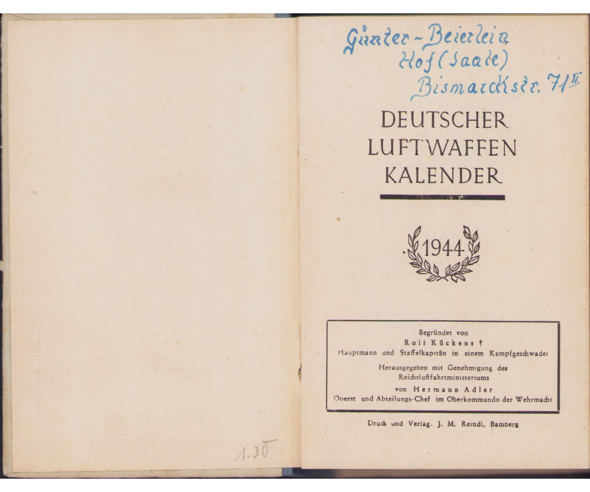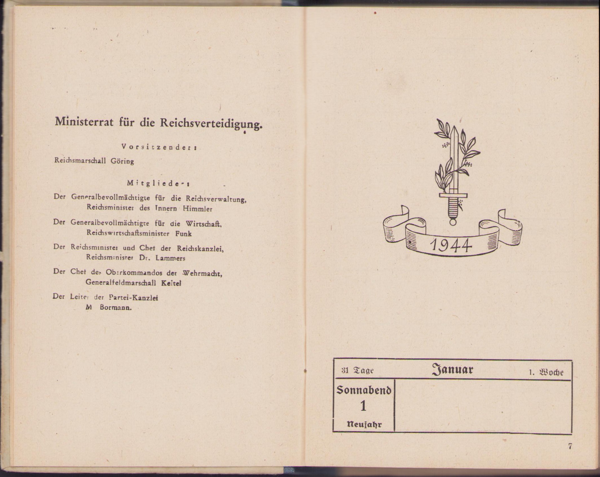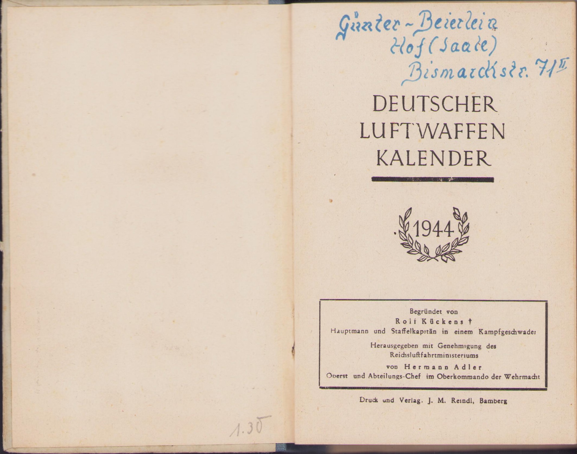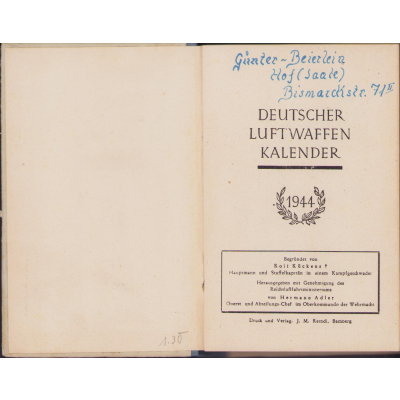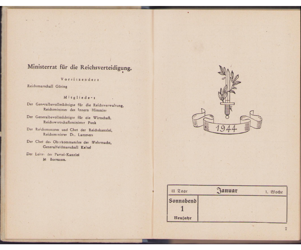 Nice Luftwaffenkalender from 1944 in near mint and therefor very good condition.