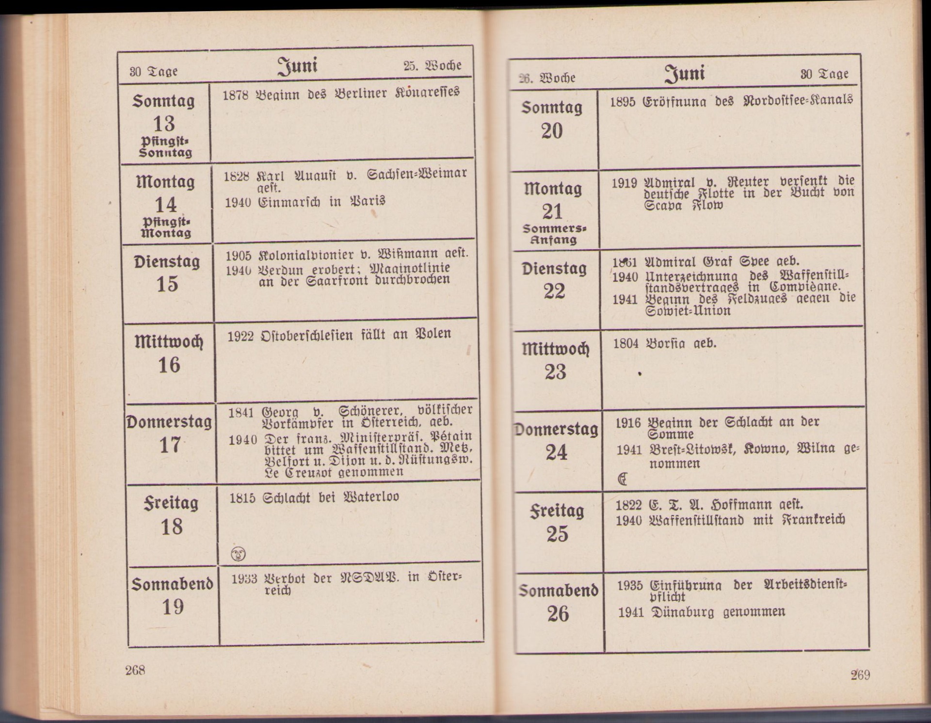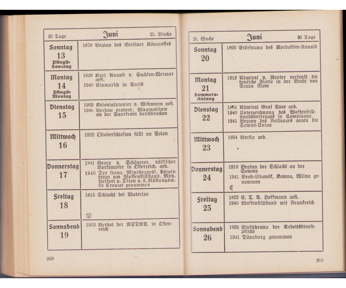 The pocket size kalender shows overall minor signs of use. It's solid and complete with all 304 pages plus a lot of sales advertisements.