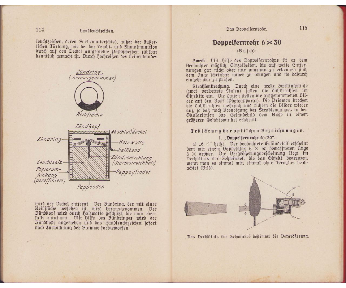 The booklet shows overall normal signs of wear. It's solid and complete with all 134 pages. Contains dozens of illustrations and interesting information on companylevel. Printed in 1940.
