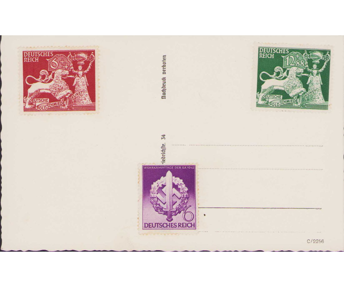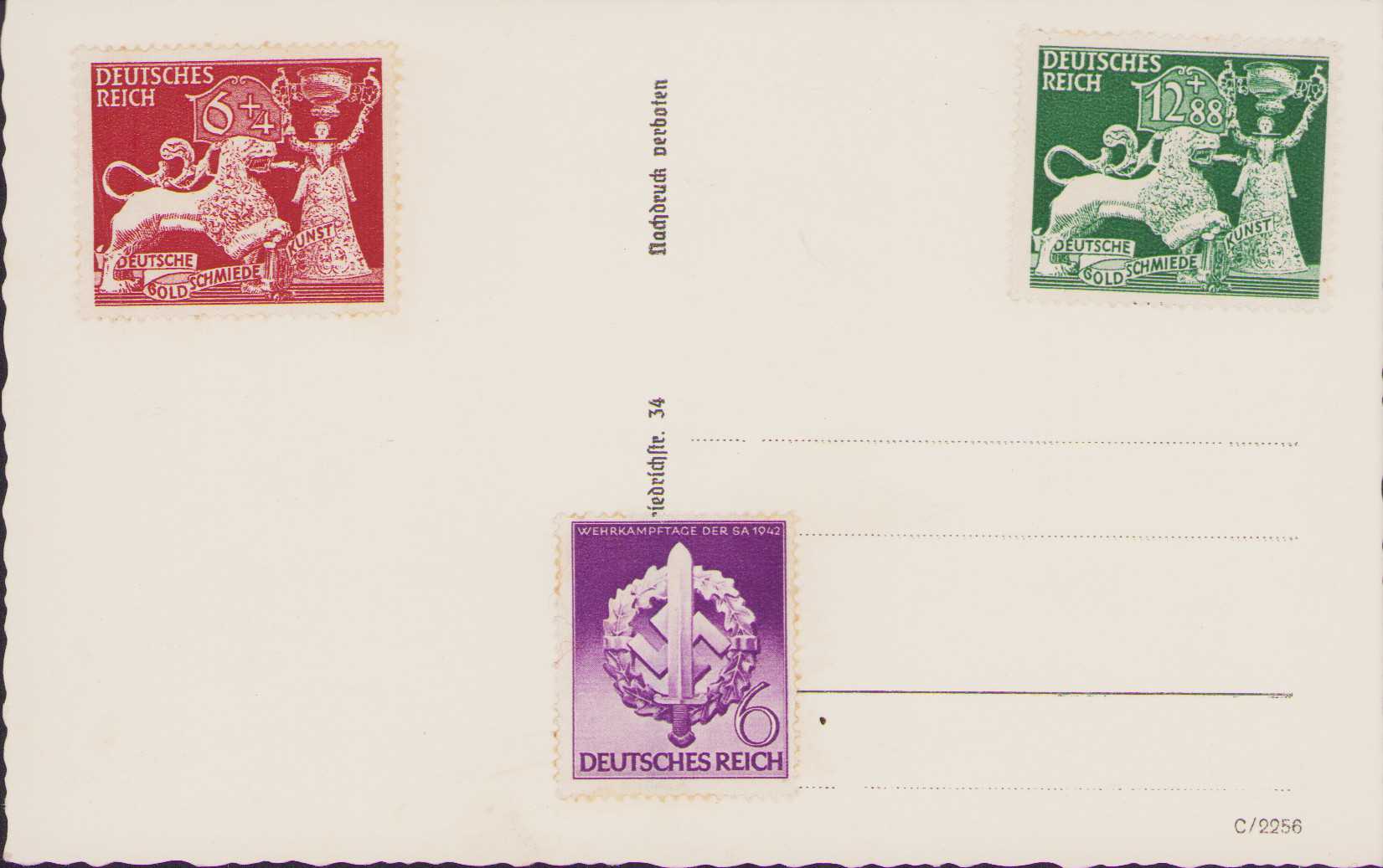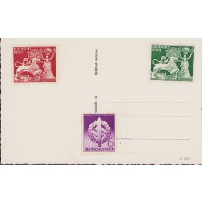 The postcard shows overall normal signs of storage wear. Got 3 paper stamps on the back.