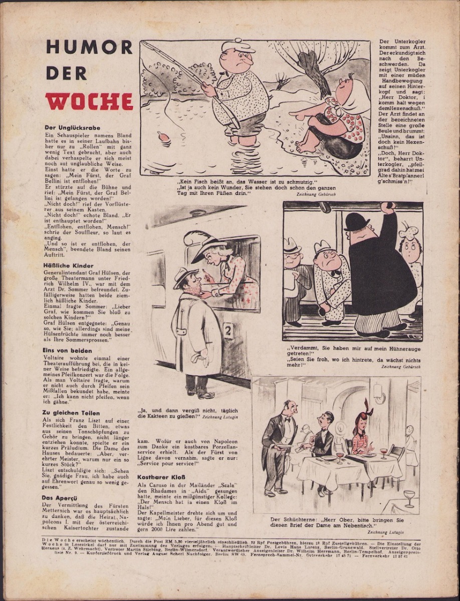 The magazine shows minor signs of wear. Complete with all pages (not every page has been scanned). Contains military photograph aswel as art, culture and daily life photographs. This is Heft 12, 22 Marz 1944.