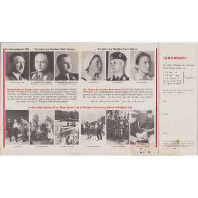 The flyer shows overall signs of storage wear. It was recently found with other DRK items in a DRK building during renovation. The leaflet shares information about the DRK to recruit new members. It's used as the application section was used.