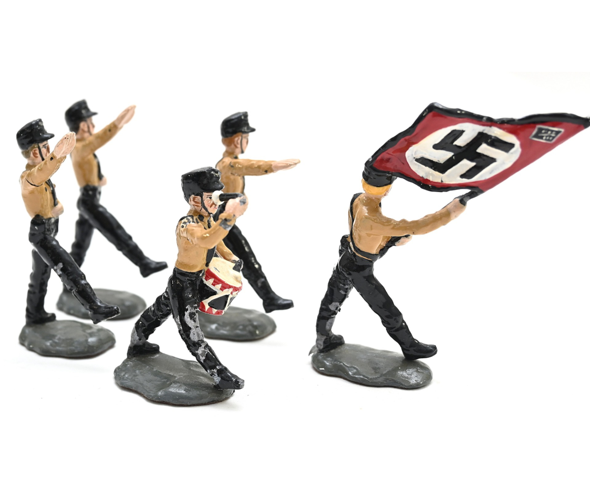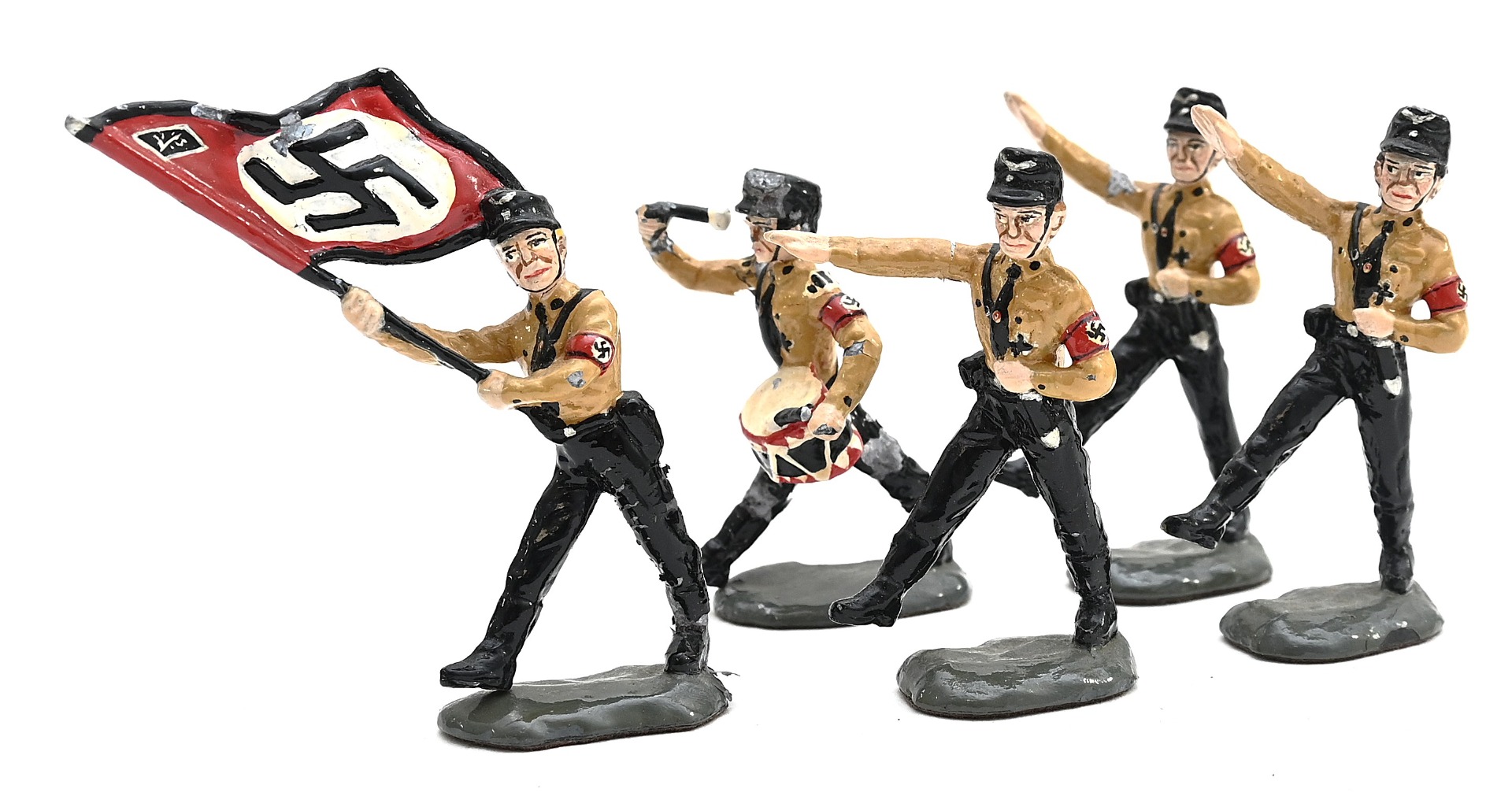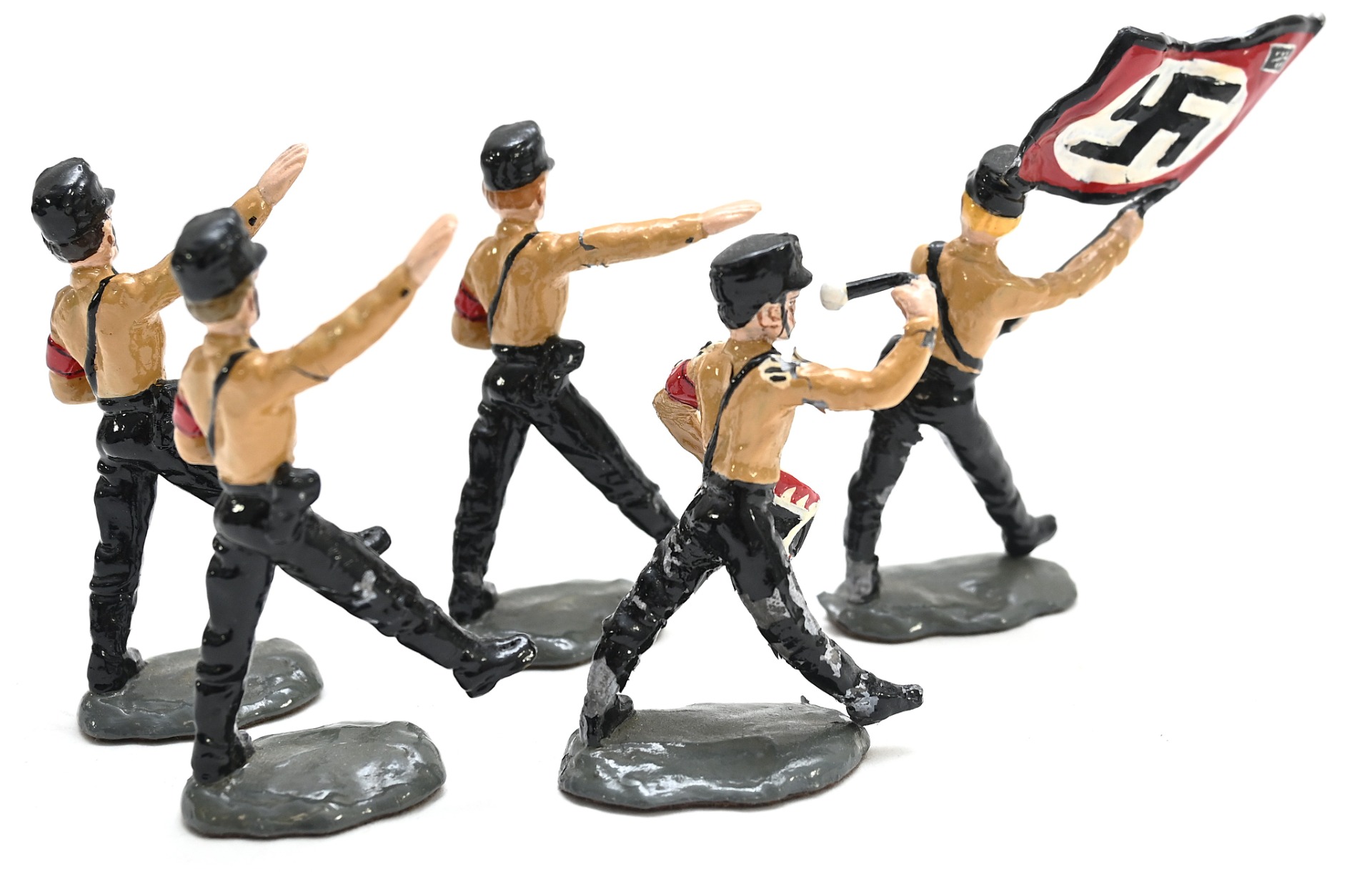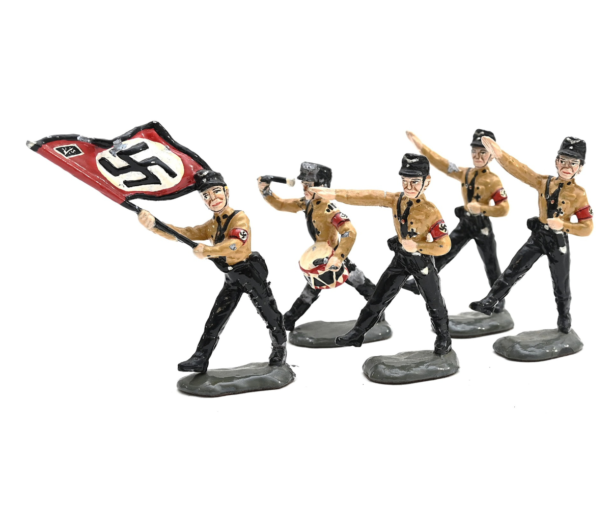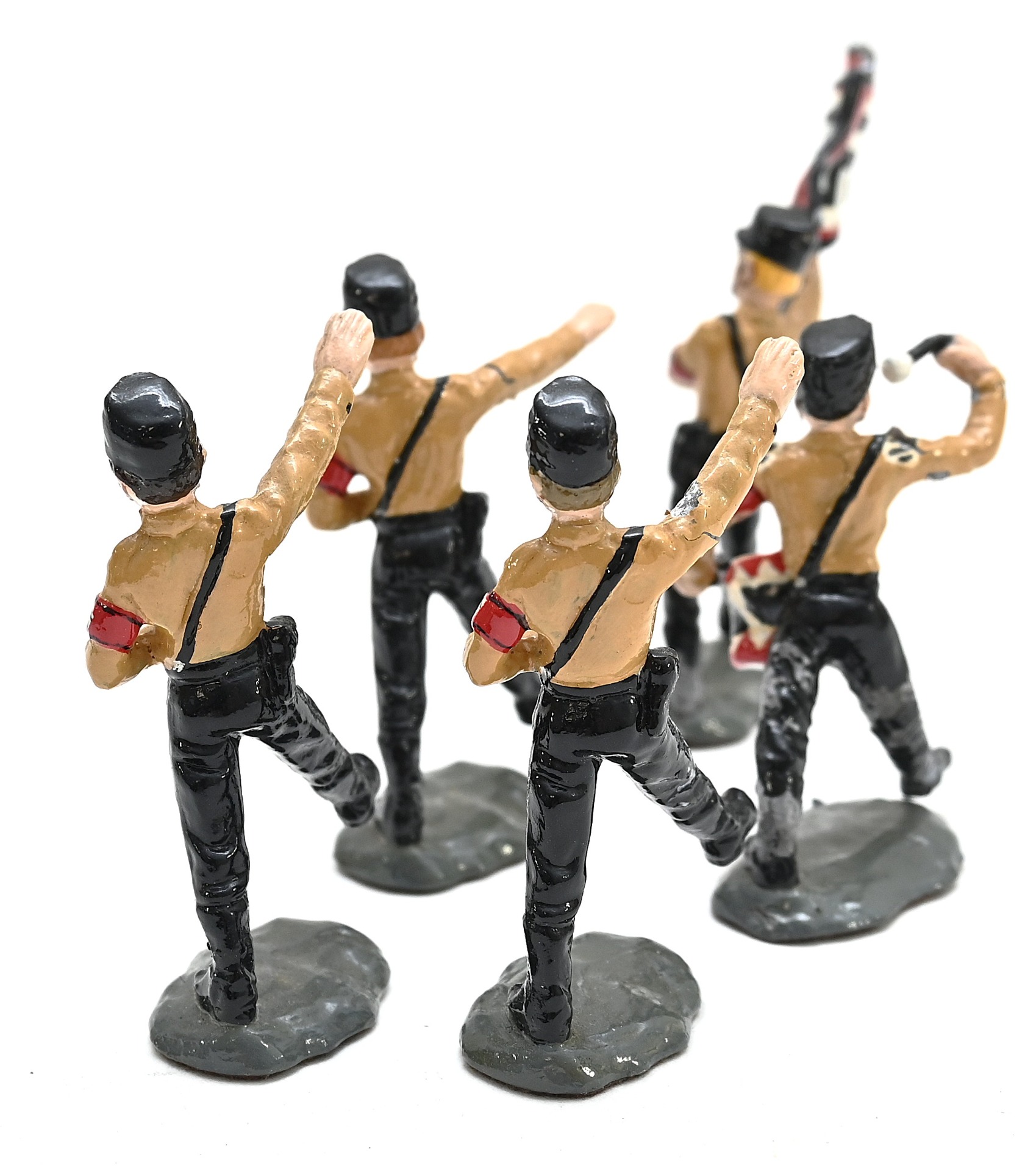 A nice set of 5 early SS zinc toy soldiers in used, but good condition.